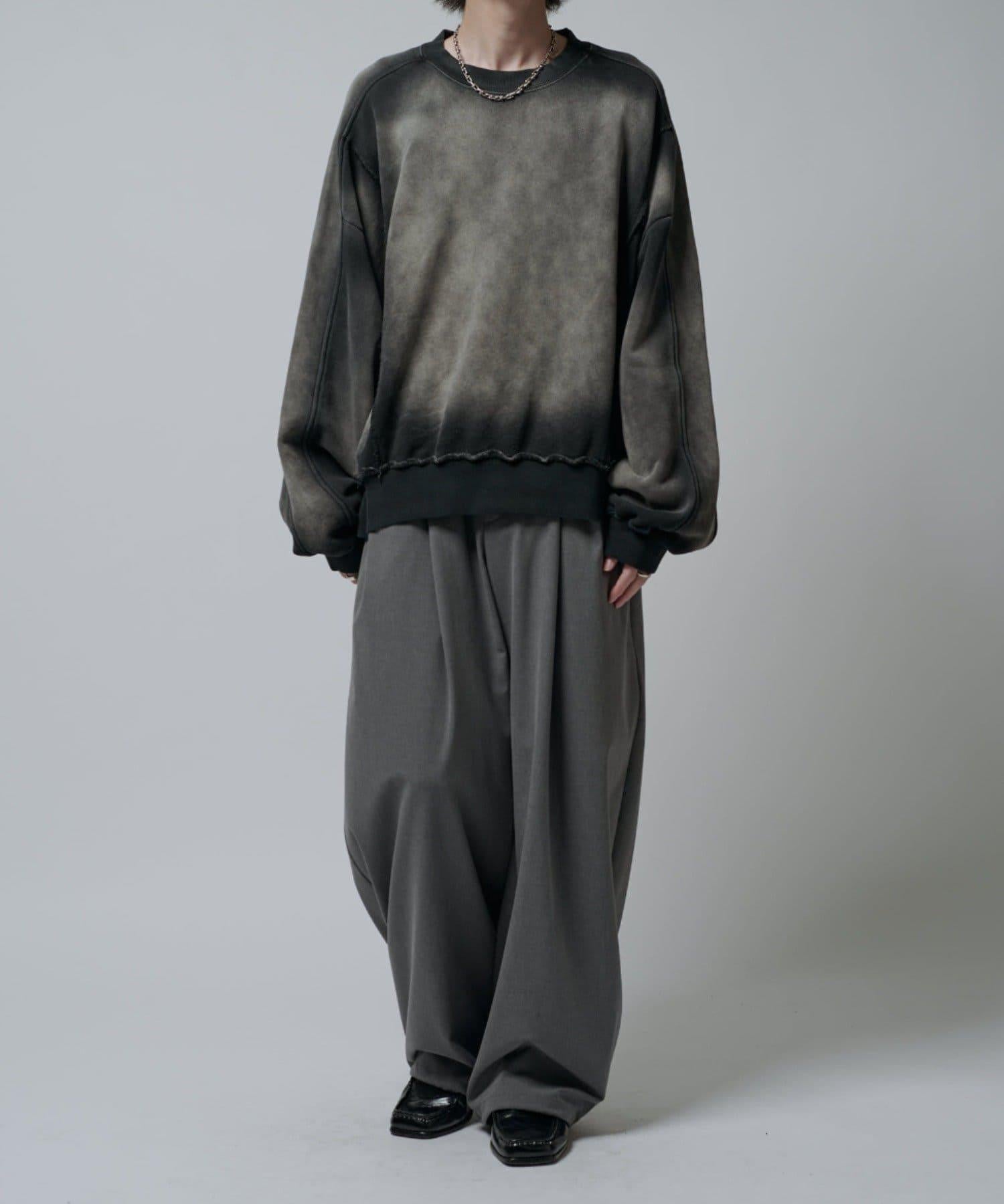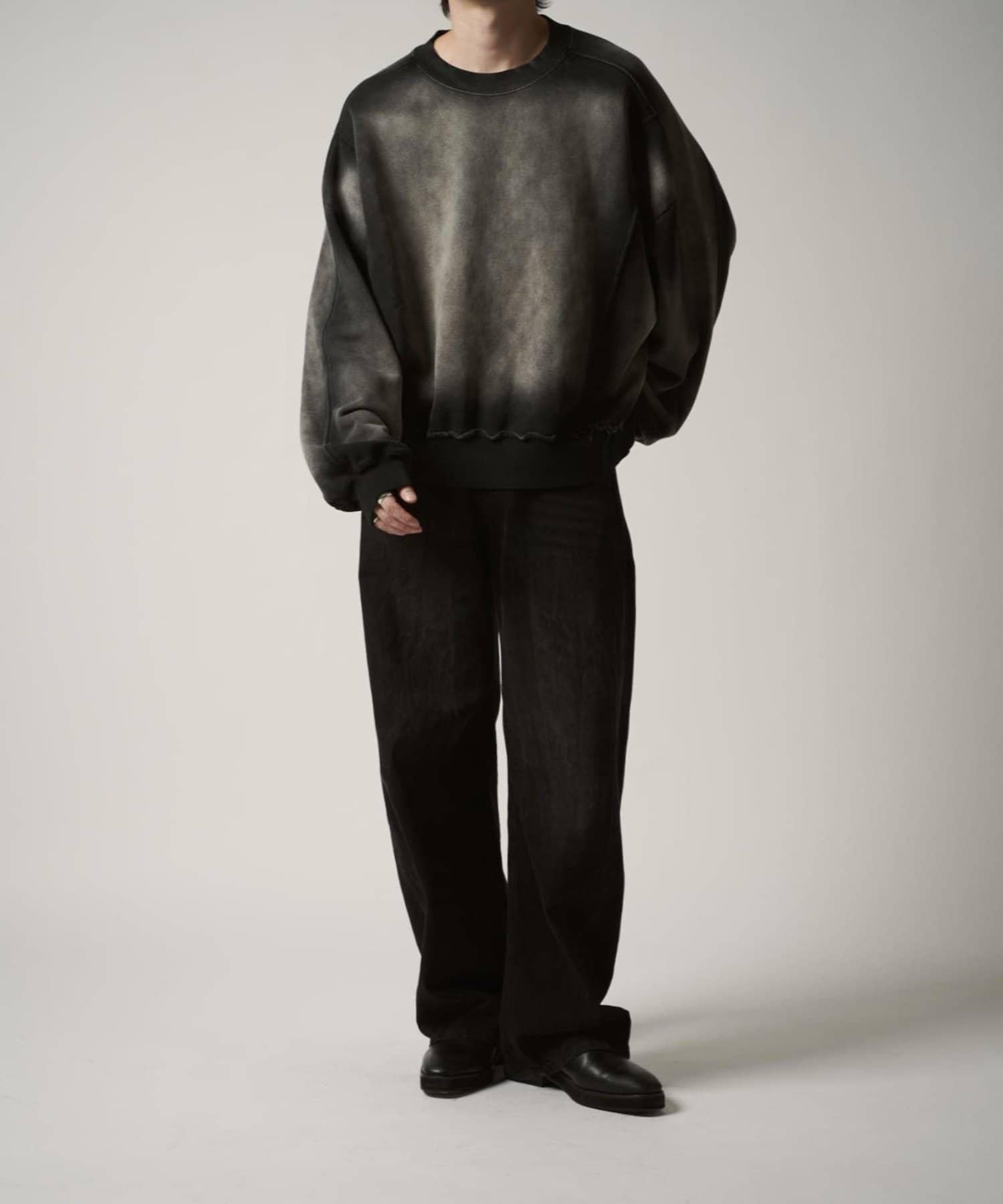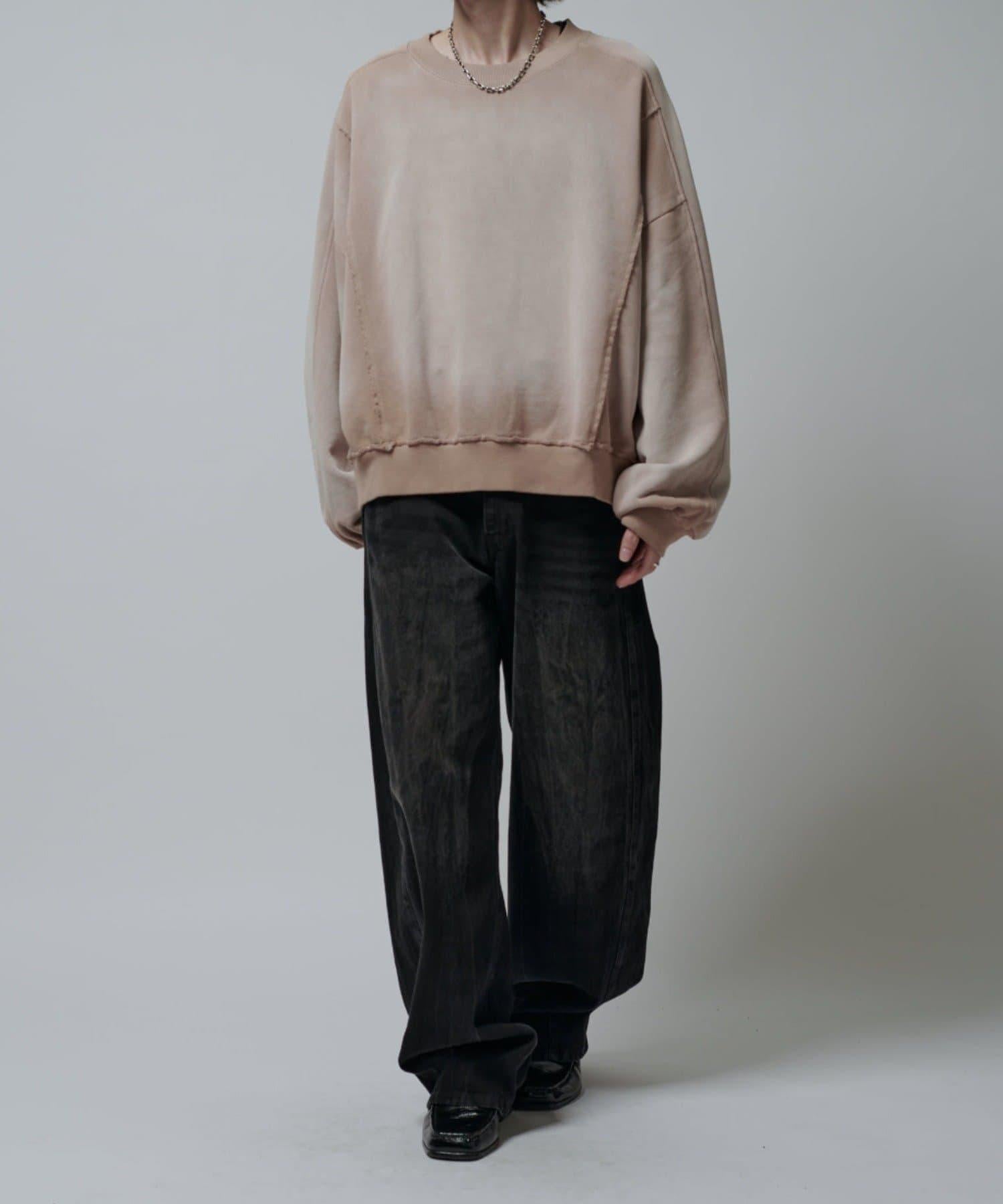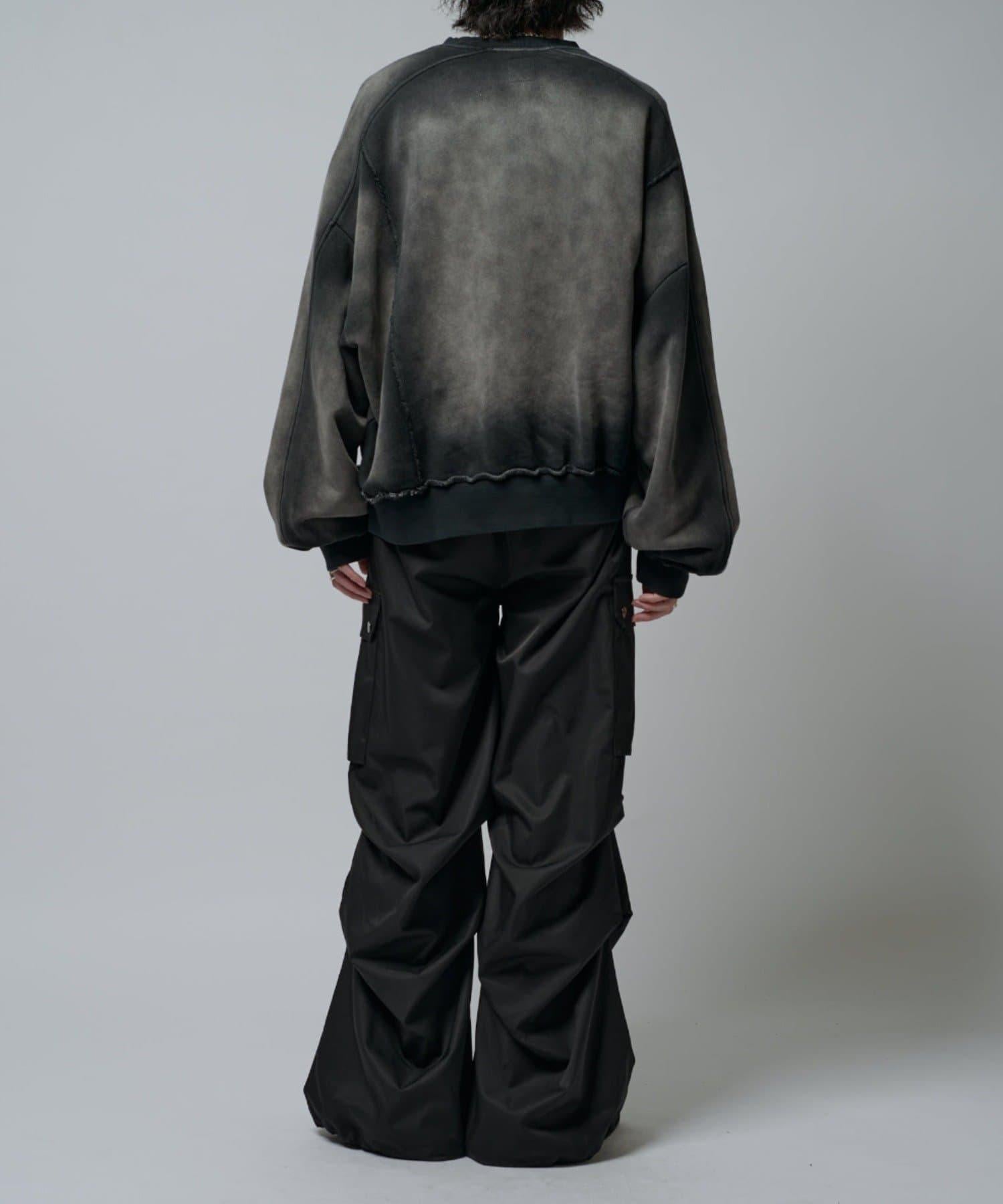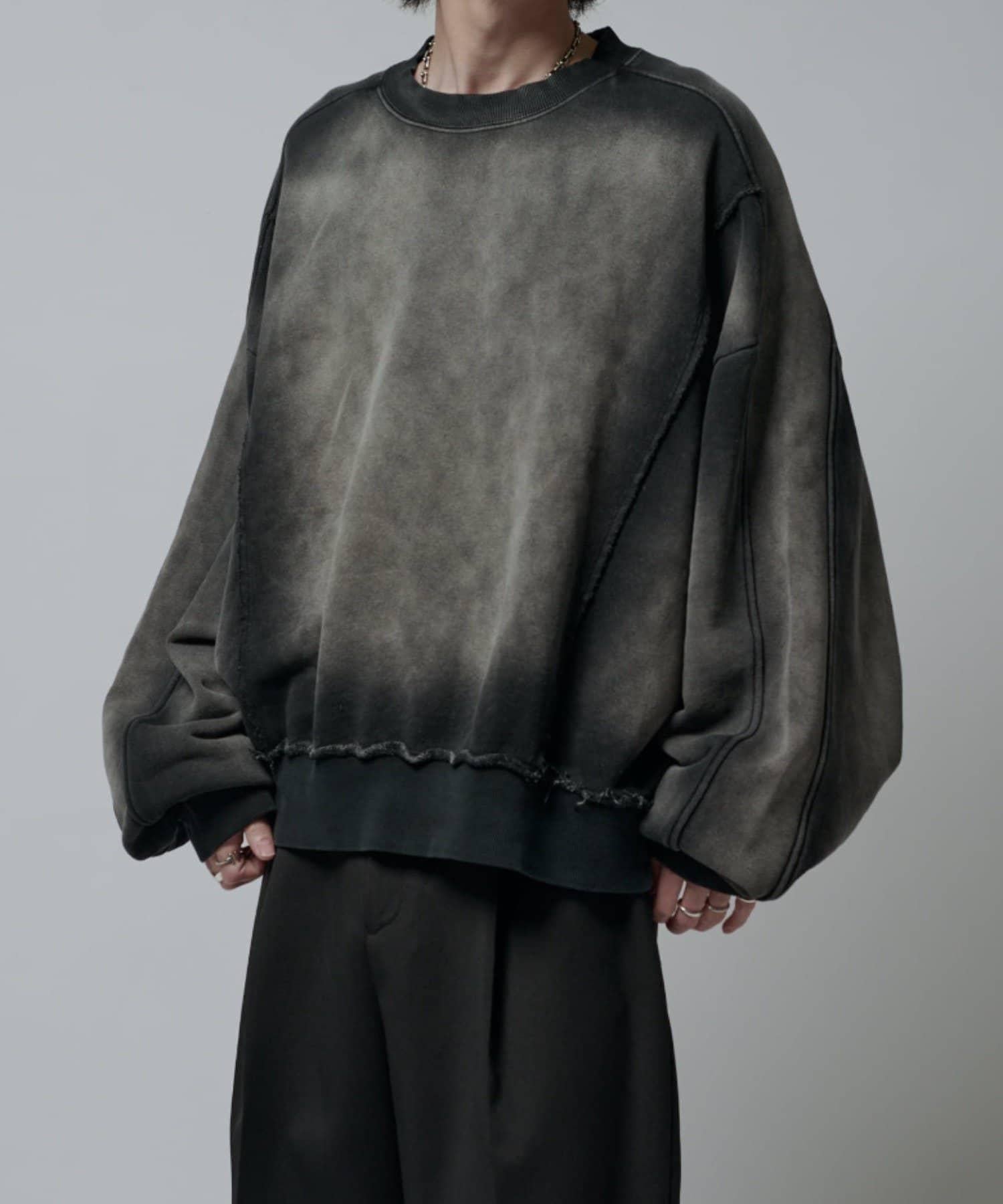 這款運動衫的表面經過漂白處理。寬大、圓潤的輪廓,相對於長度而言,衣身寬度較寬。