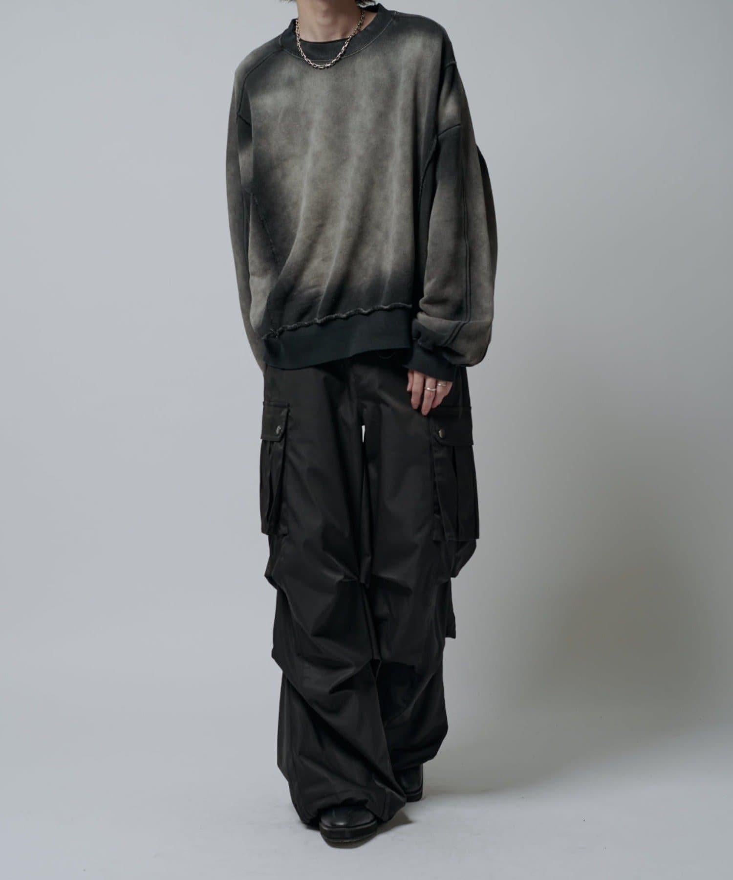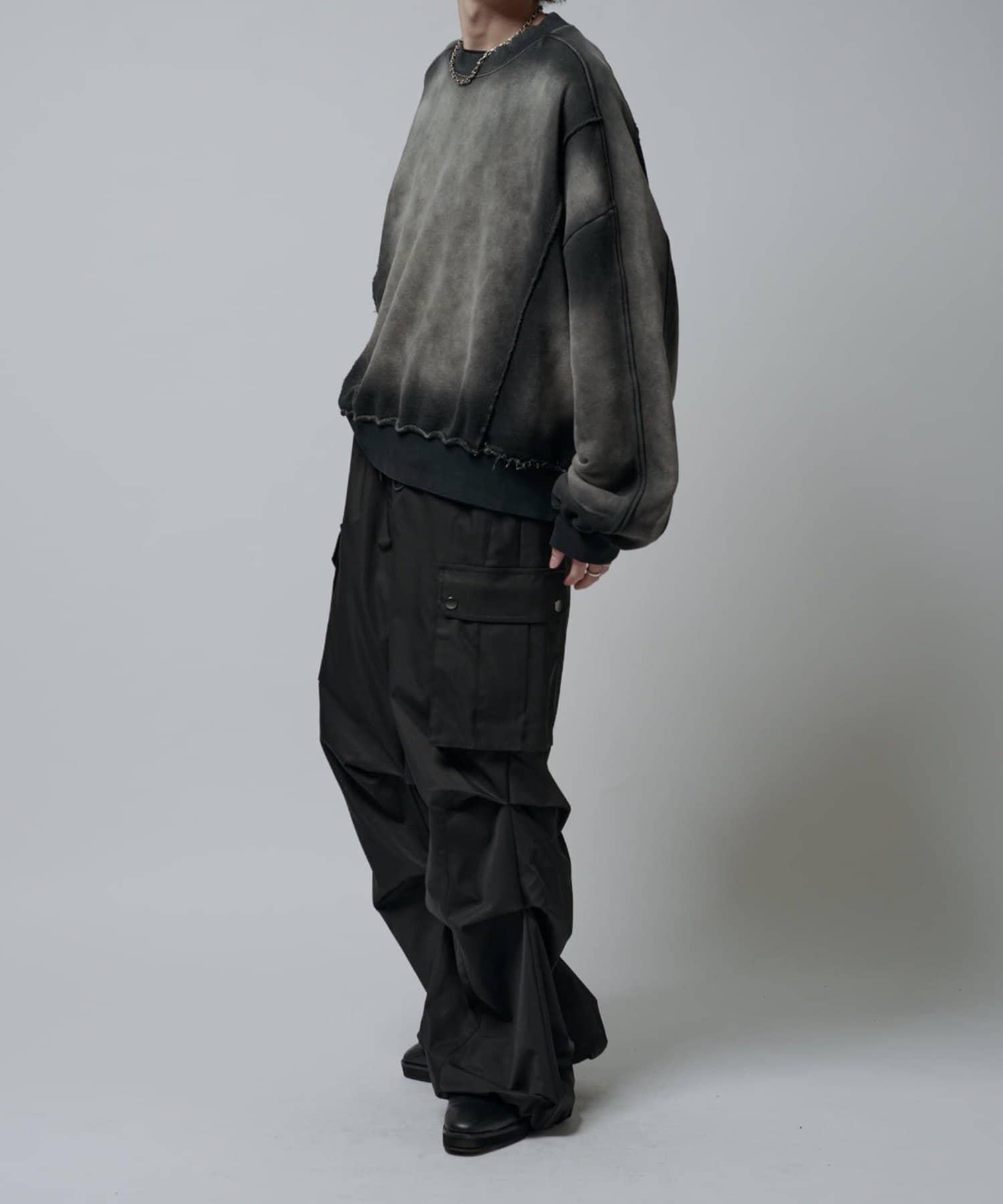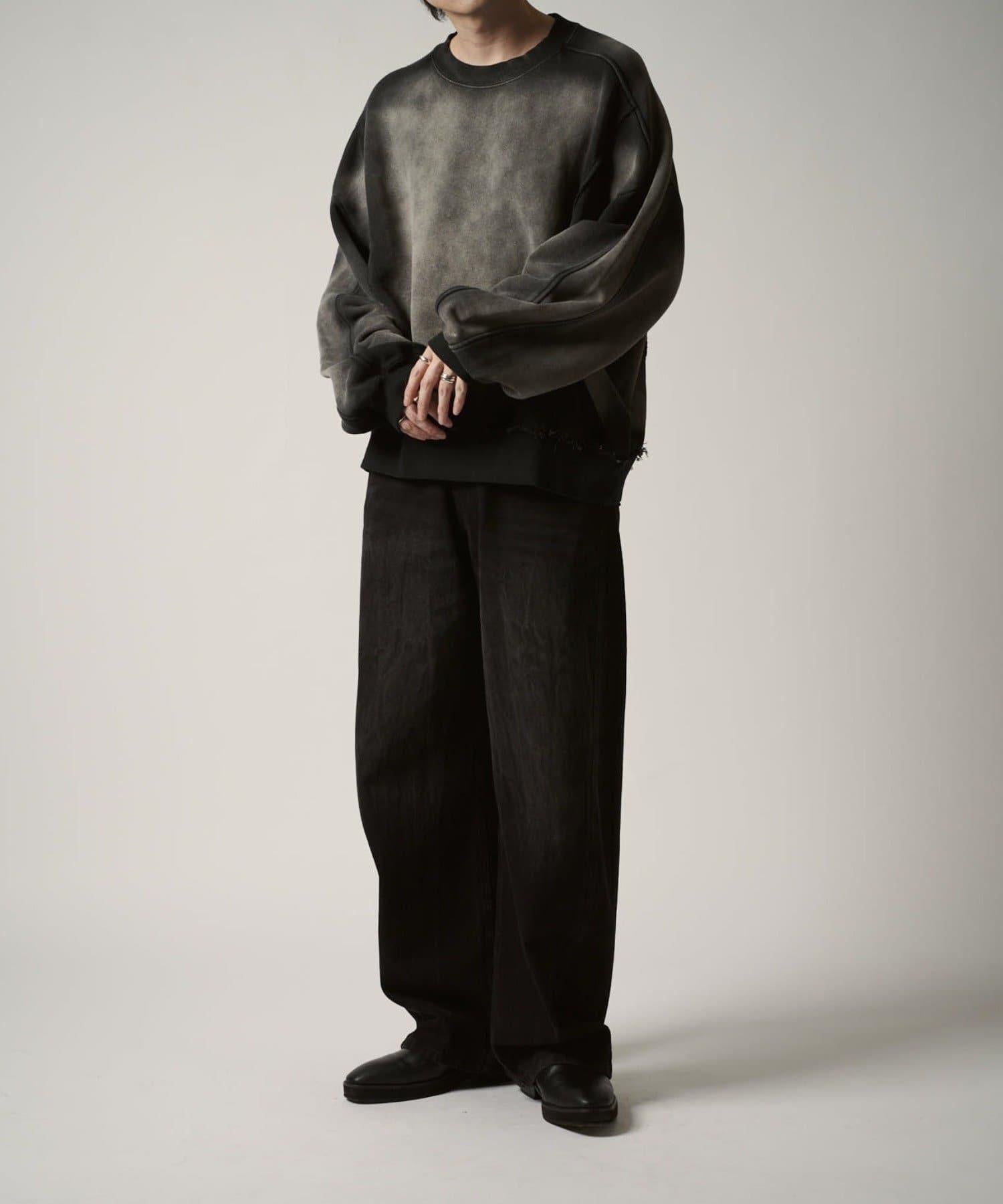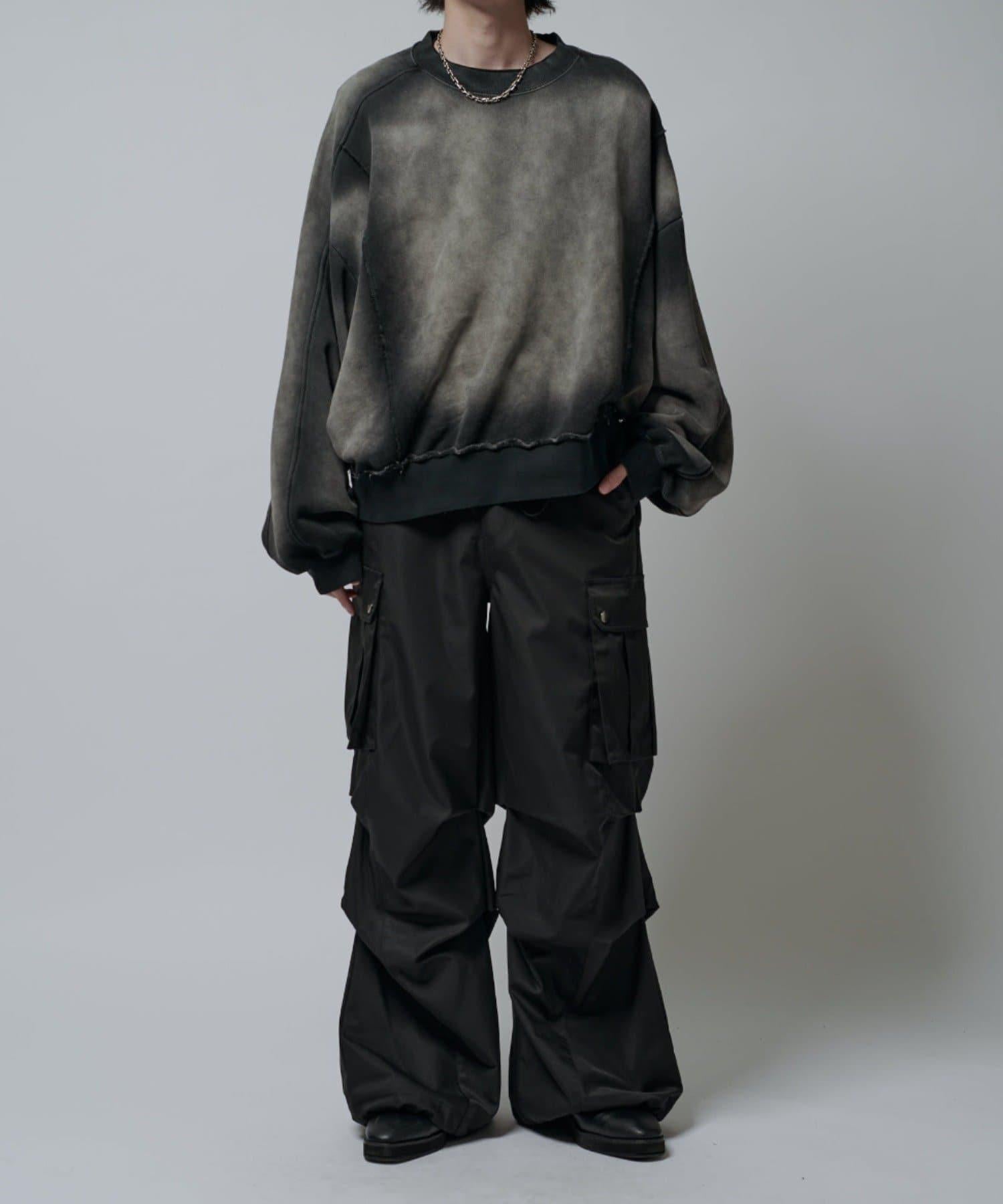 這款運動衫的表面經過漂白處理。寬大、圓潤的輪廓,相對於長度而言,衣身寬度較寬。