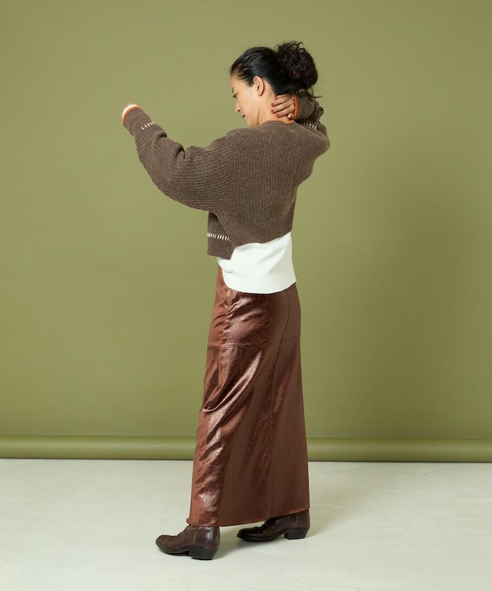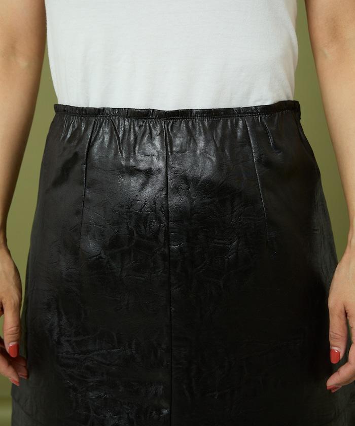這款緊身裙採用仿皮緞面面料製成。