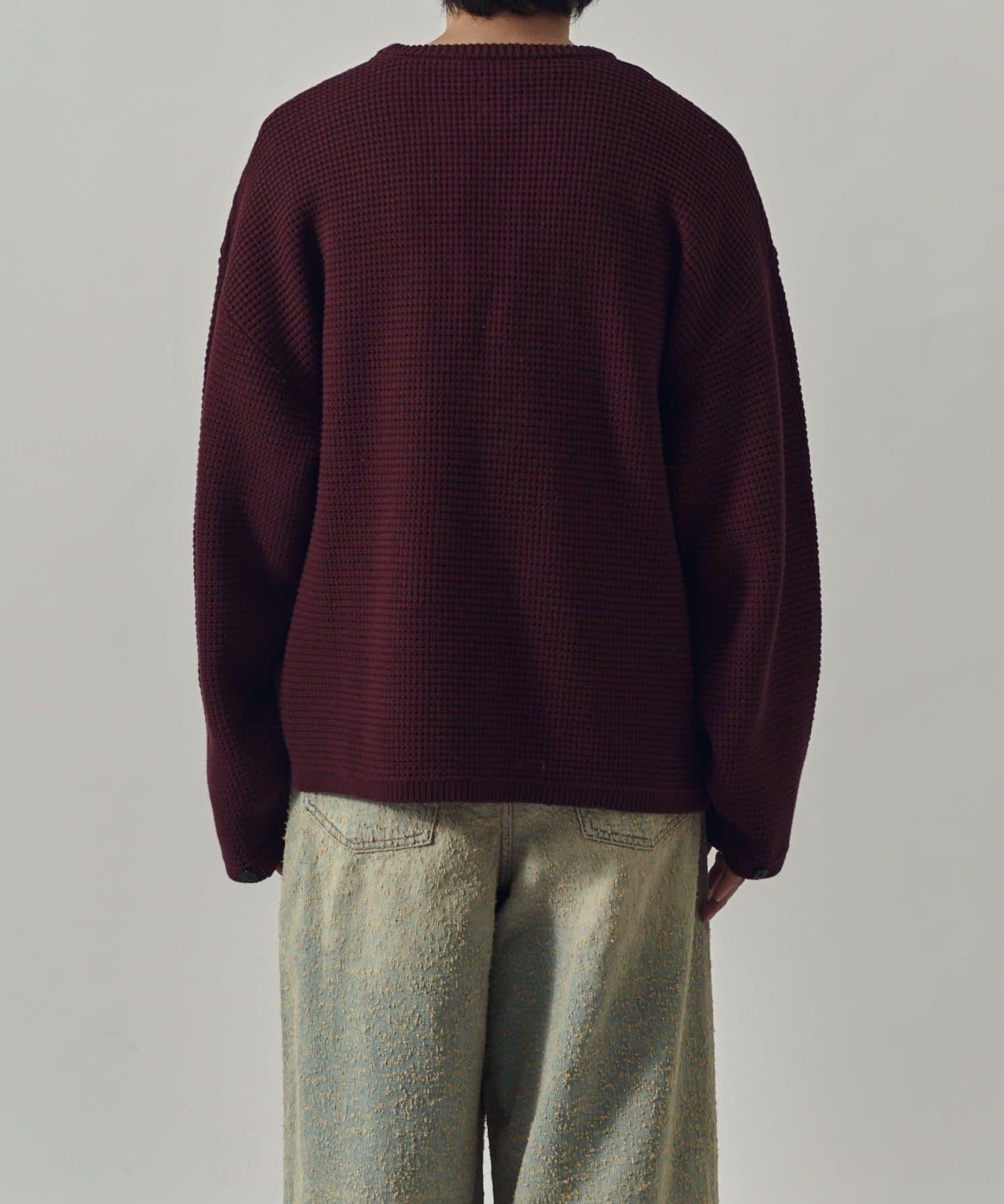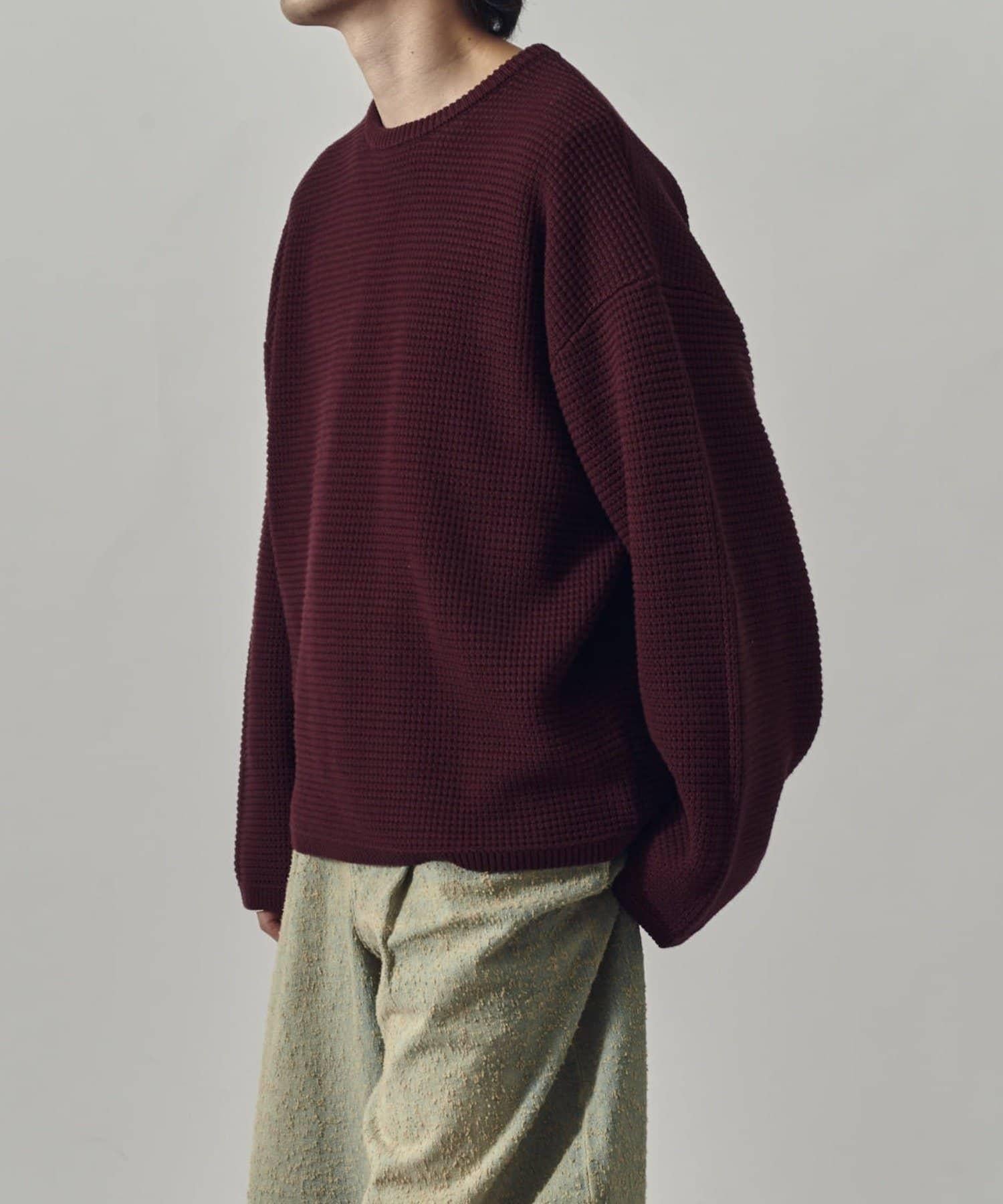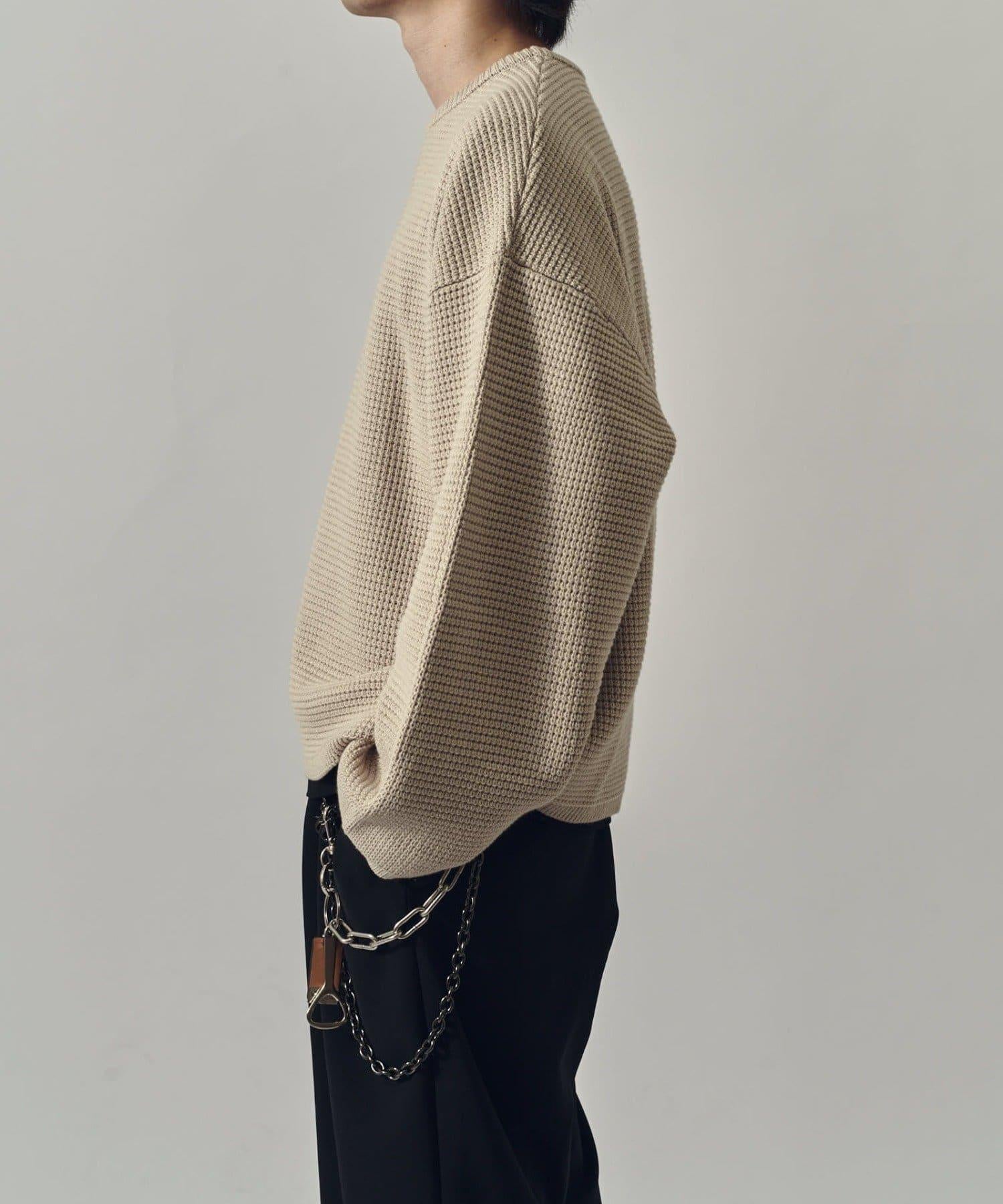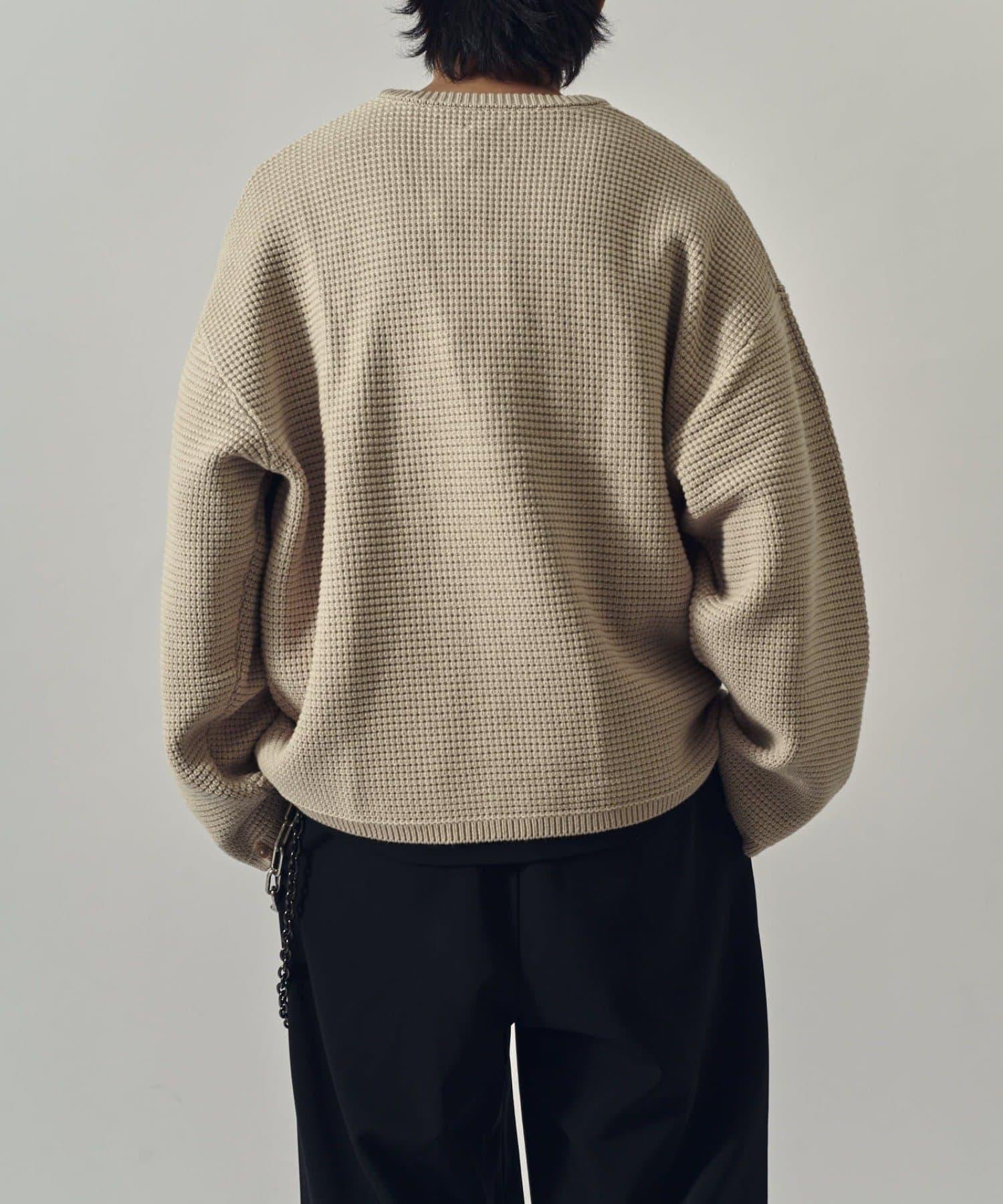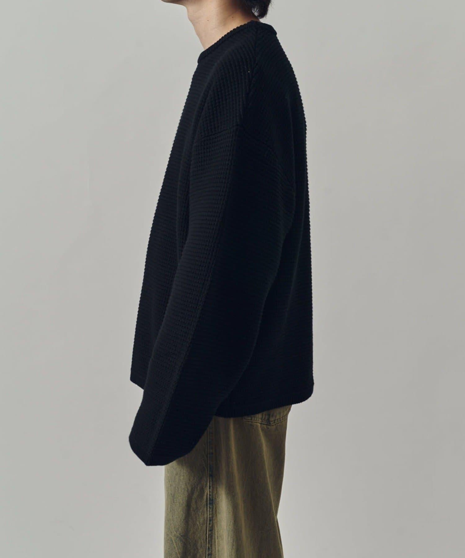 重型華夫格圓領衫,採用格子狀凹凸面料。