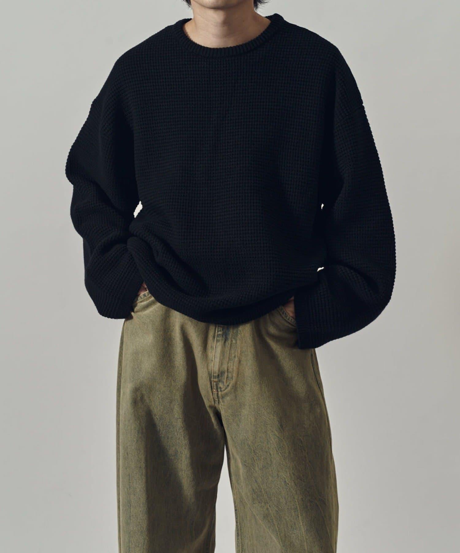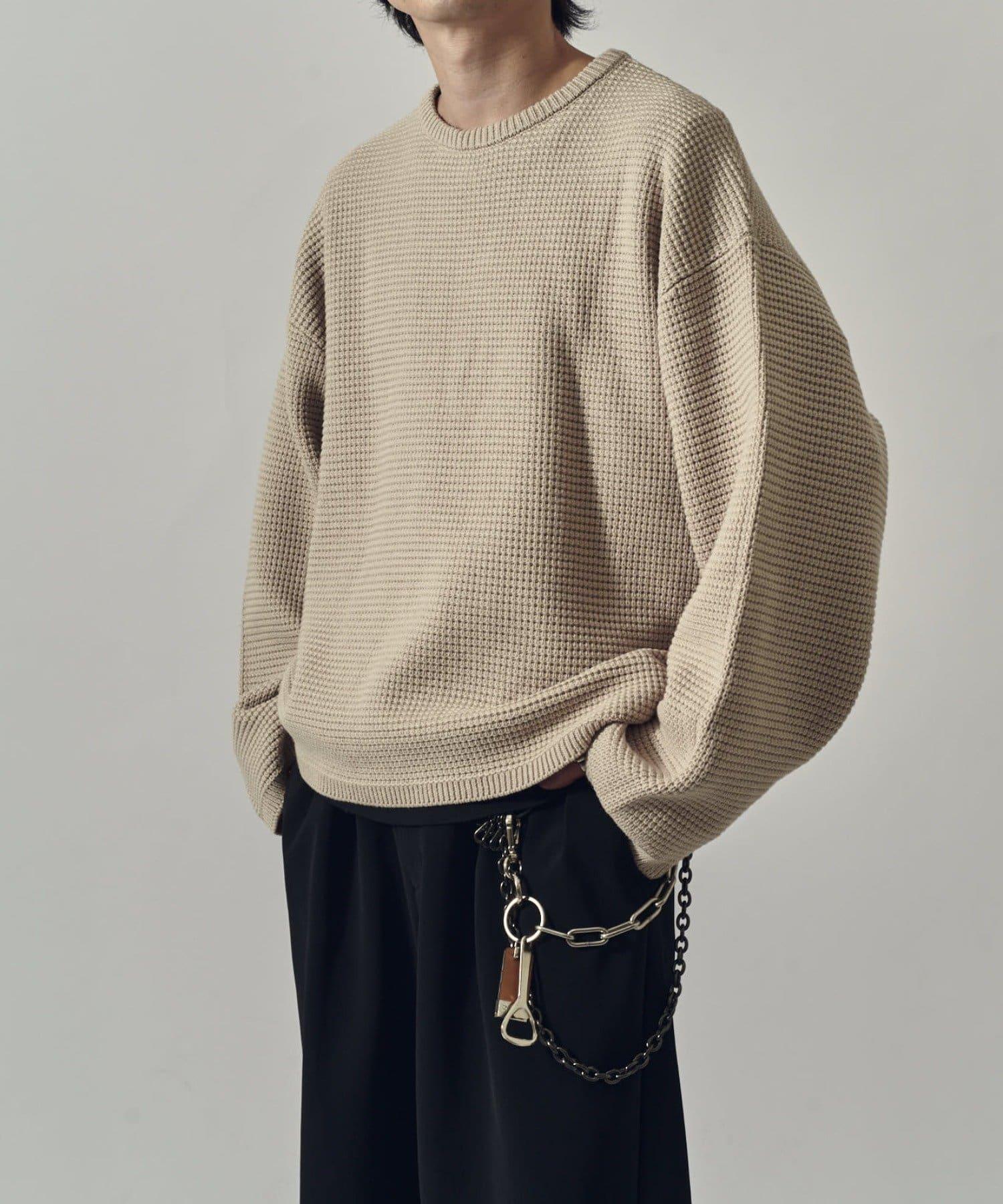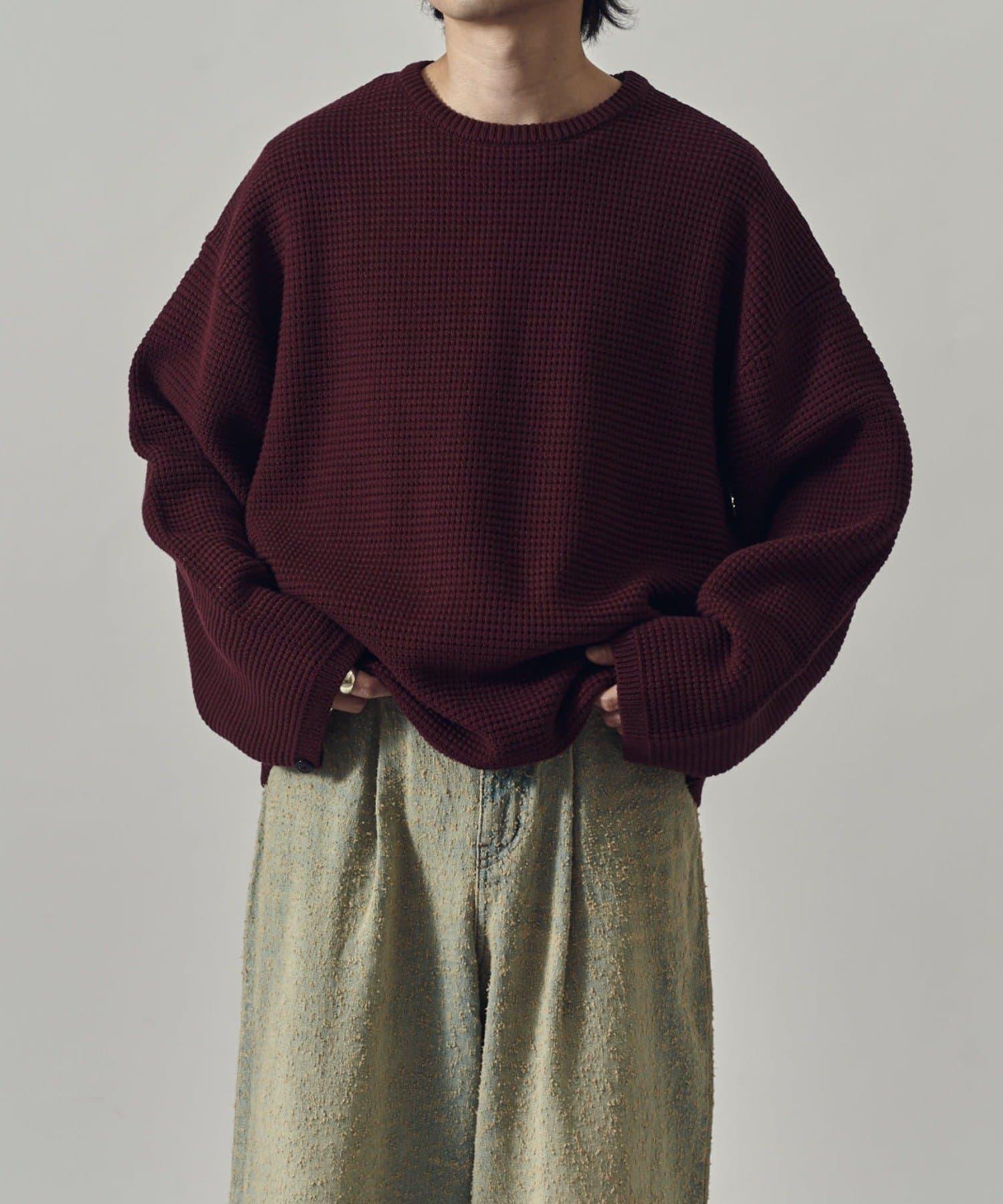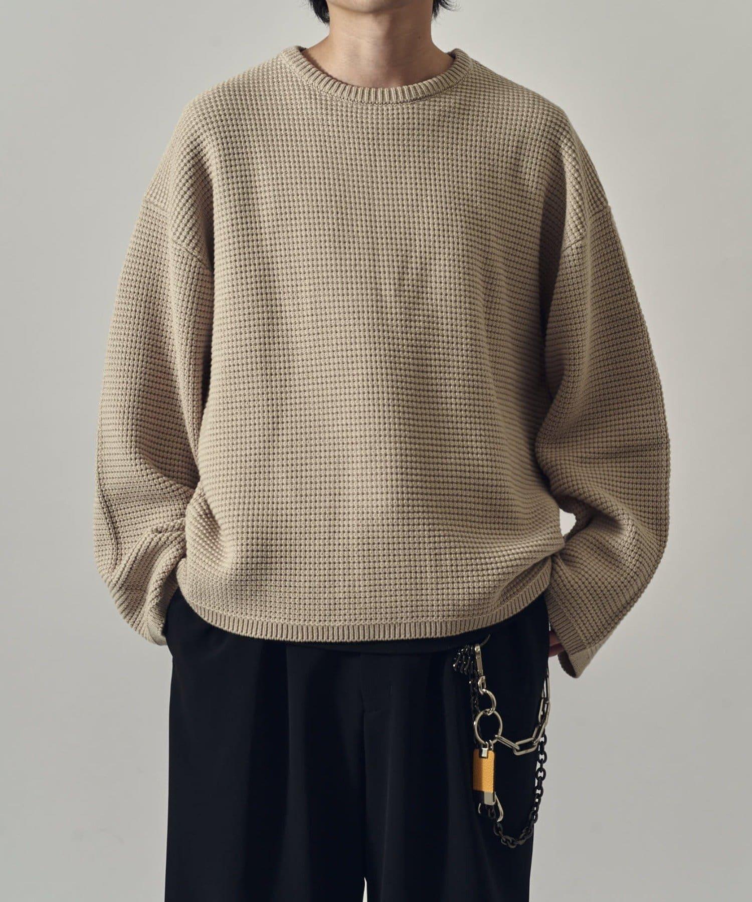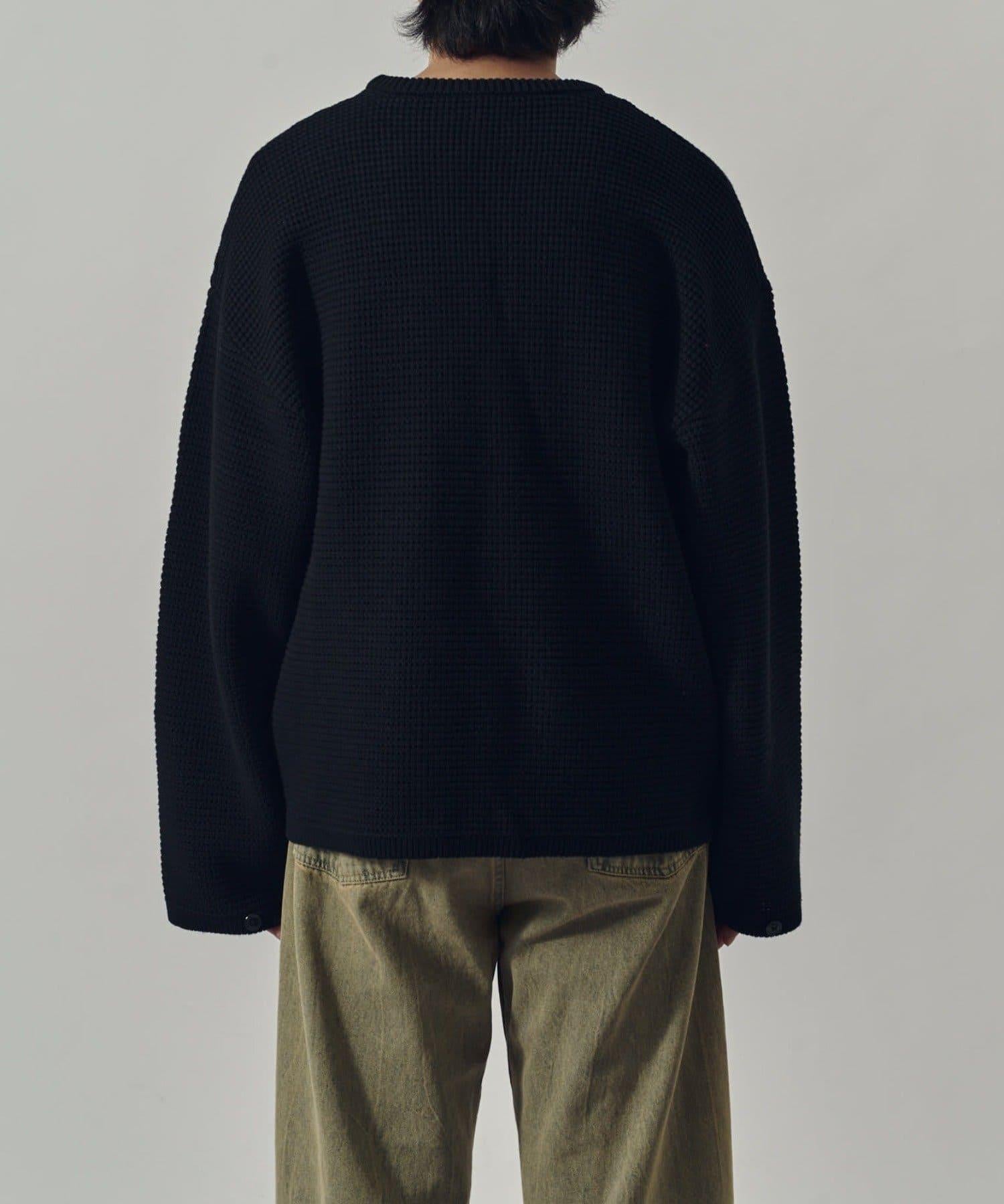 重型華夫格圓領衫,採用格子狀凹凸面料。