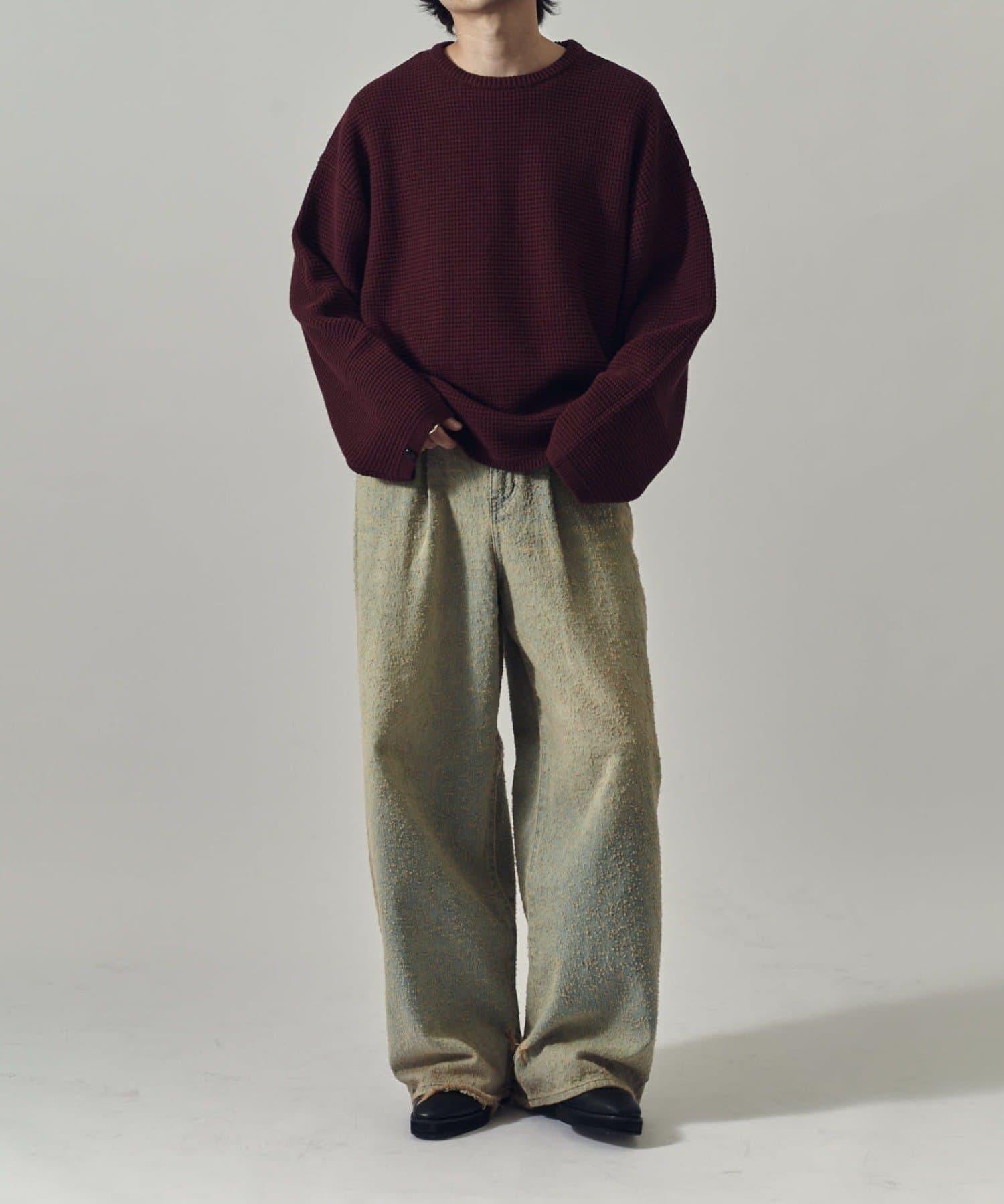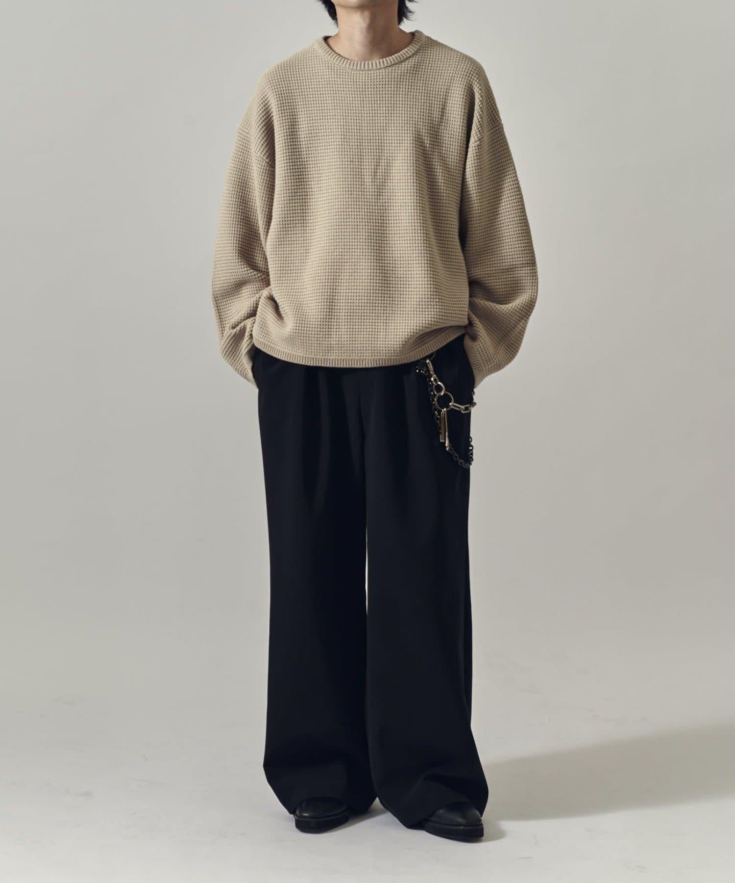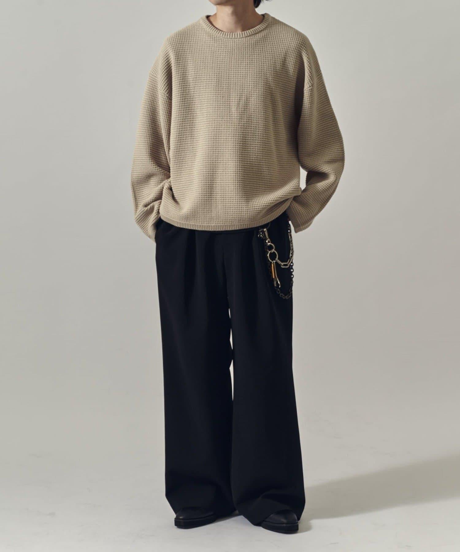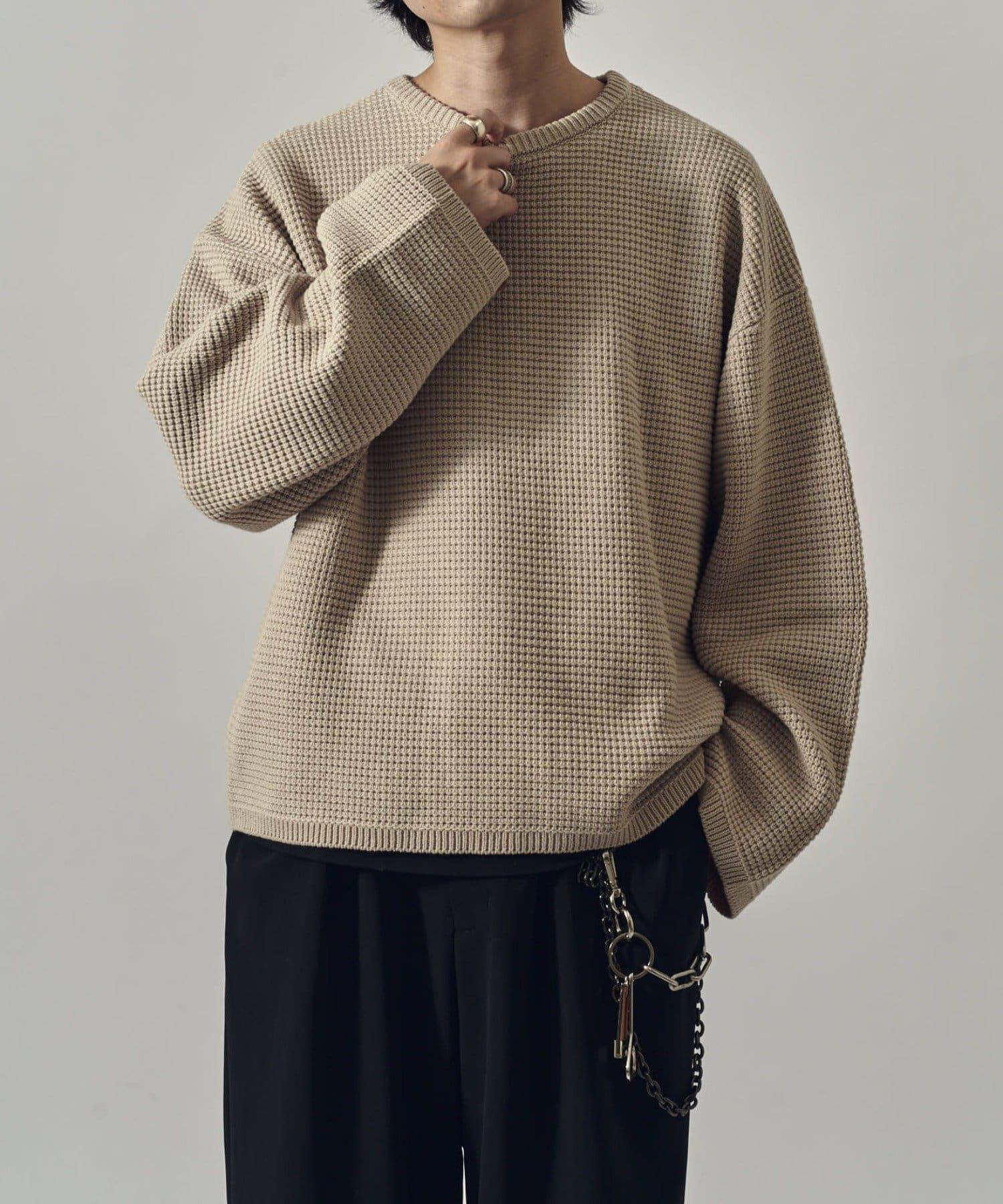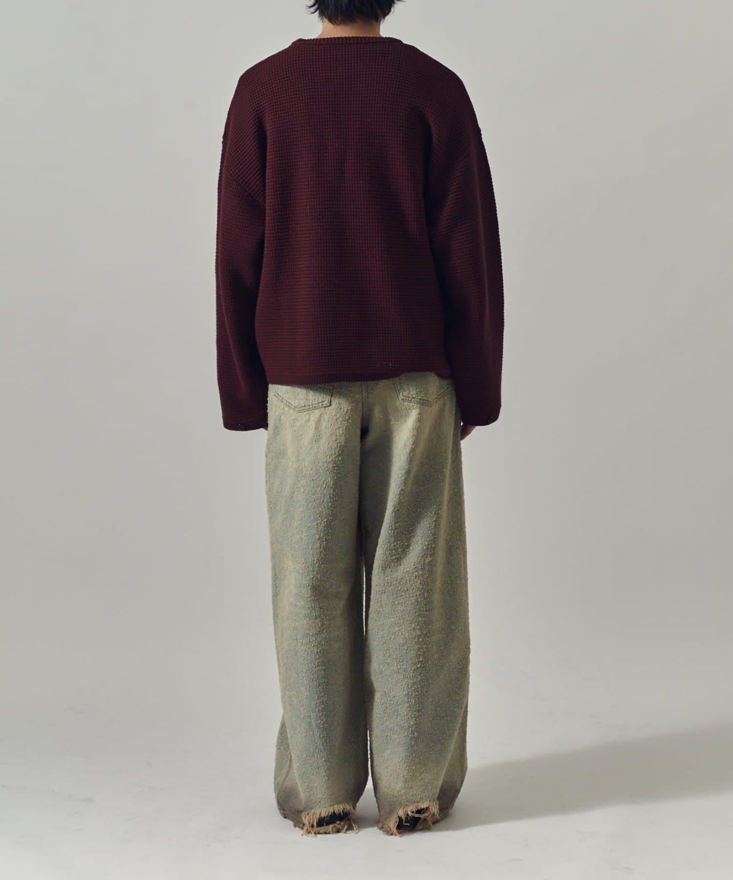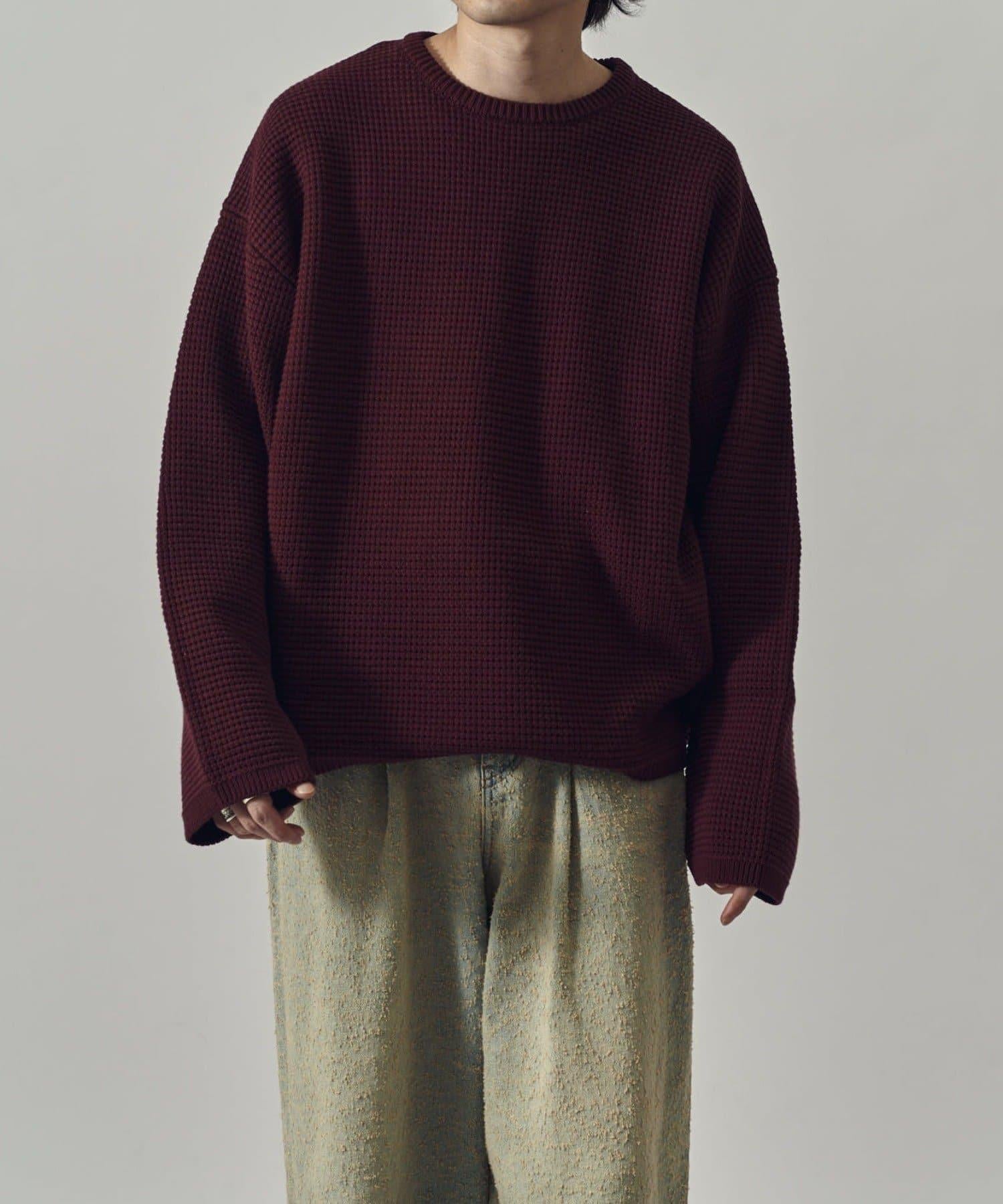 重型華夫格圓領衫,採用格子狀凹凸面料。