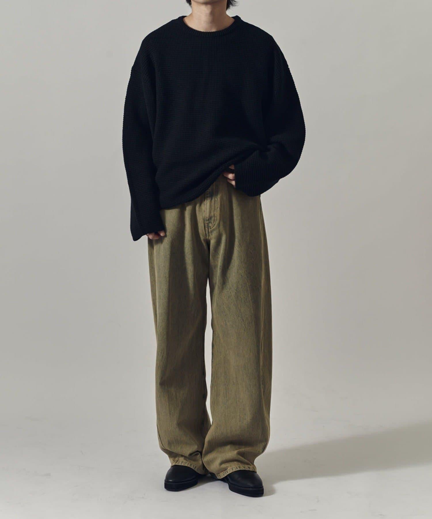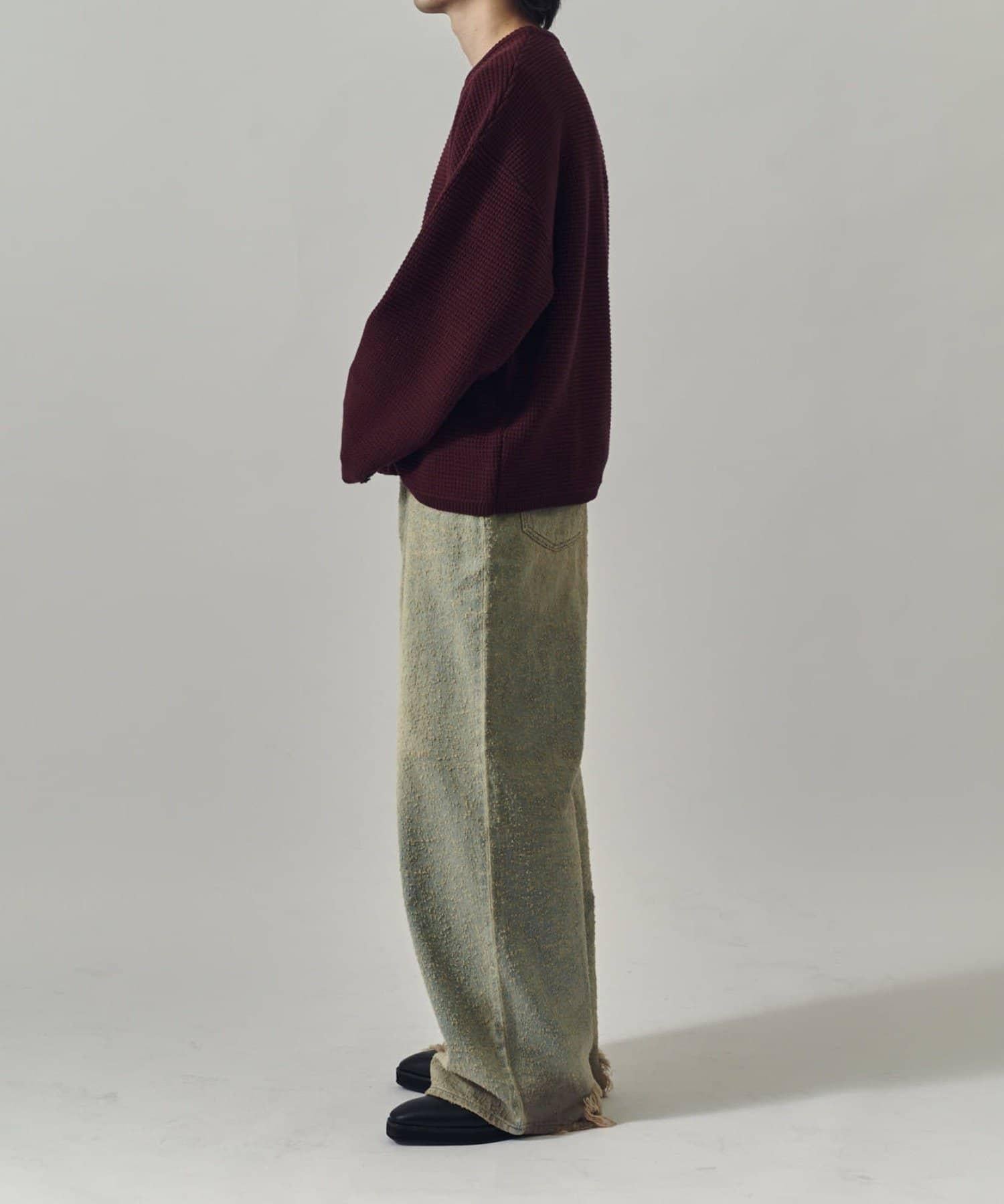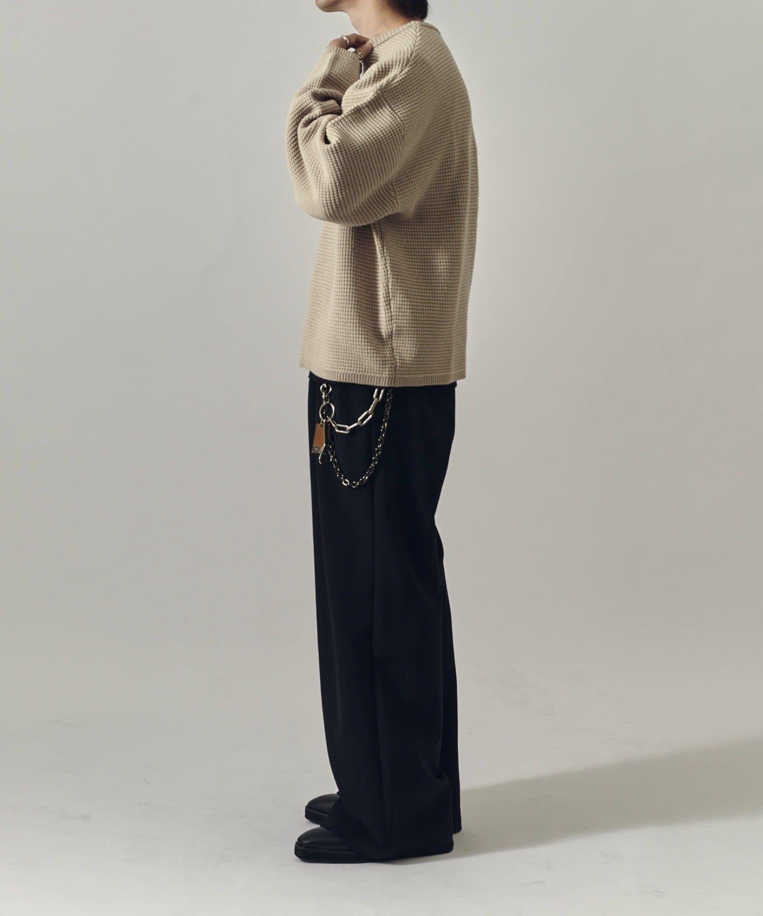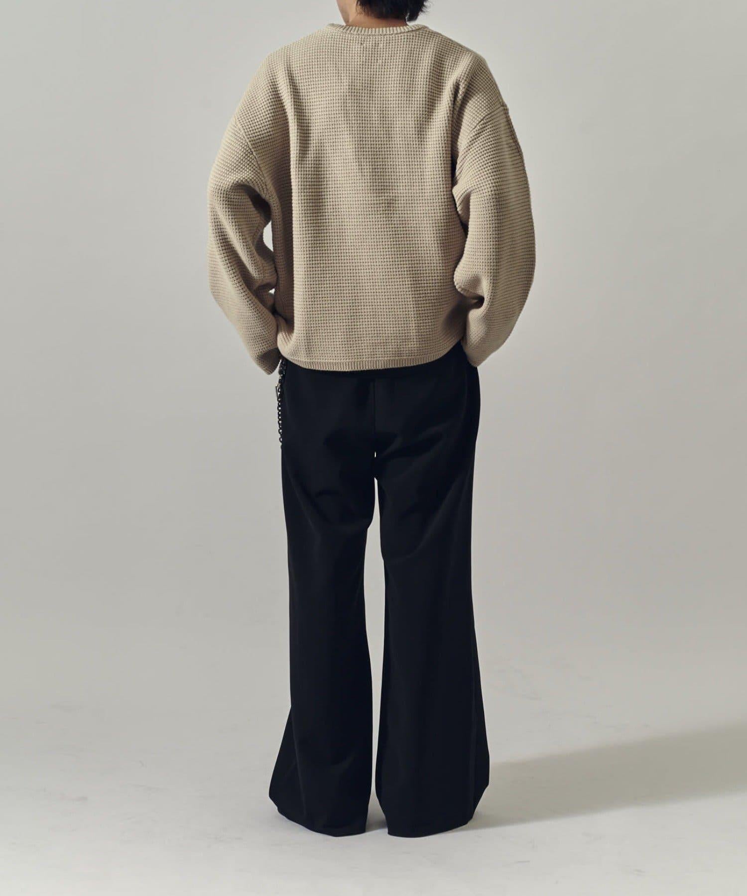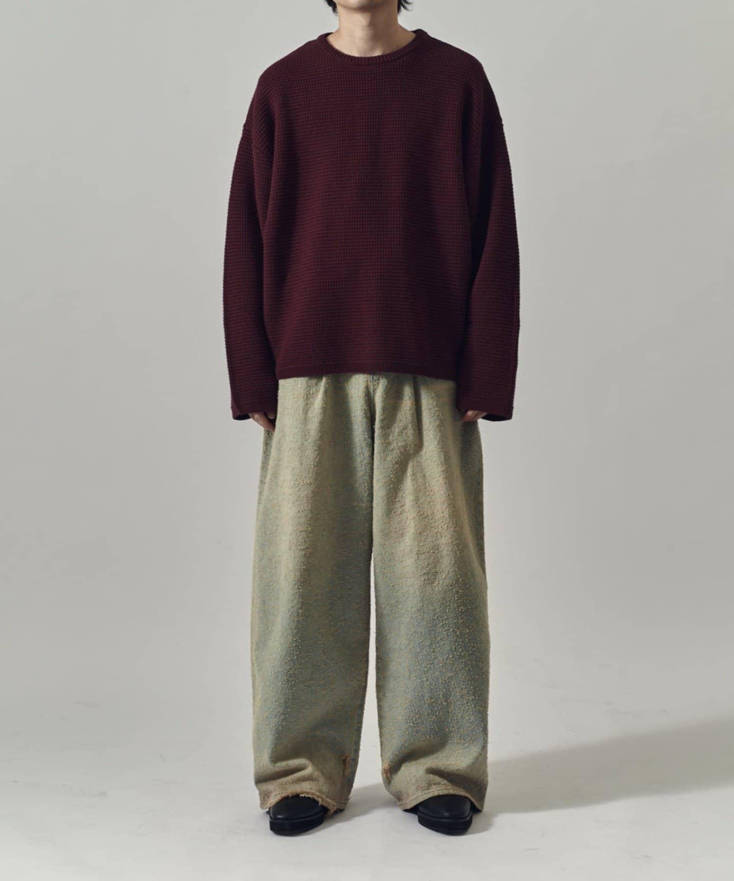 重型華夫格圓領衫,採用格子狀凹凸面料。