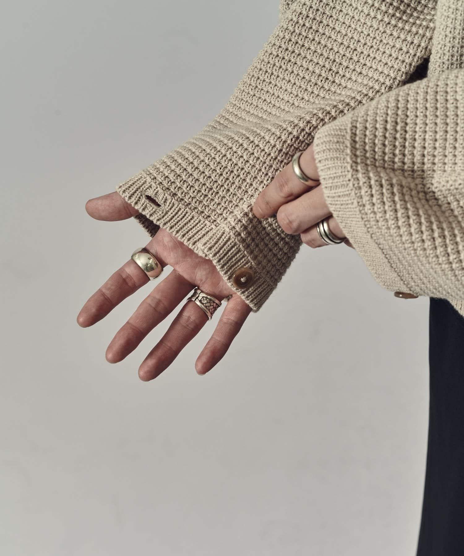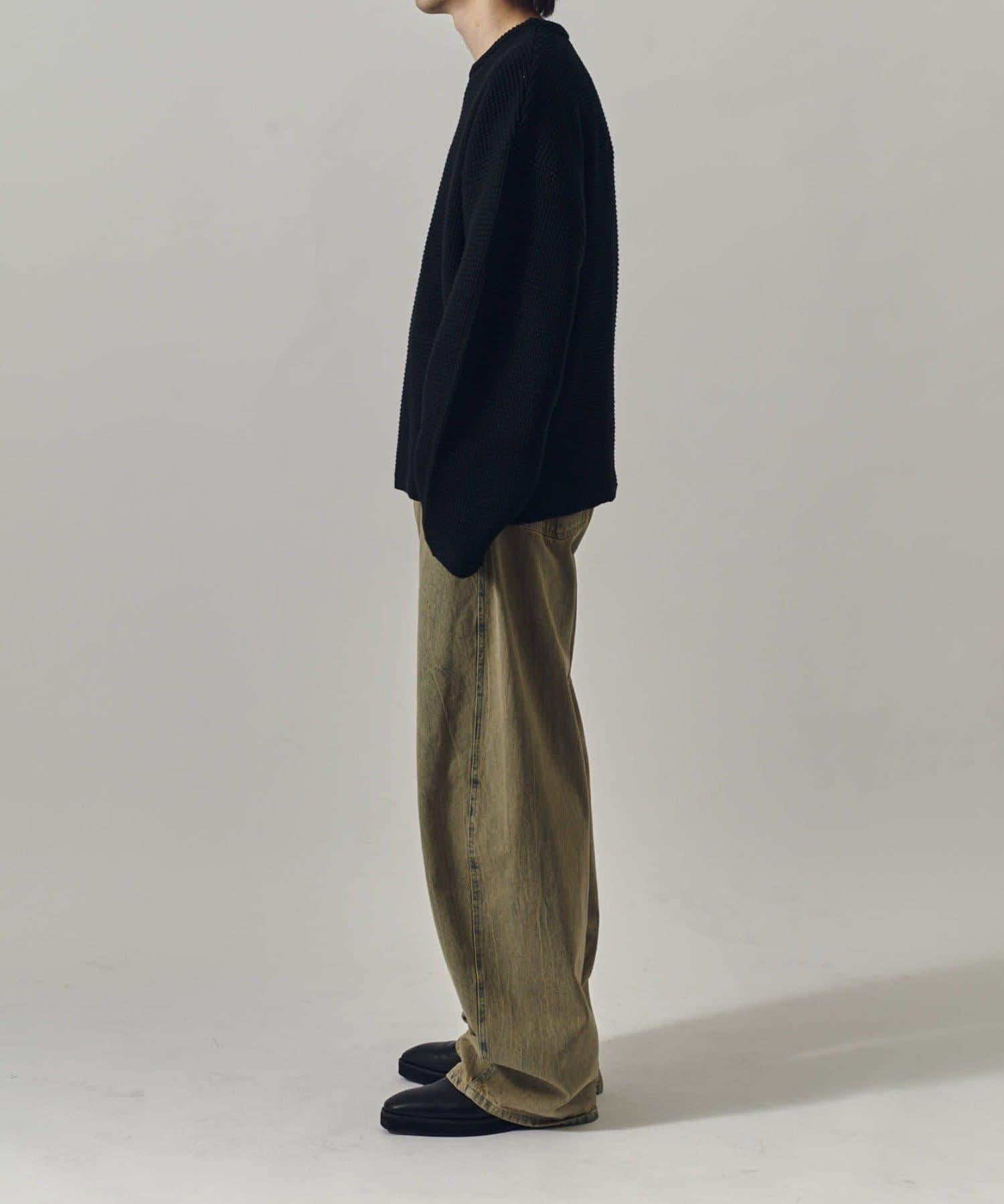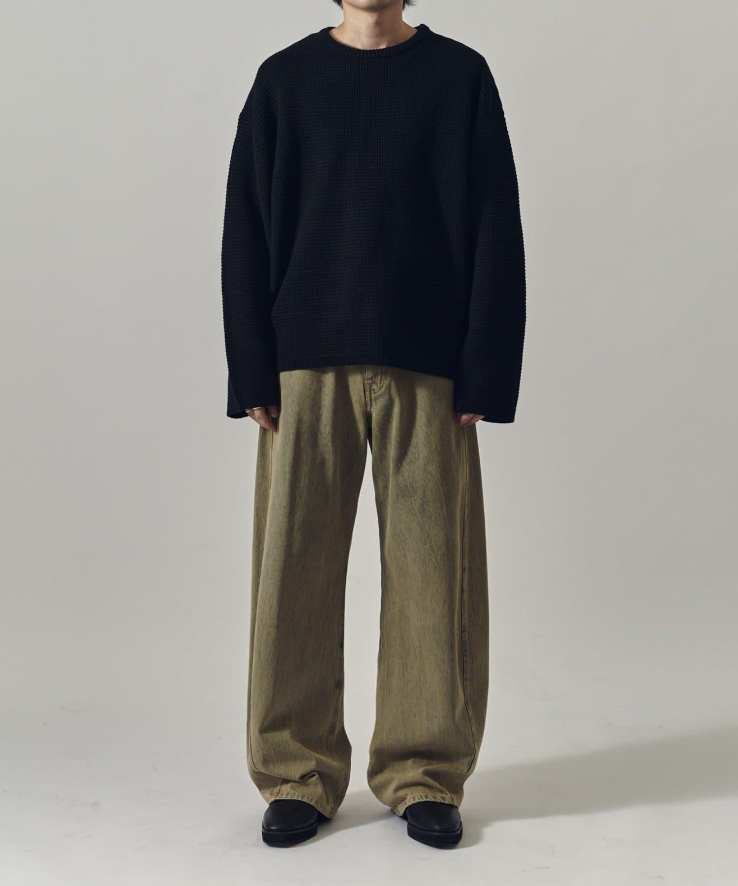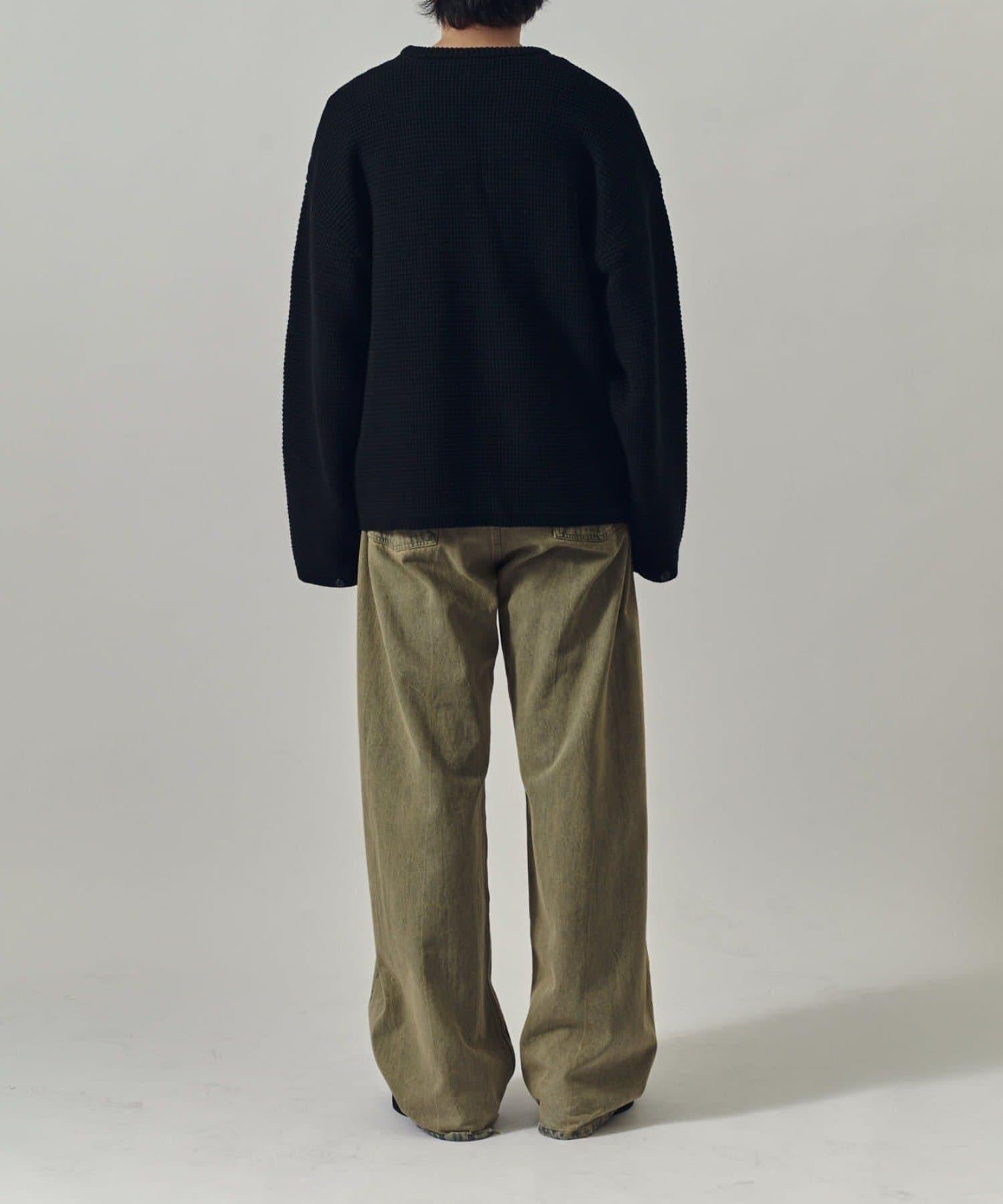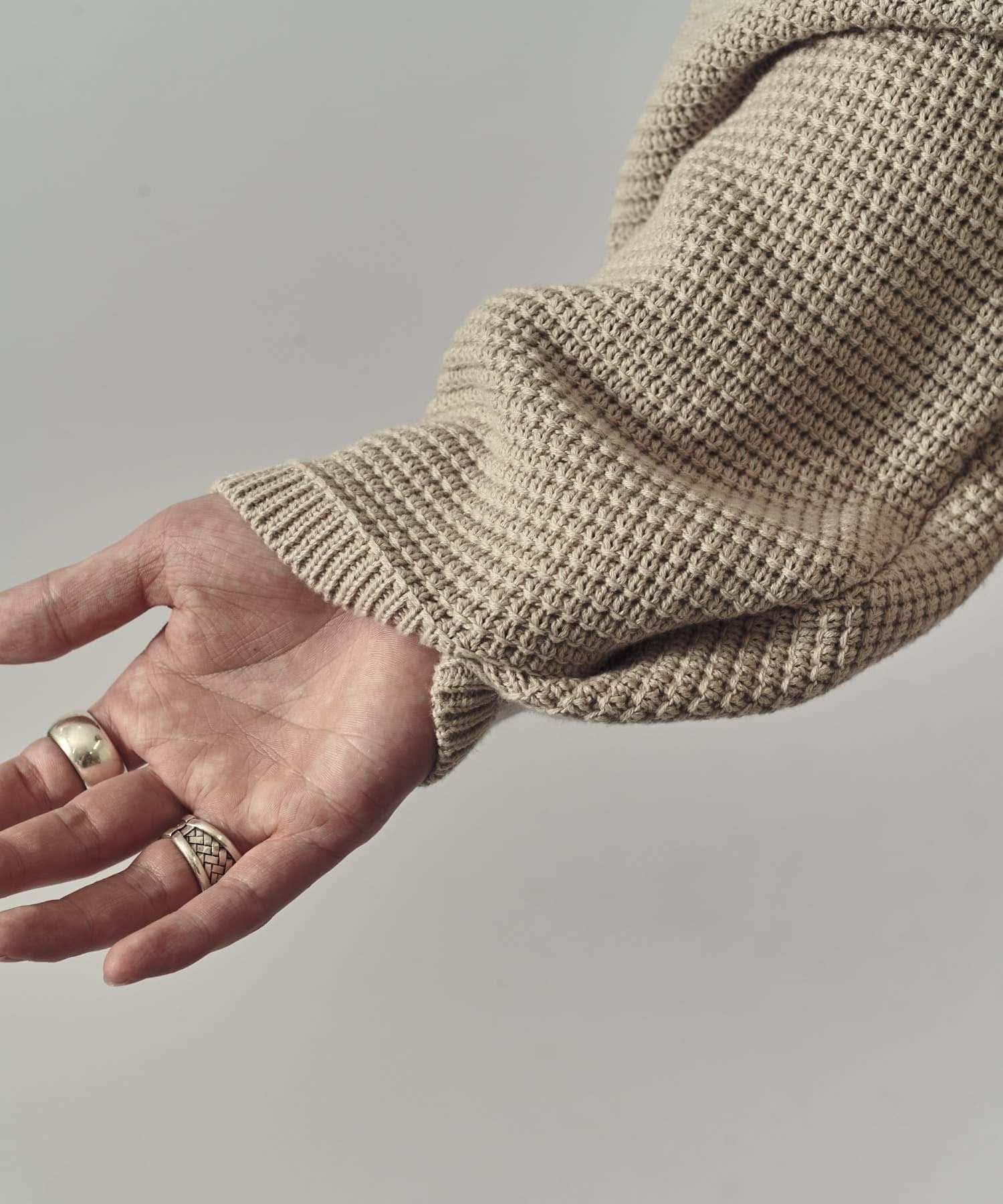重型華夫格圓領衫,採用格子狀凹凸面料。