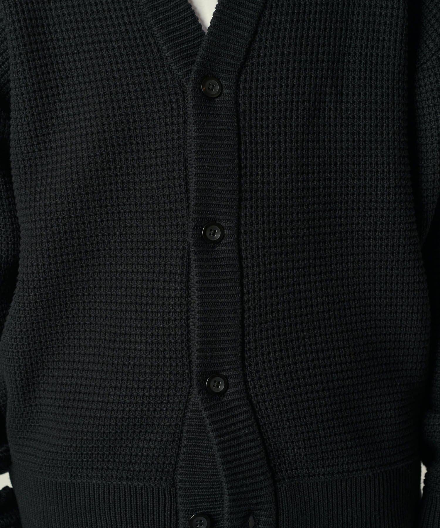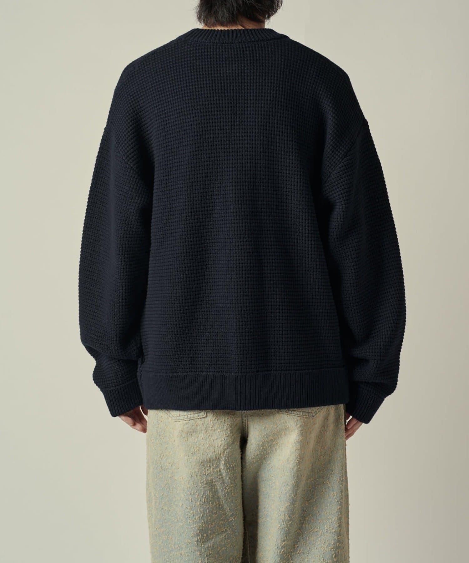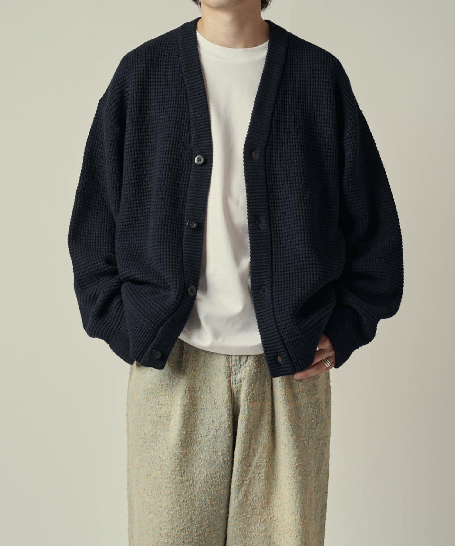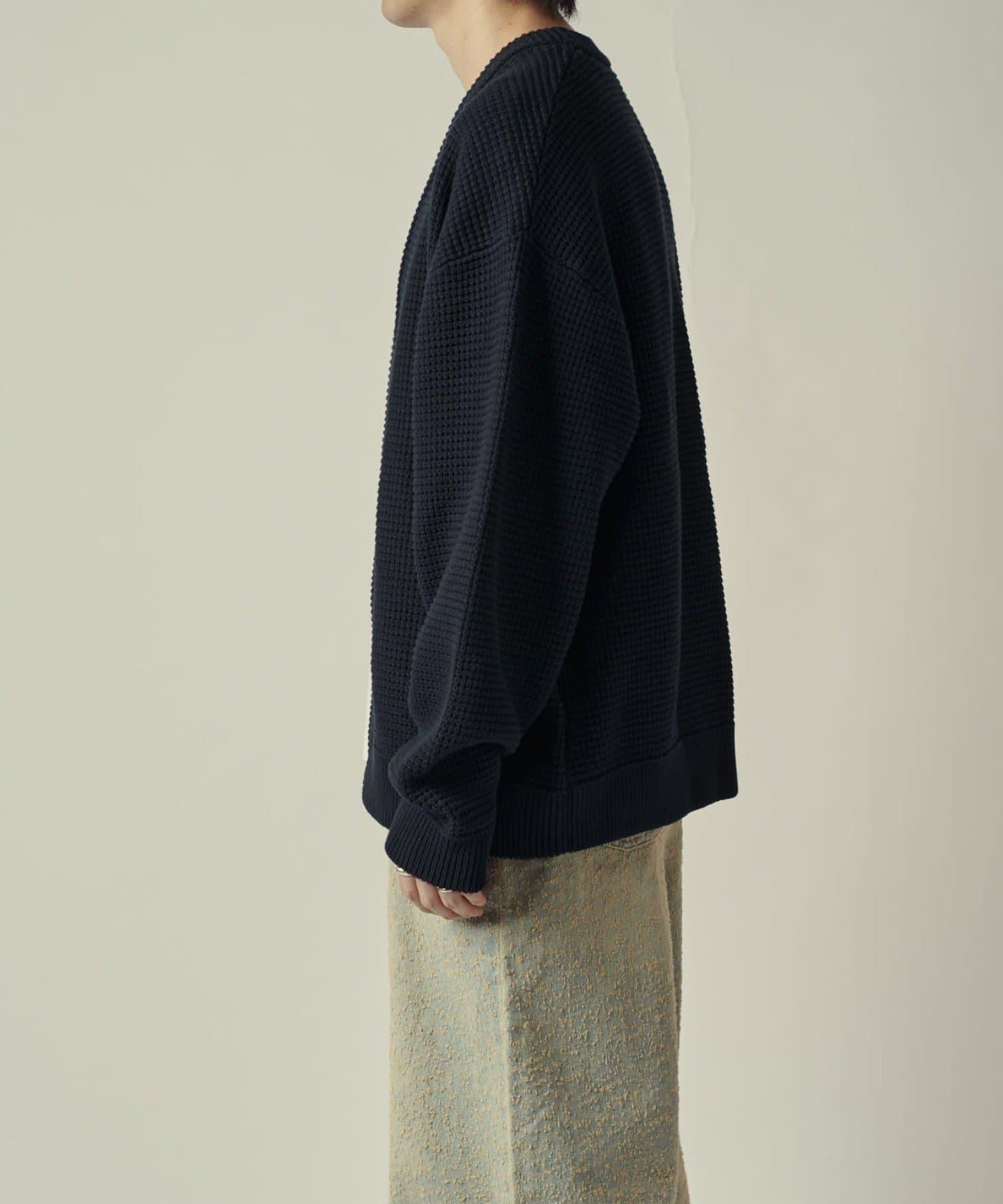 這是一款可以像外衣一樣編織的開襟羊毛衫,面料手感結實。
