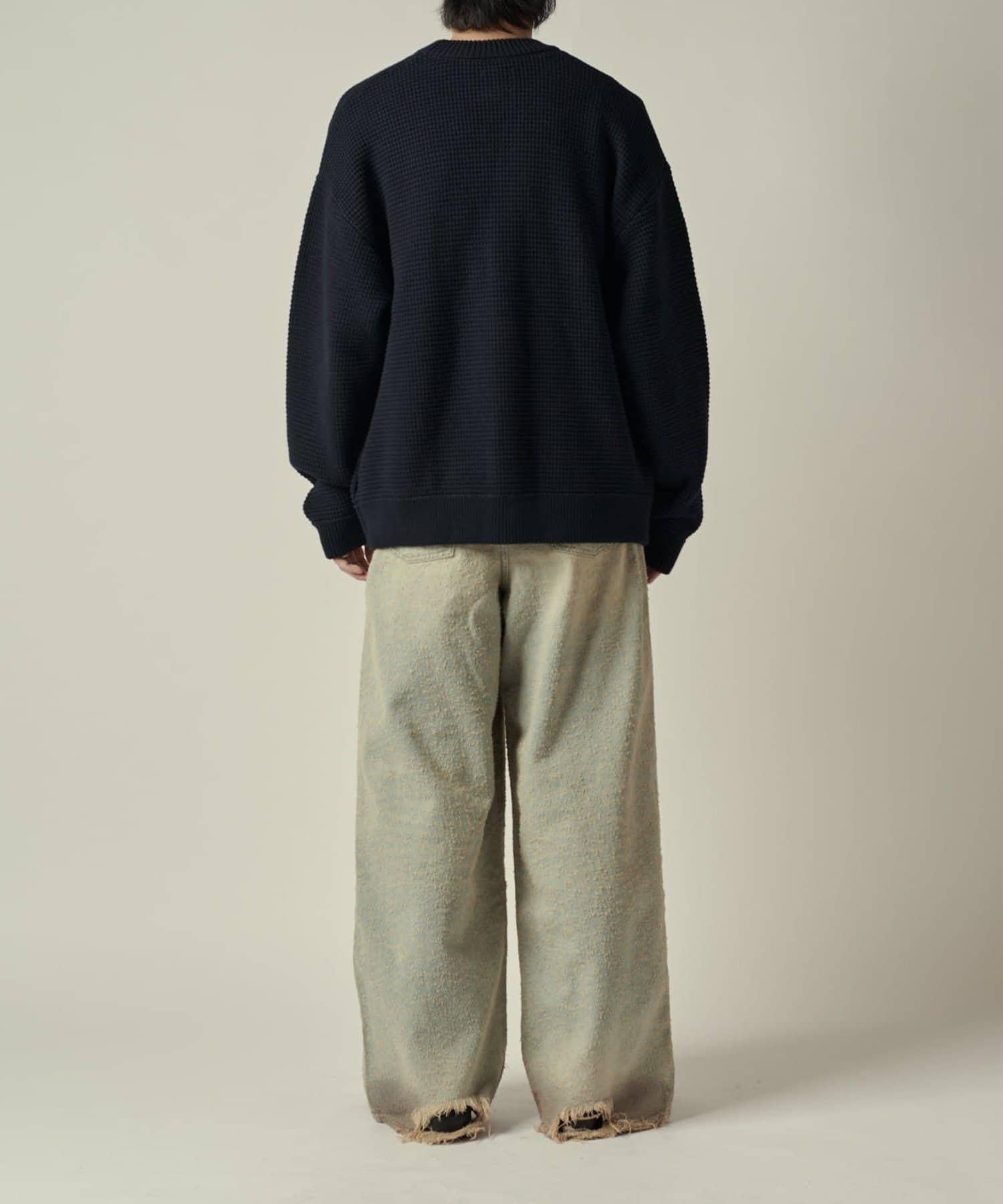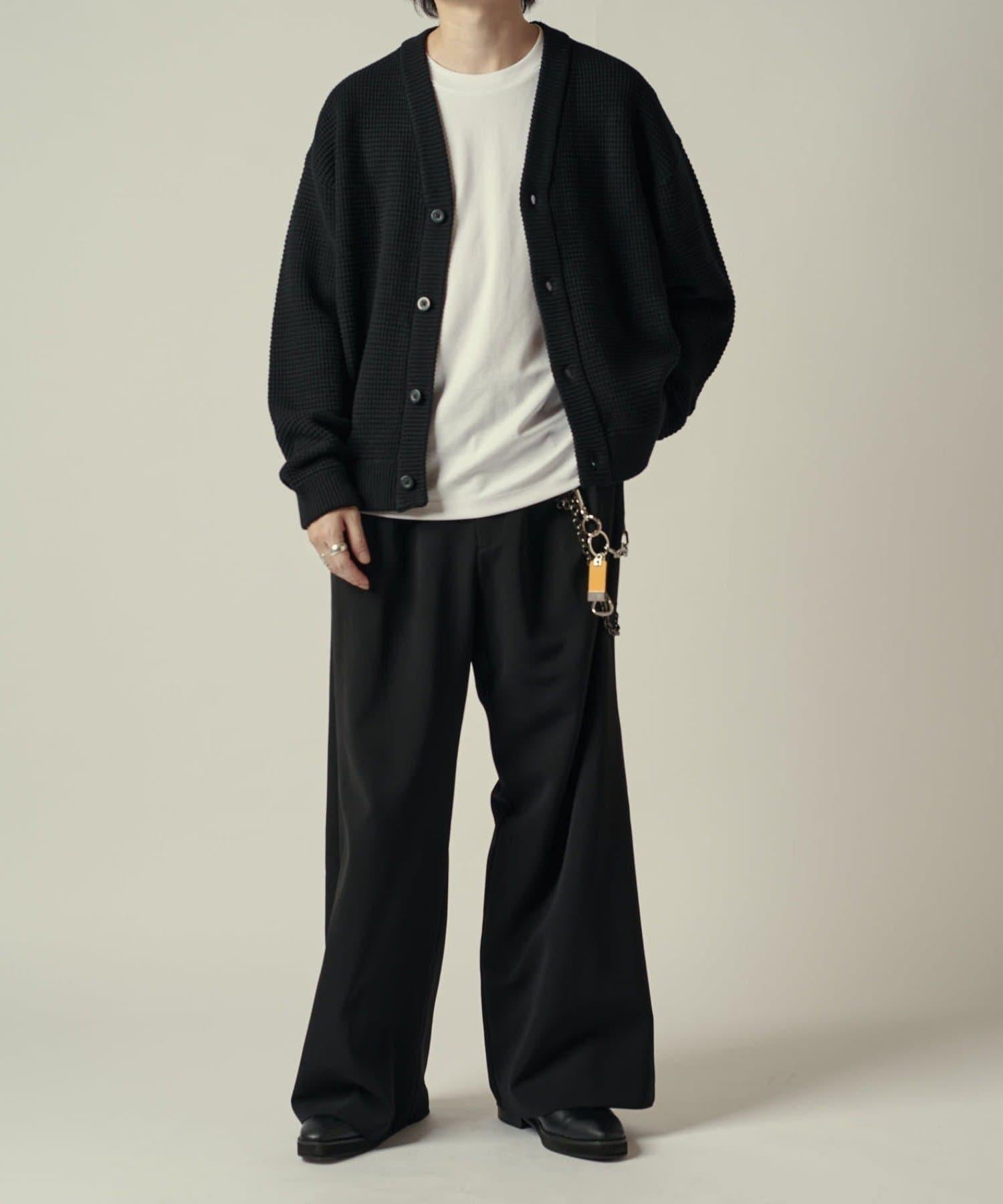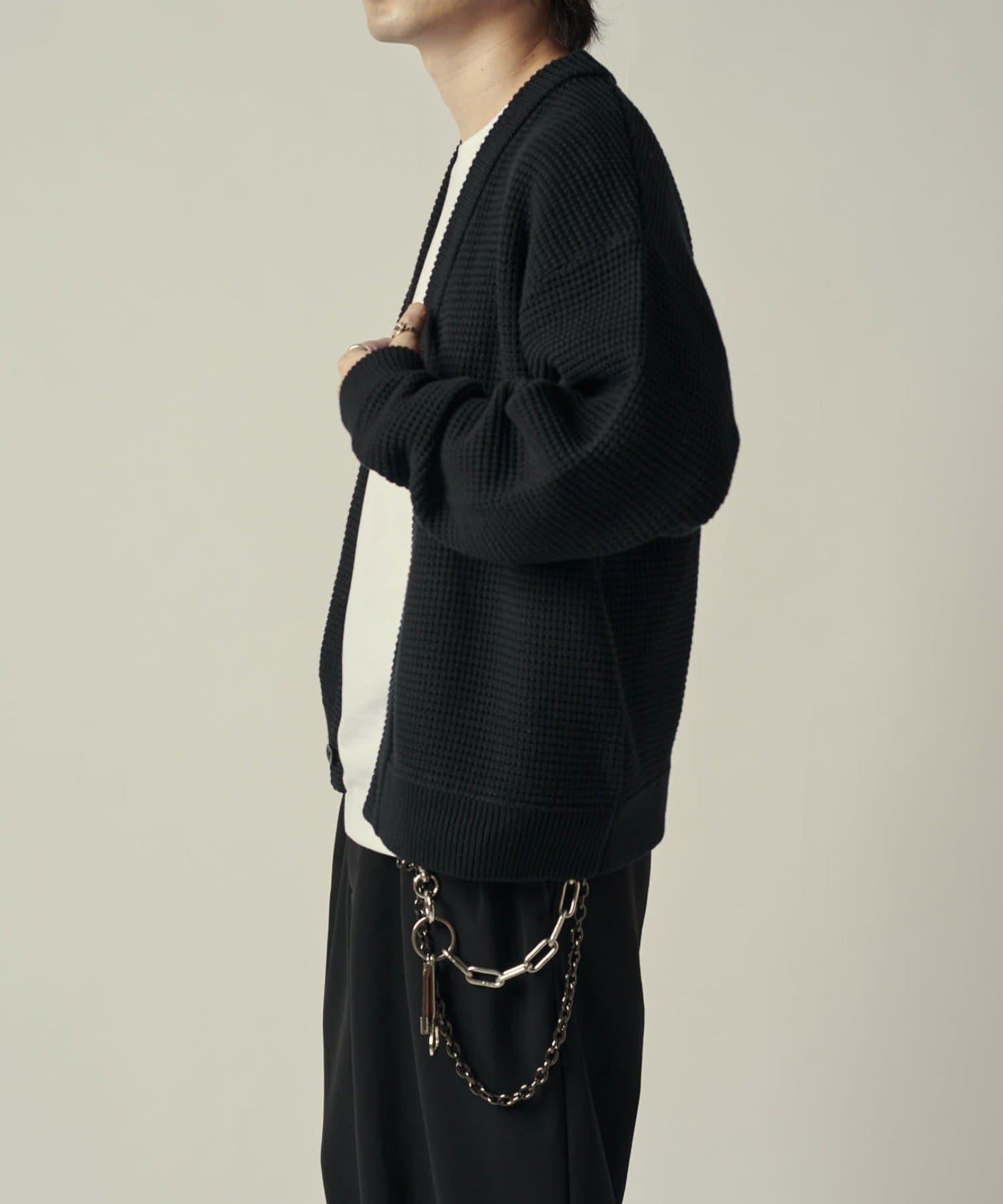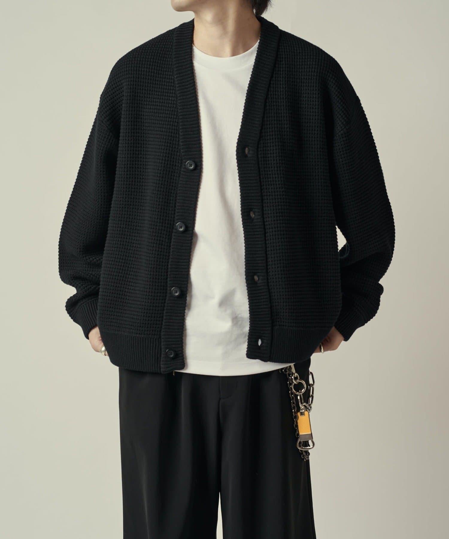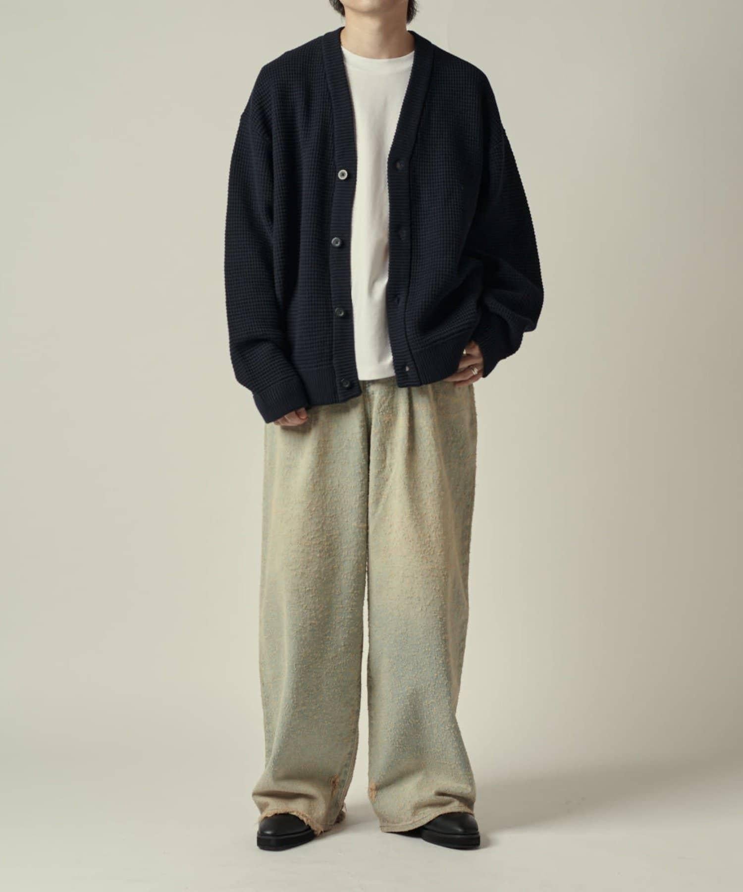 這是一款可以像外衣一樣編織的開襟羊毛衫,面料手感結實。