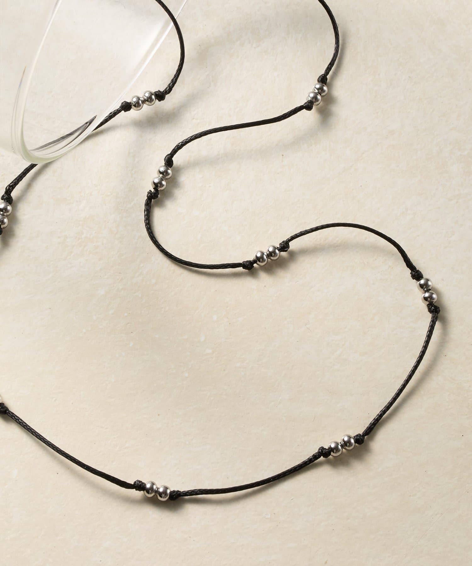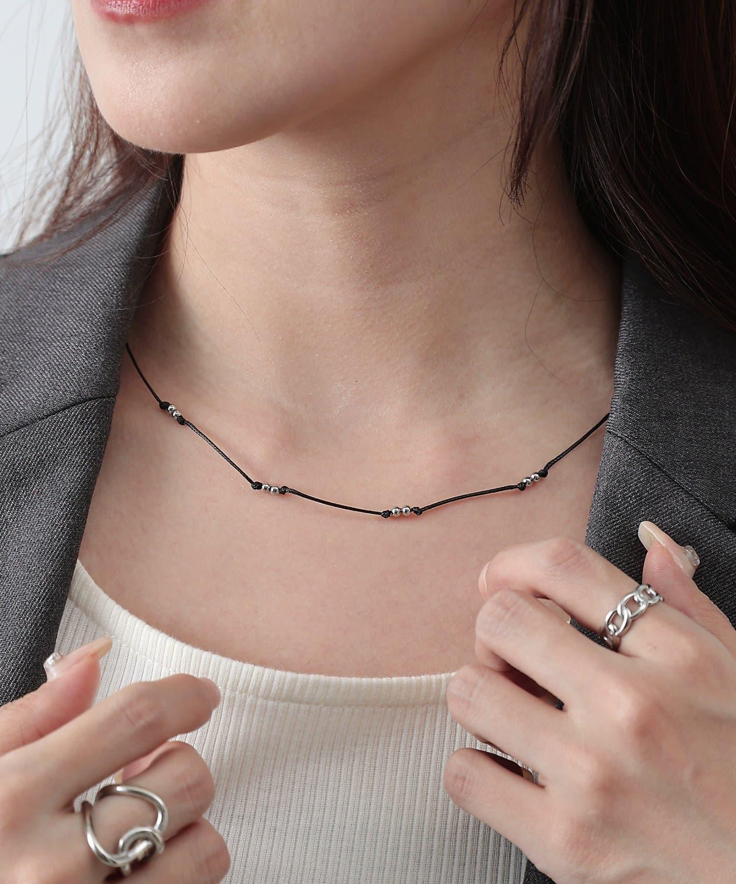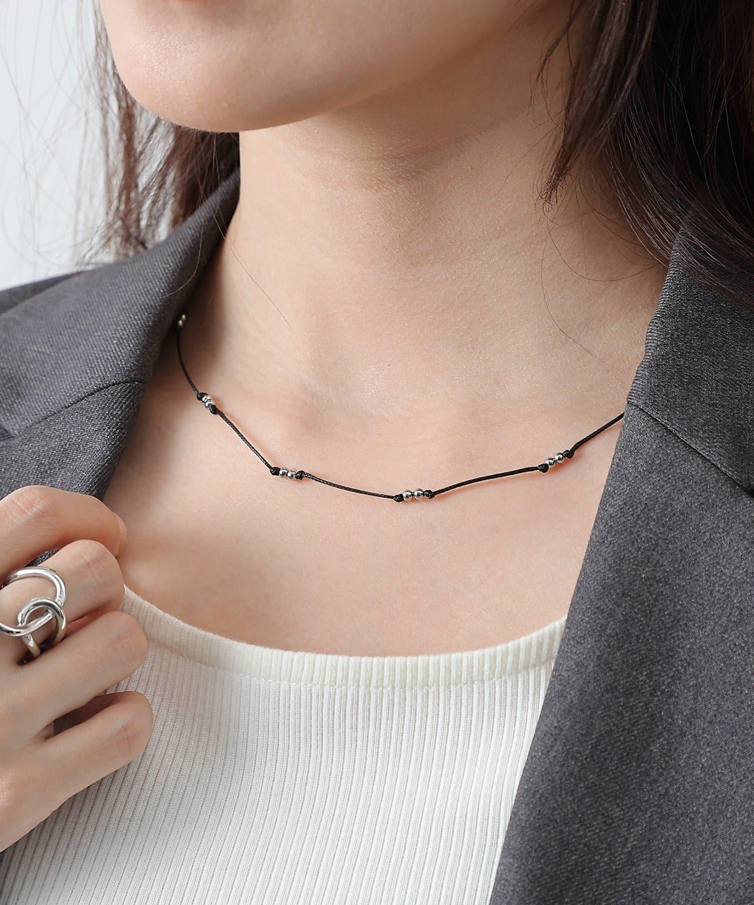 這款項鍊設計新潮,在細膩的繩索上鑲有金屬球。
