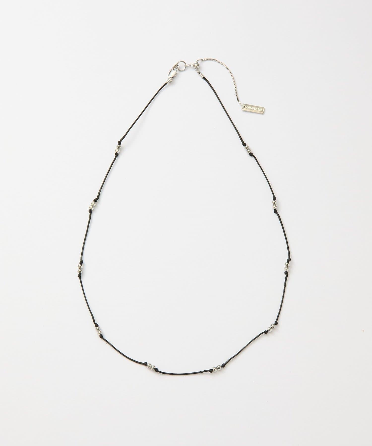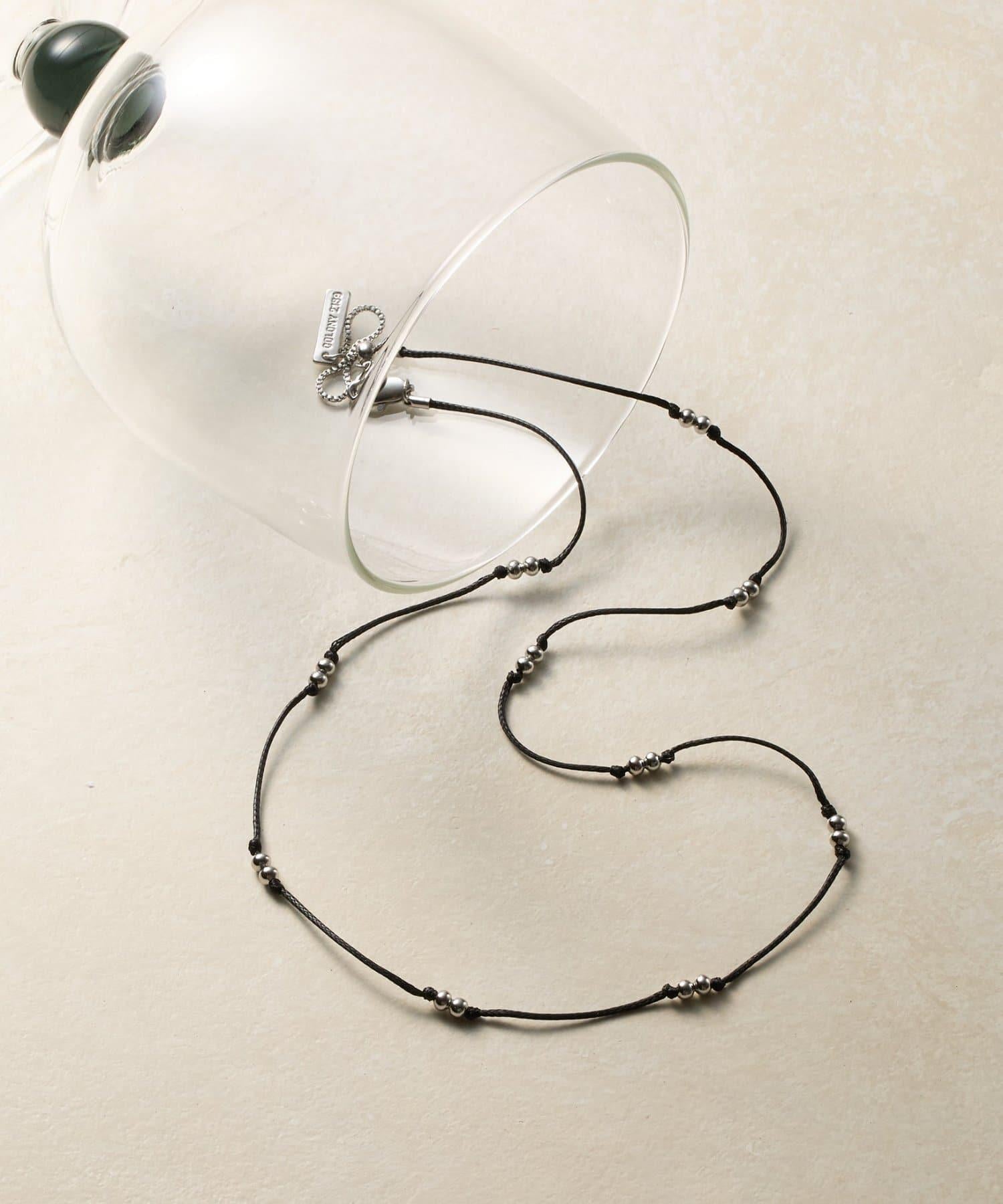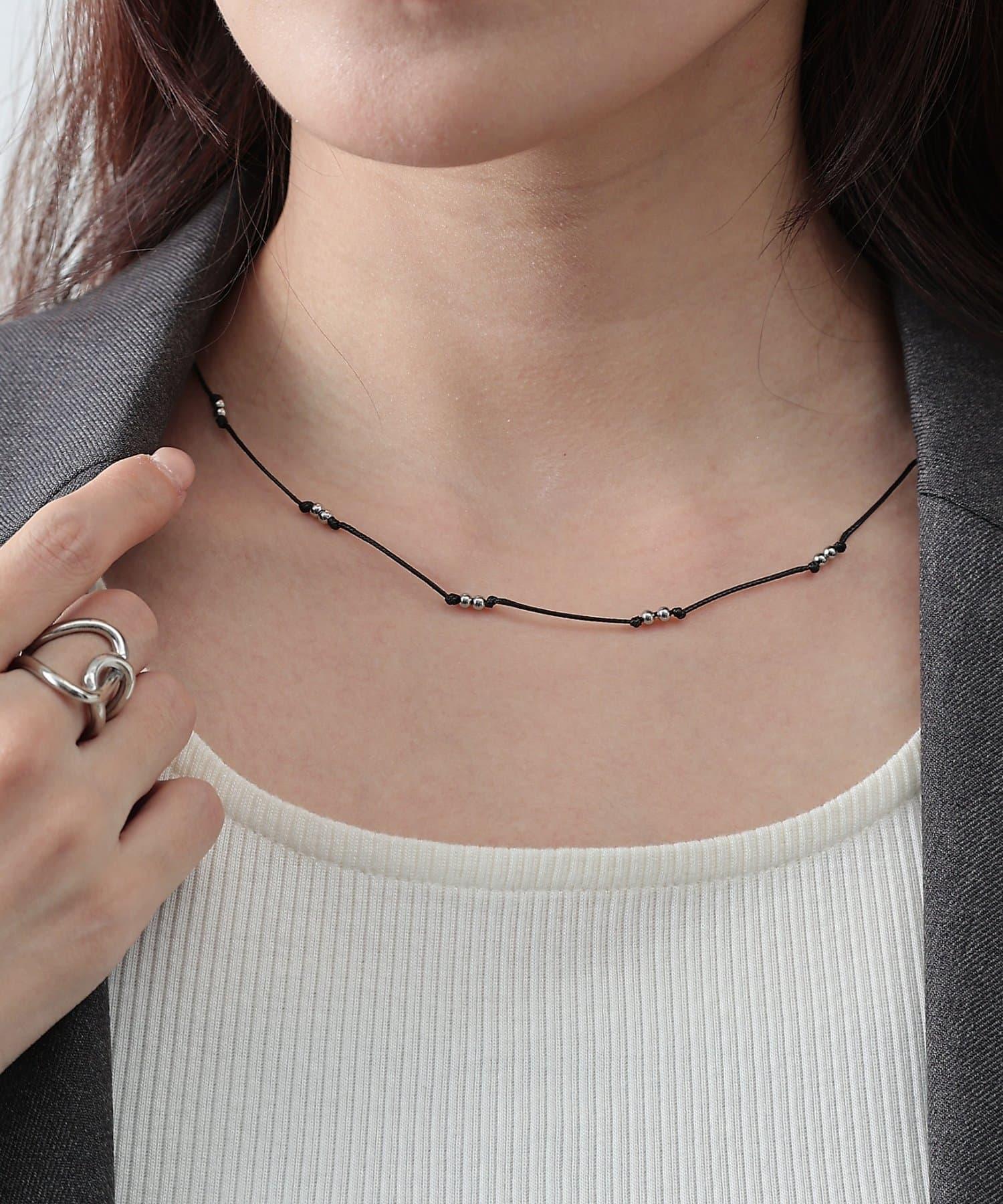 這款項鍊設計新潮,在細膩的繩索上鑲有金屬球。