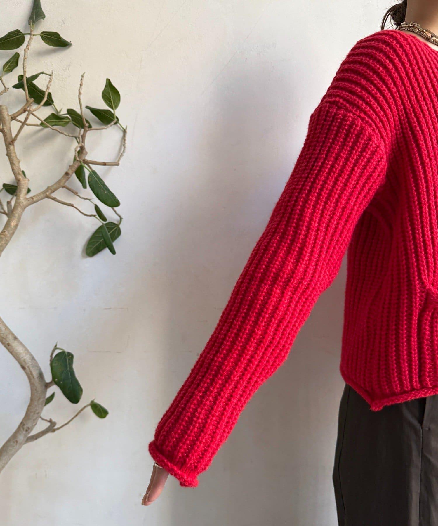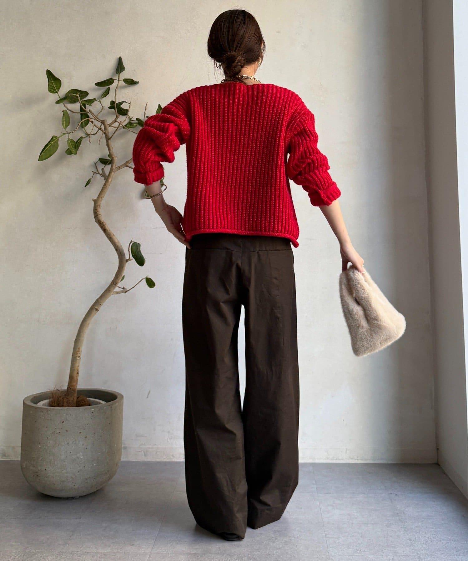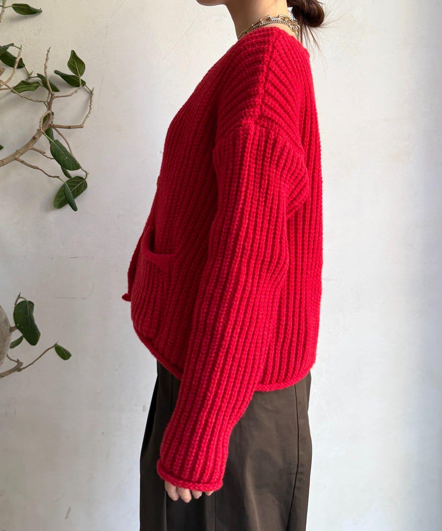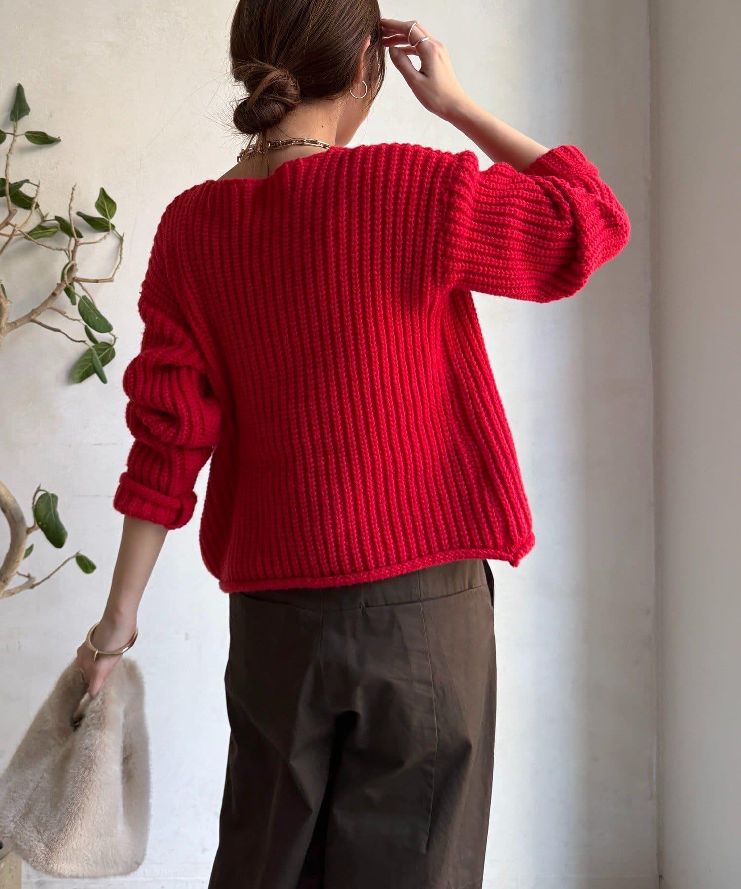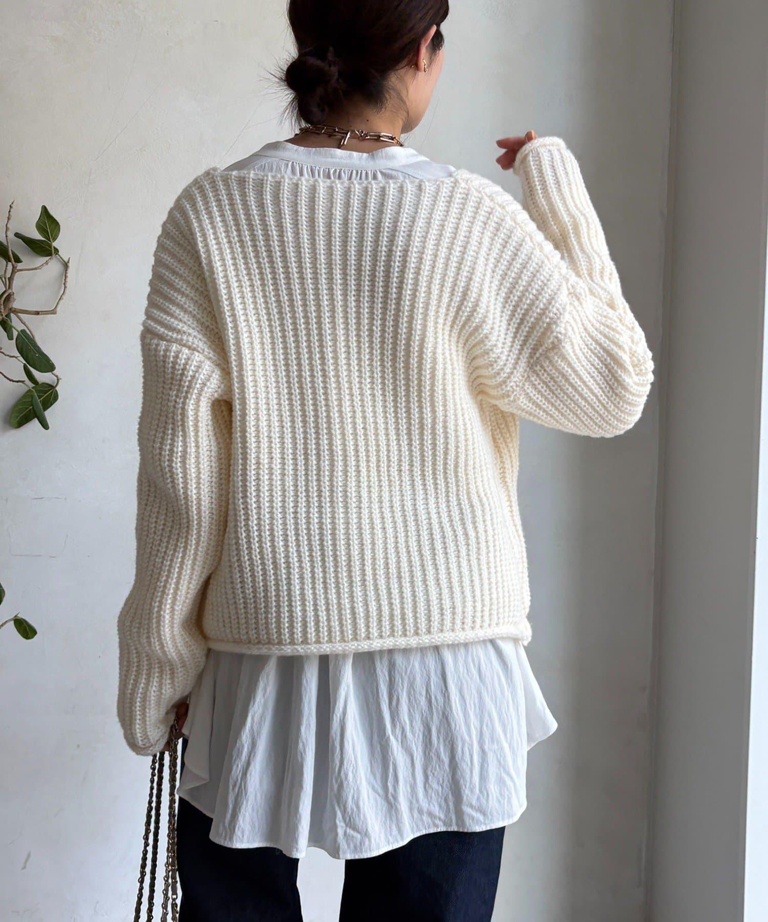低針距開衫搭配金屬大紐扣,給人留下深刻印象。