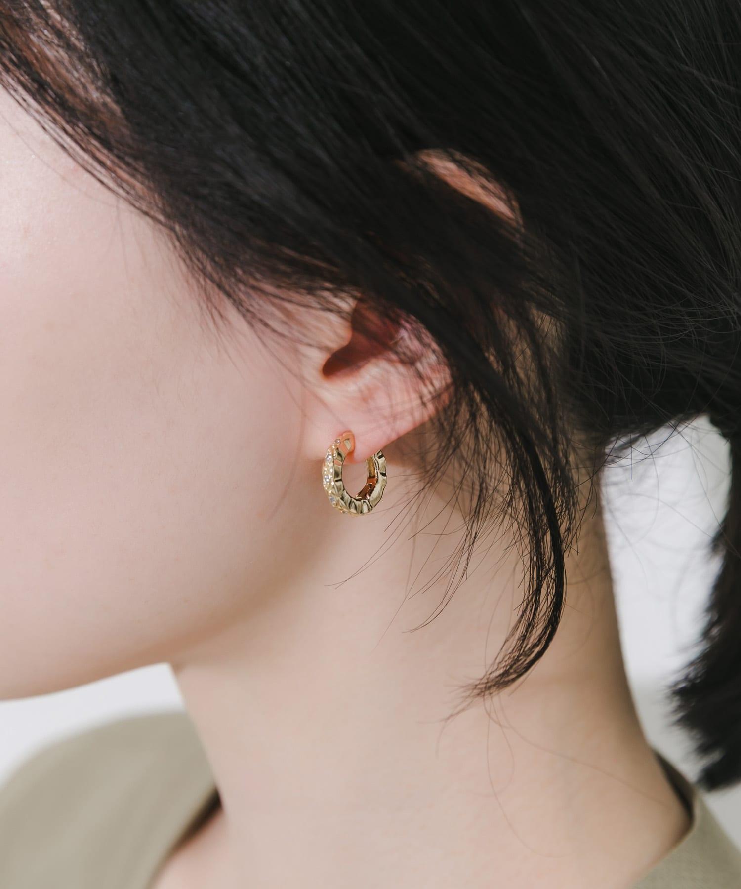 扁平的設計邊緣鑲嵌寶石,耳上的寶石閃爍著微妙的光芒,為您的造型增添亮點。一觸式設計也是一大特色,讓您可以快速無壓力地戴上摘下。無論戴上還是摘下,都是你每天都想拿起的經典單品。