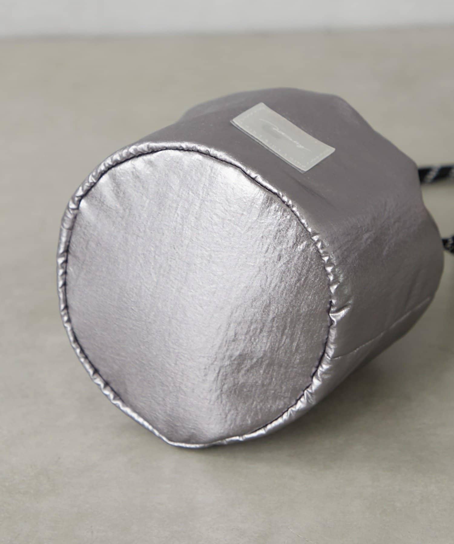 迷你拉繩包採用品牌👍的金屬面料製成。