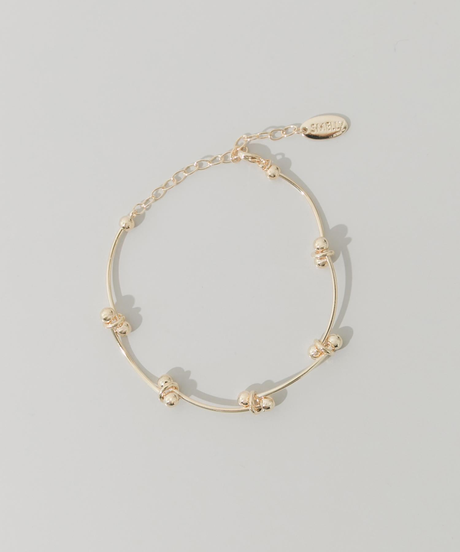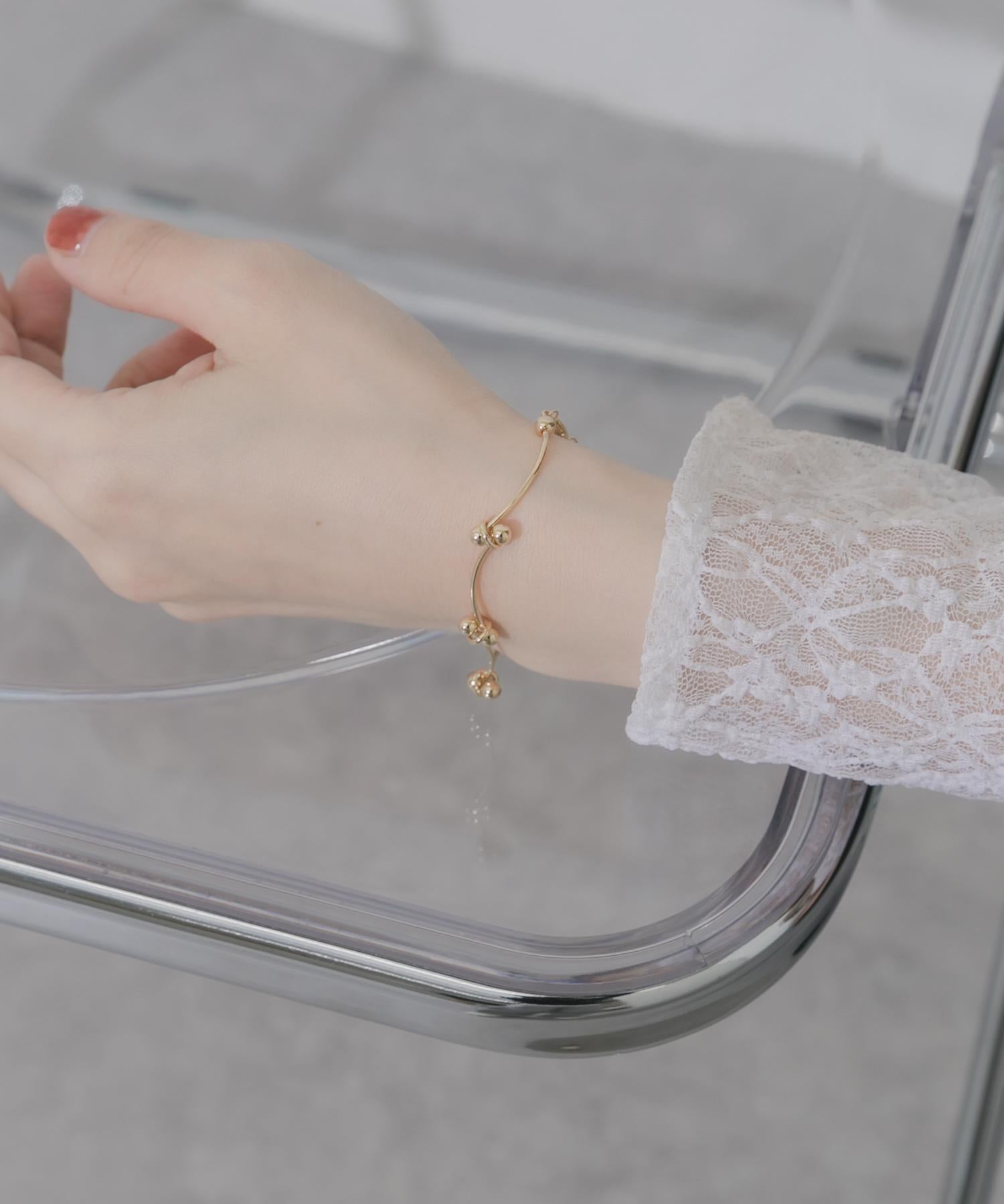 這款手鍊的特色是在波浪形金條上有節奏地排列著金屬小球。