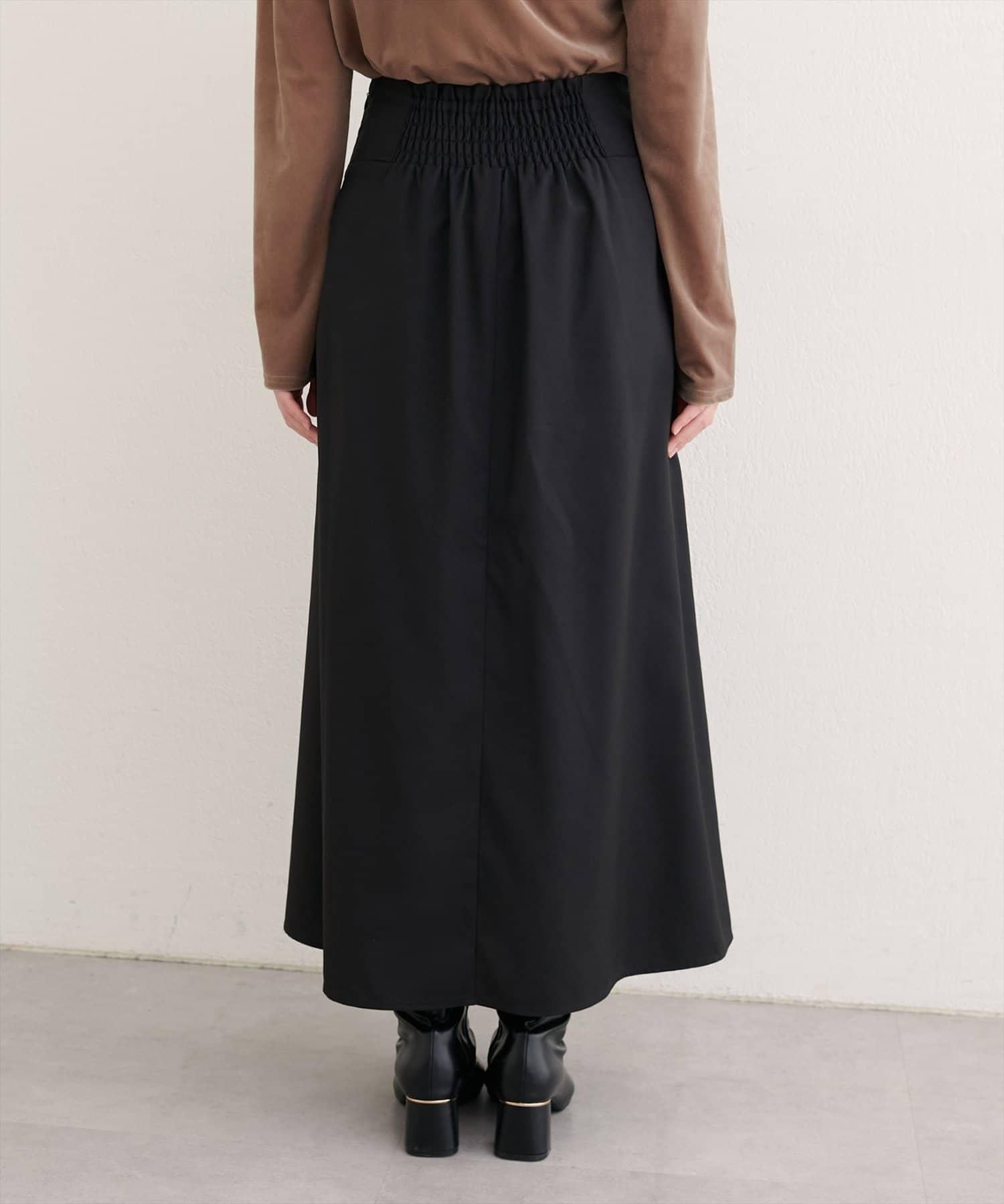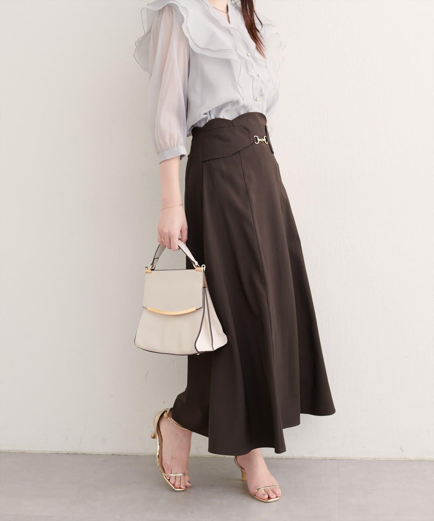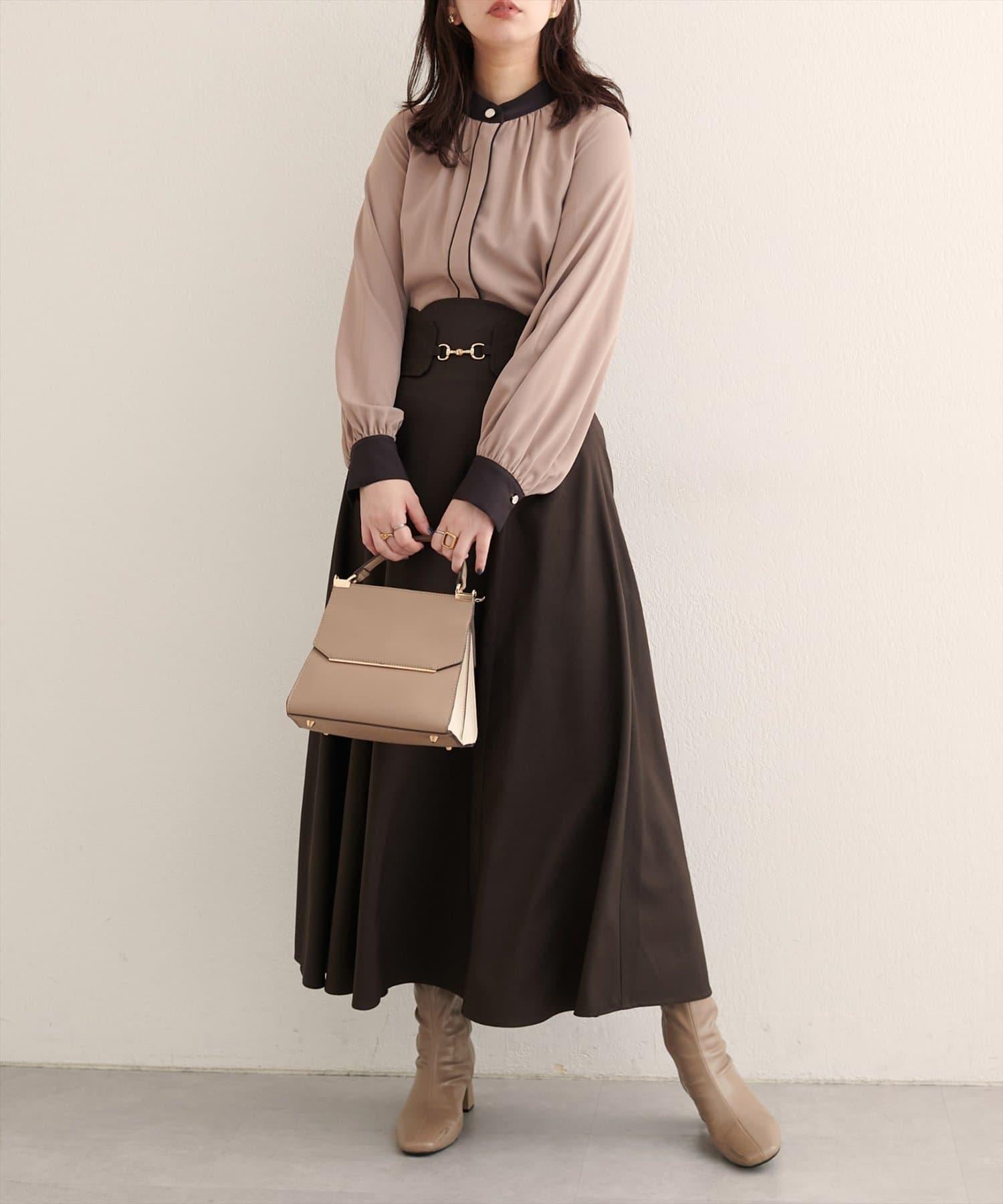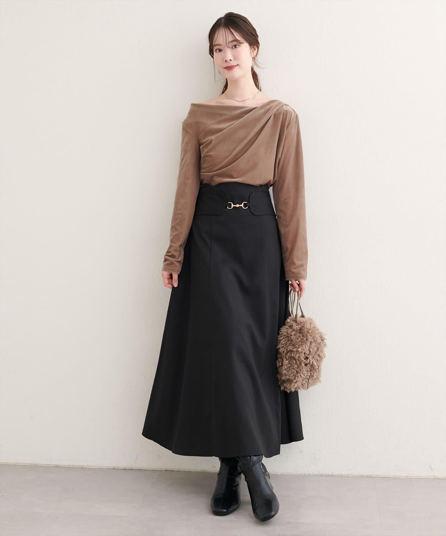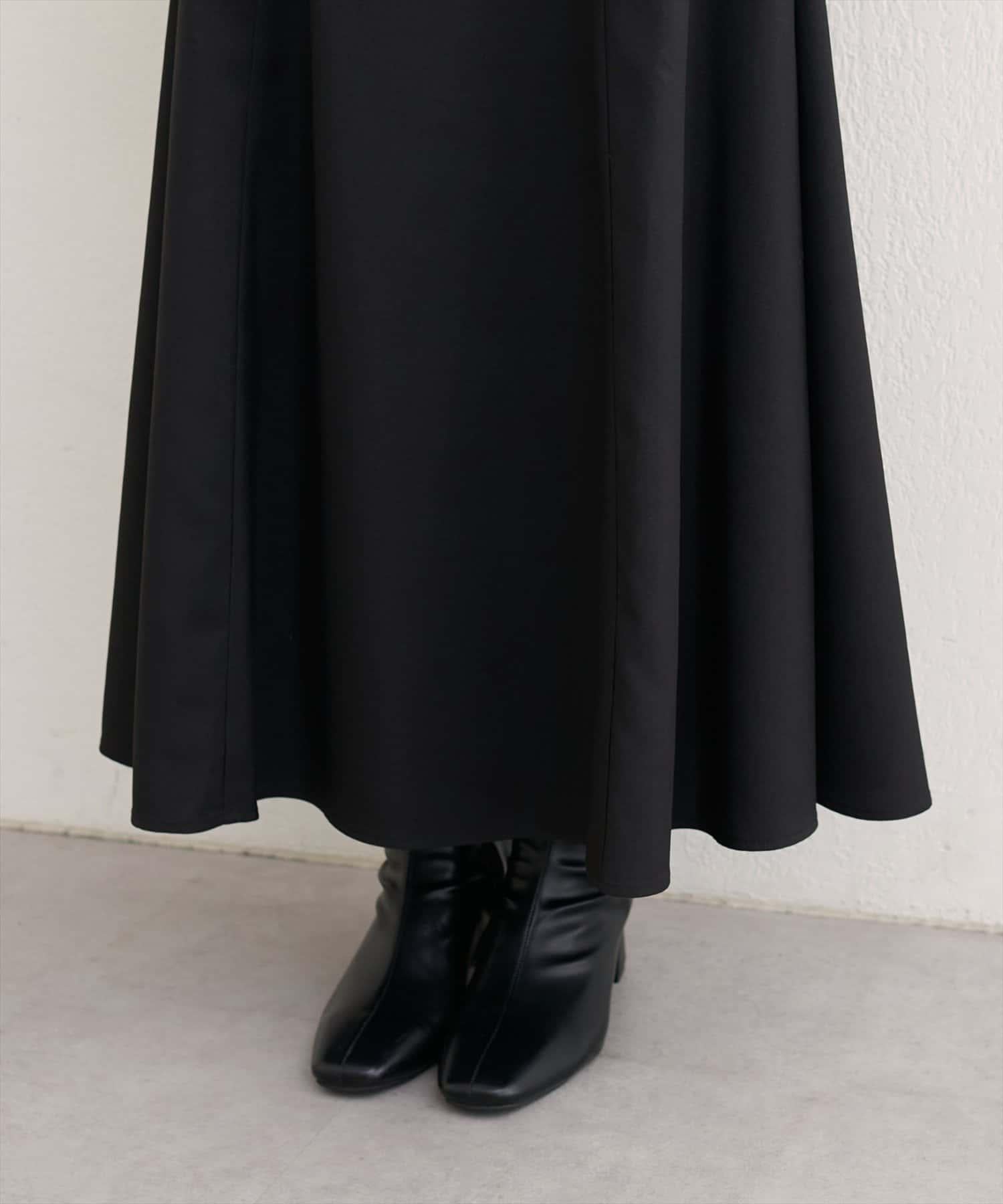 喇叭形的廓形避免了身體線條的外露,具有垂墜感的面料使廓形優美而不顯寬大。