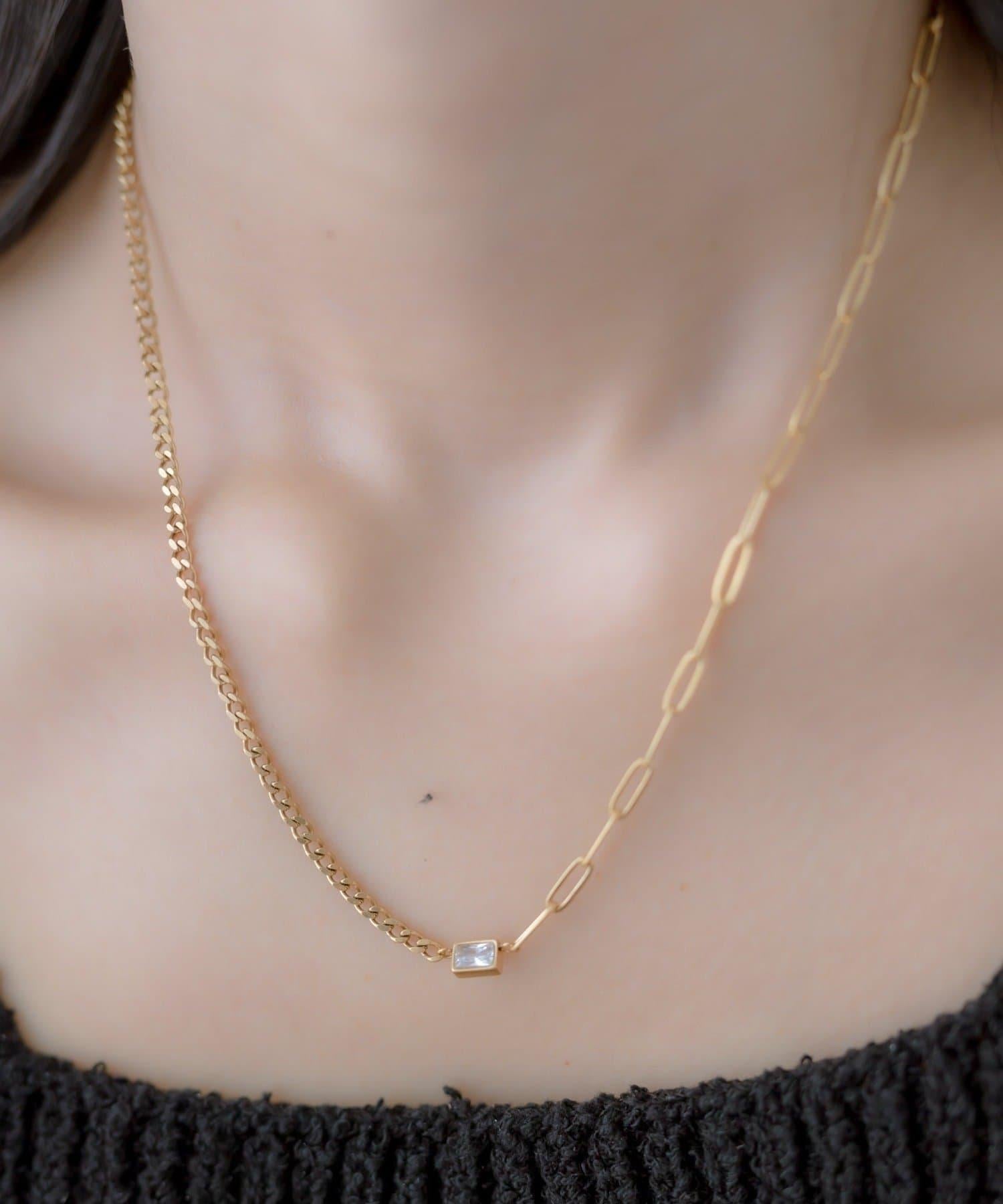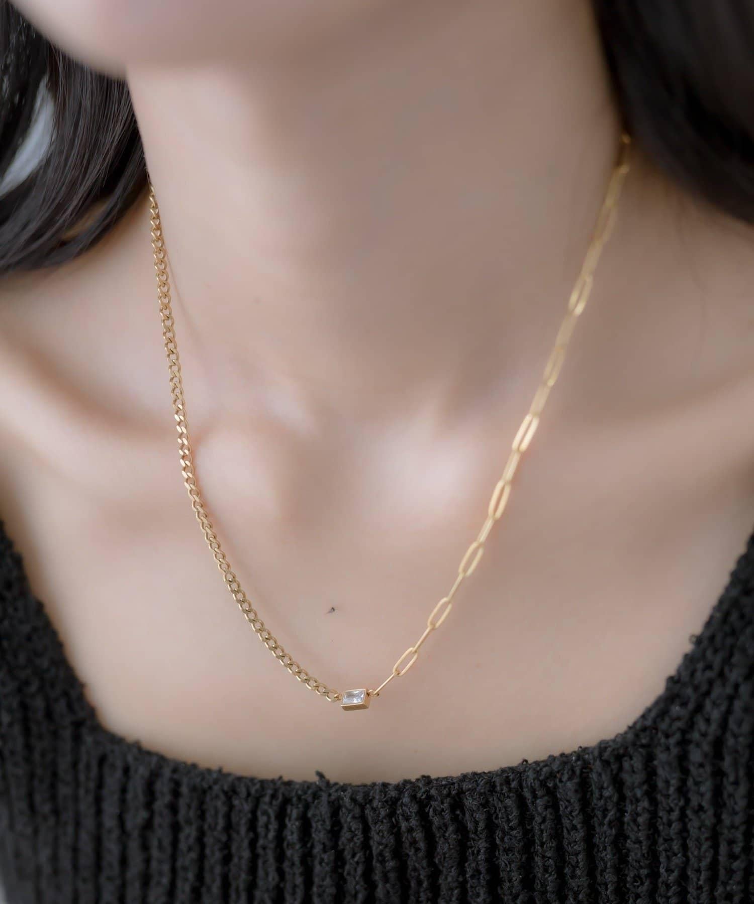 乍看之下,這條鏈式項鍊十分簡單,但鋯石的加入使其更顯優雅。