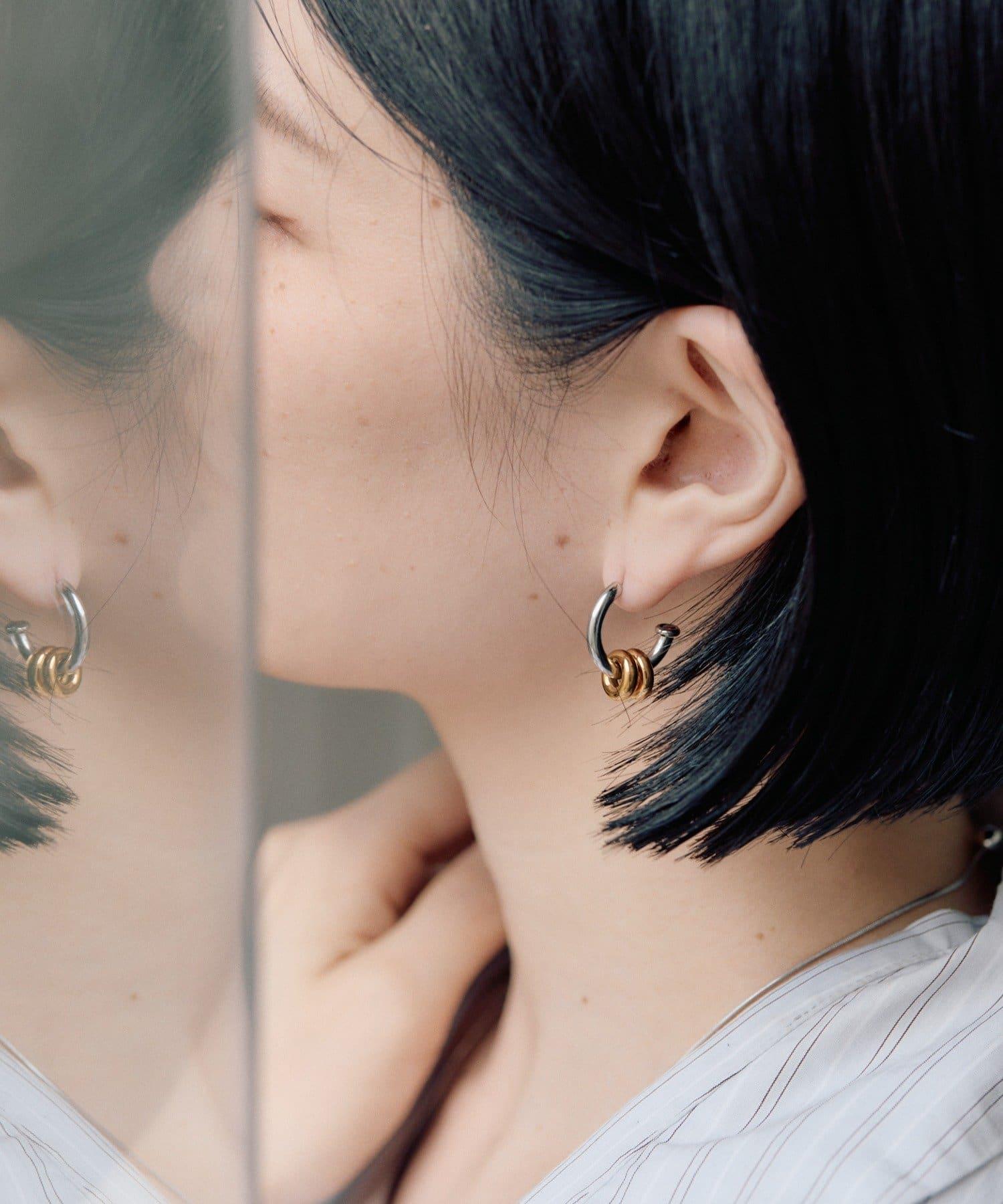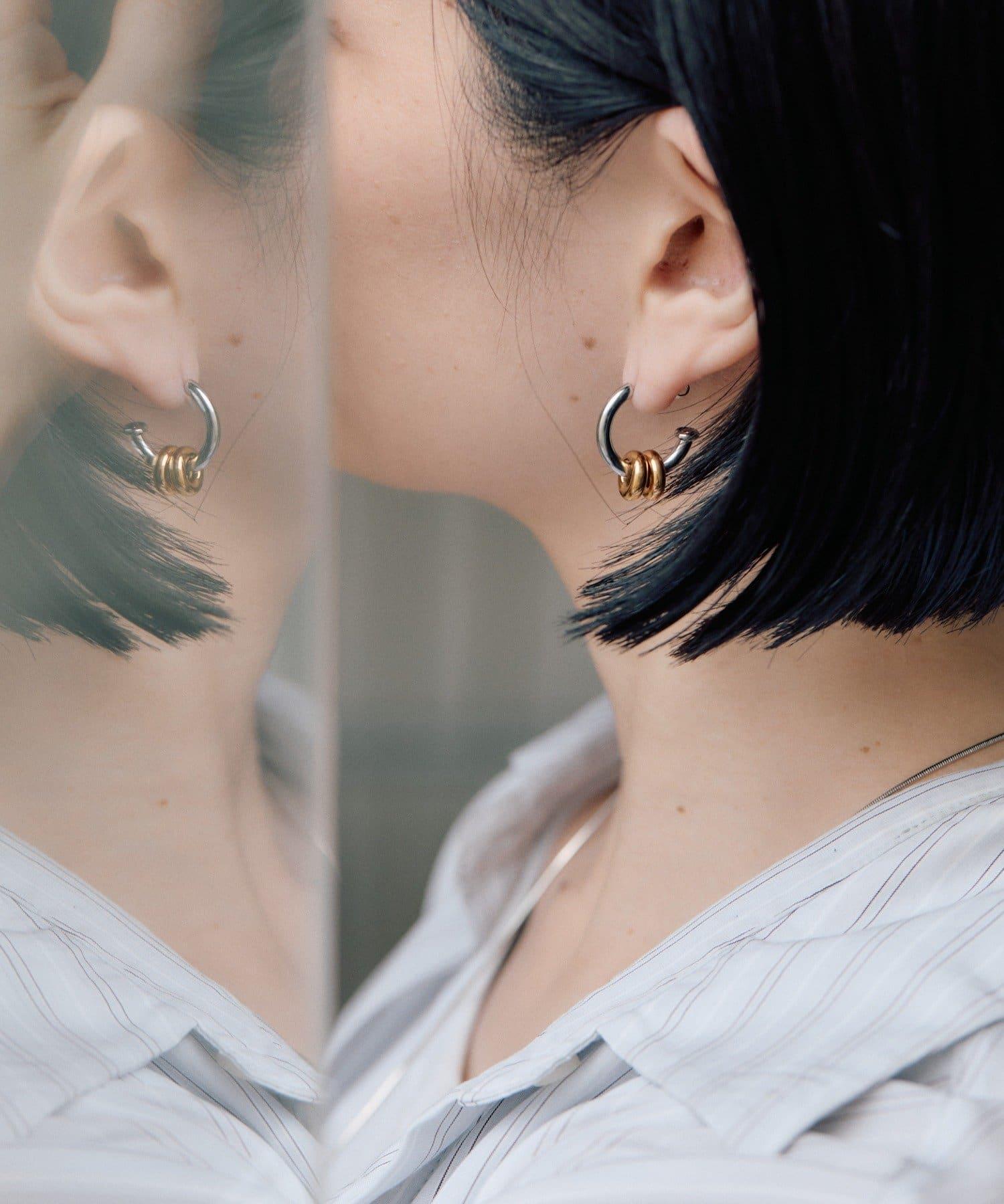 厚實的環形耳環極具存在感,增添了男裝氣息。