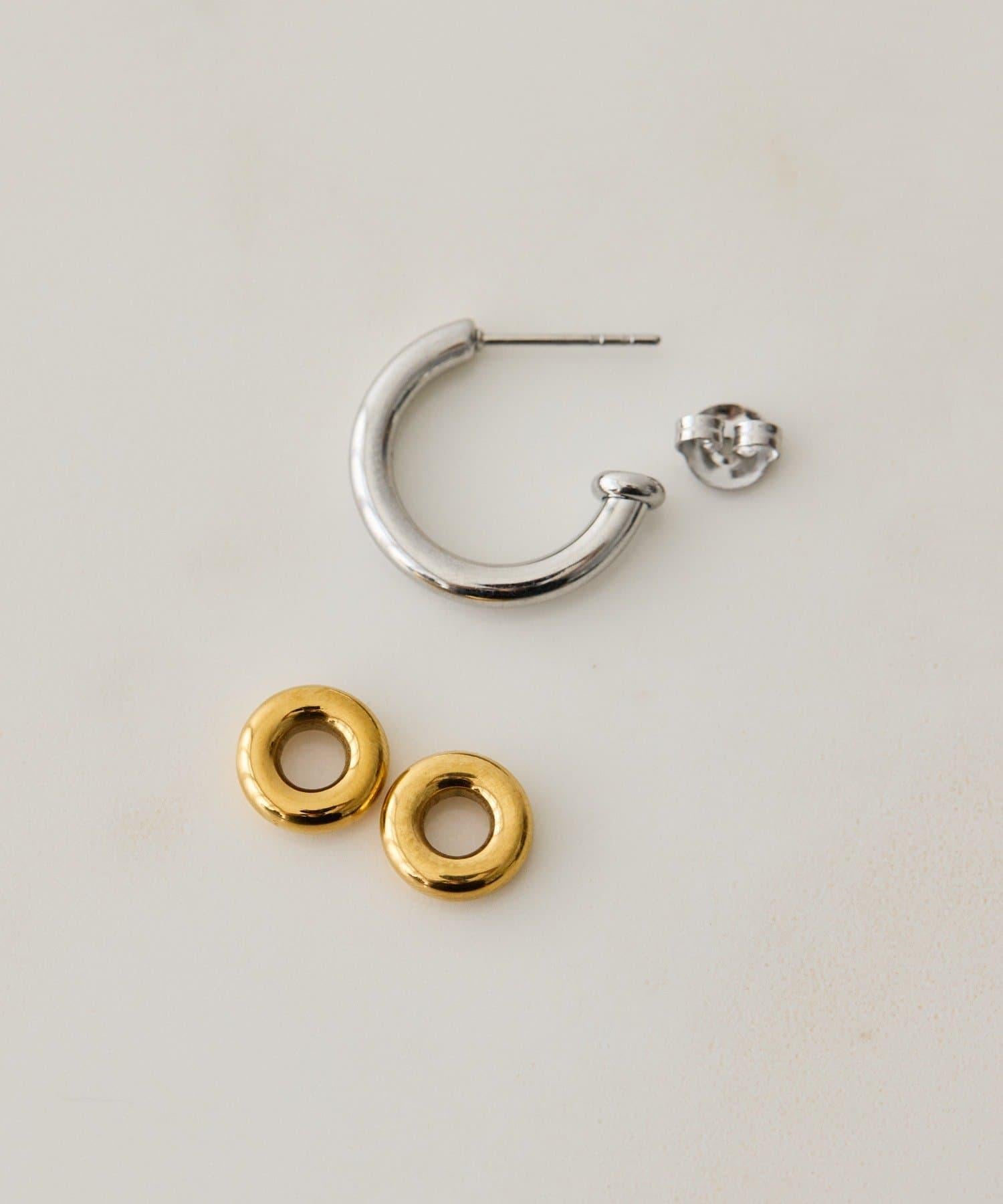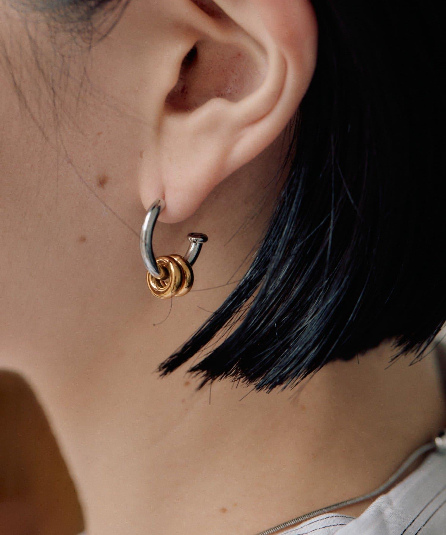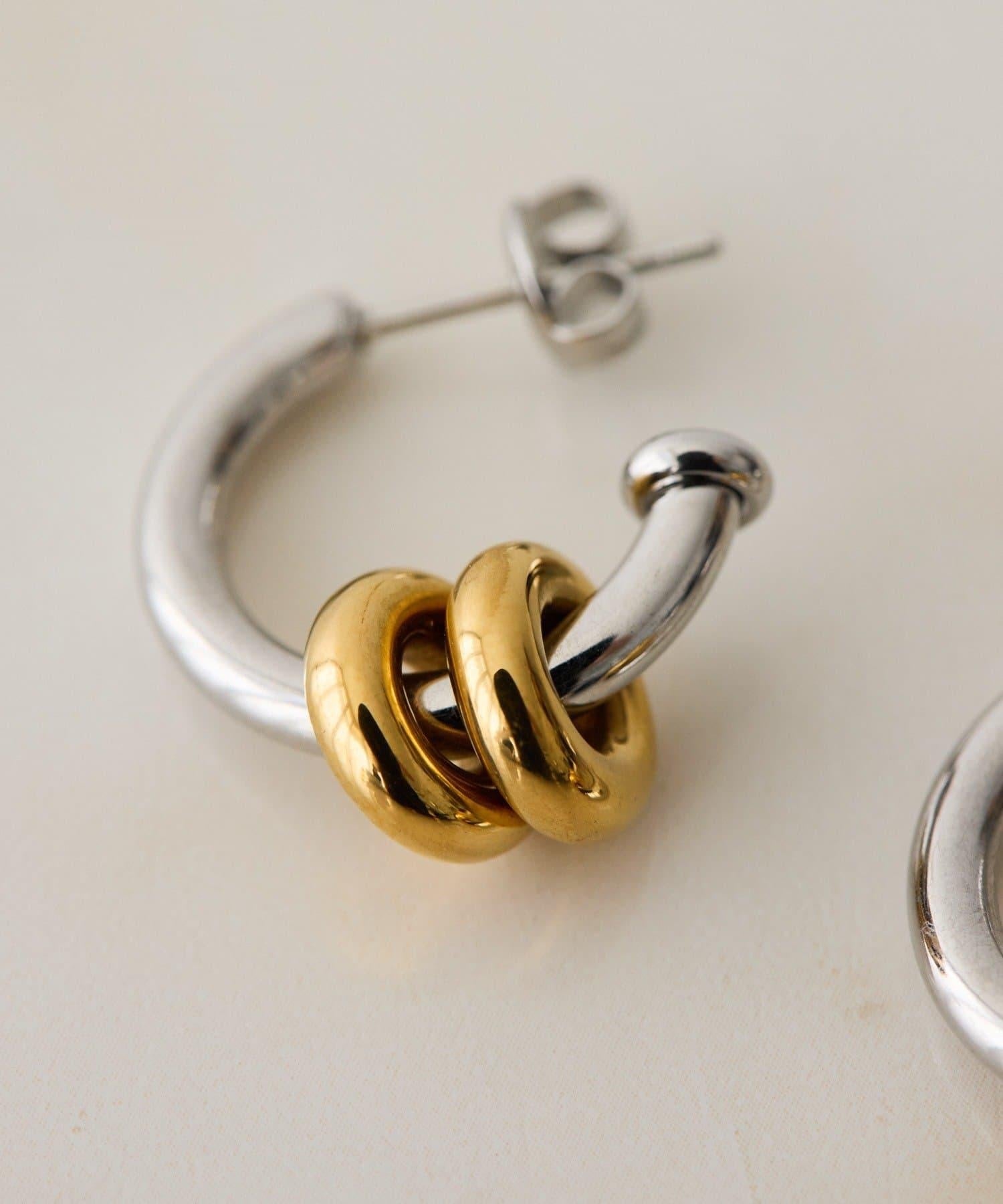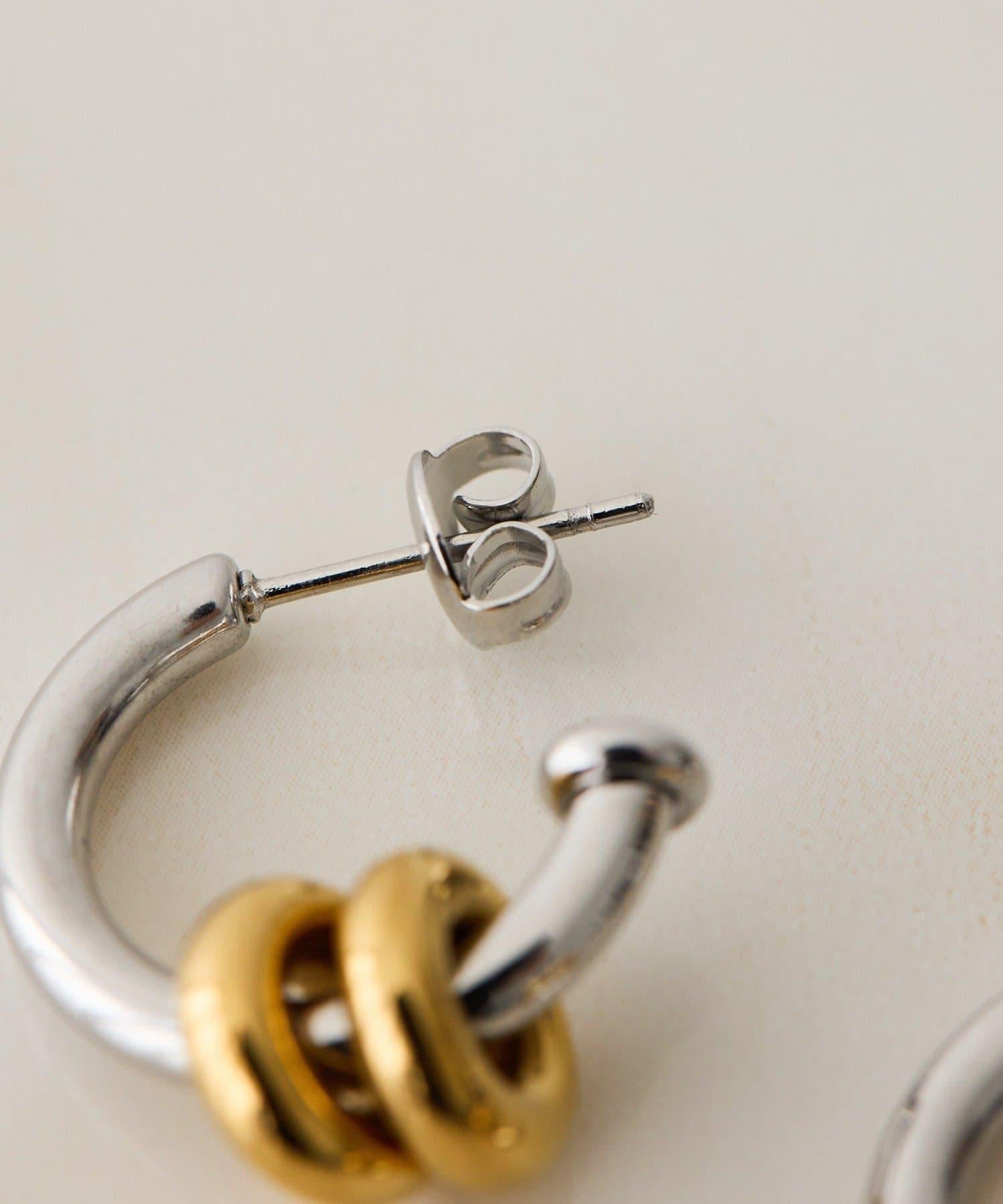 這款時尚耳環以銀色環狀耳環和金色環狀耳環為特色。