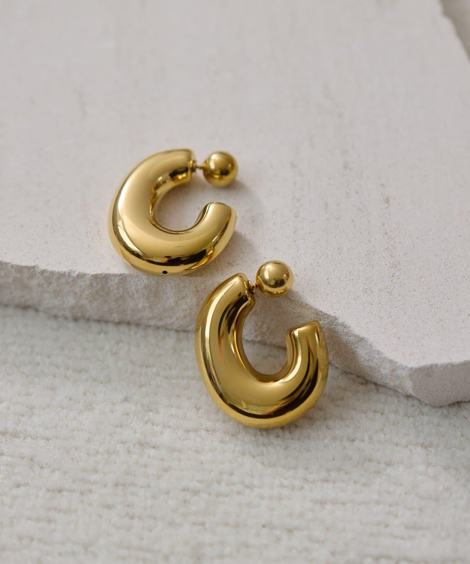 《金屬過敏適用/不鏽鋼》厚實後掛式耳環