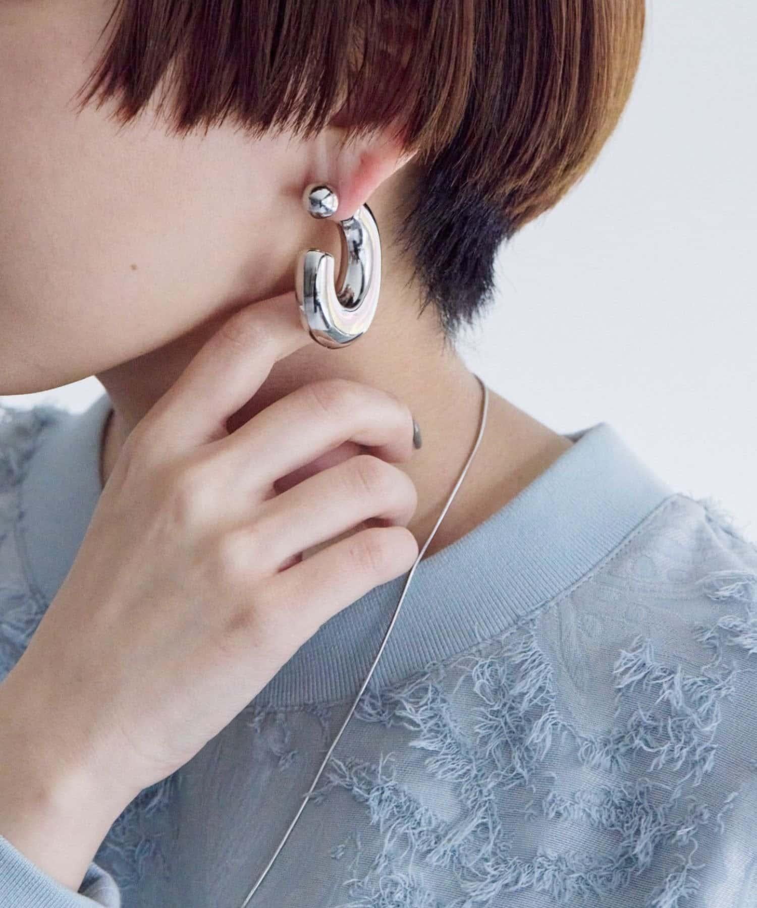 閃亮的金屬在耳環上反光,在面部周圍營造出華麗的印象。
