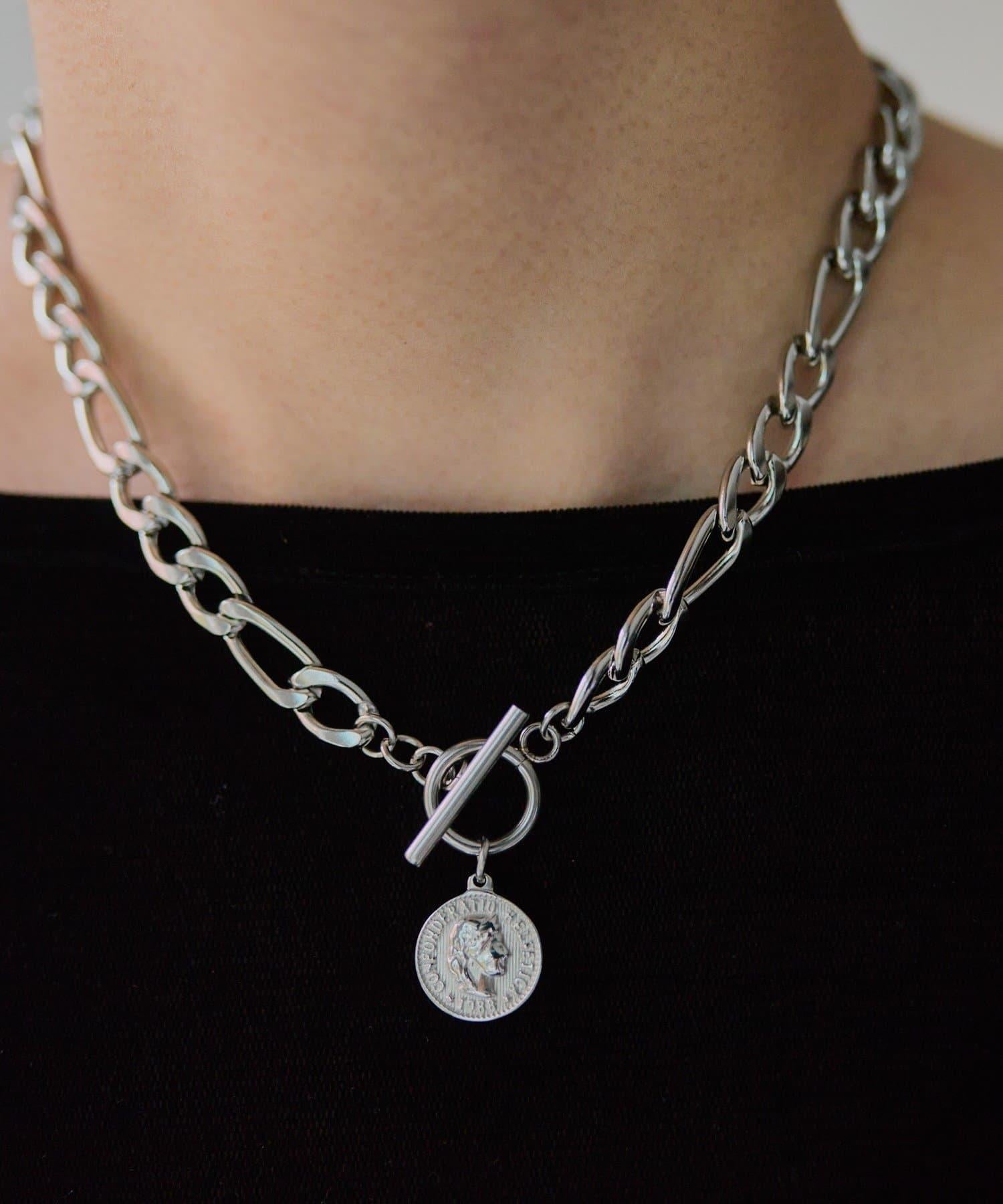 金屬過敏適用/不鏽鋼 帶硬幣吊墜菲加羅鏈項鍊