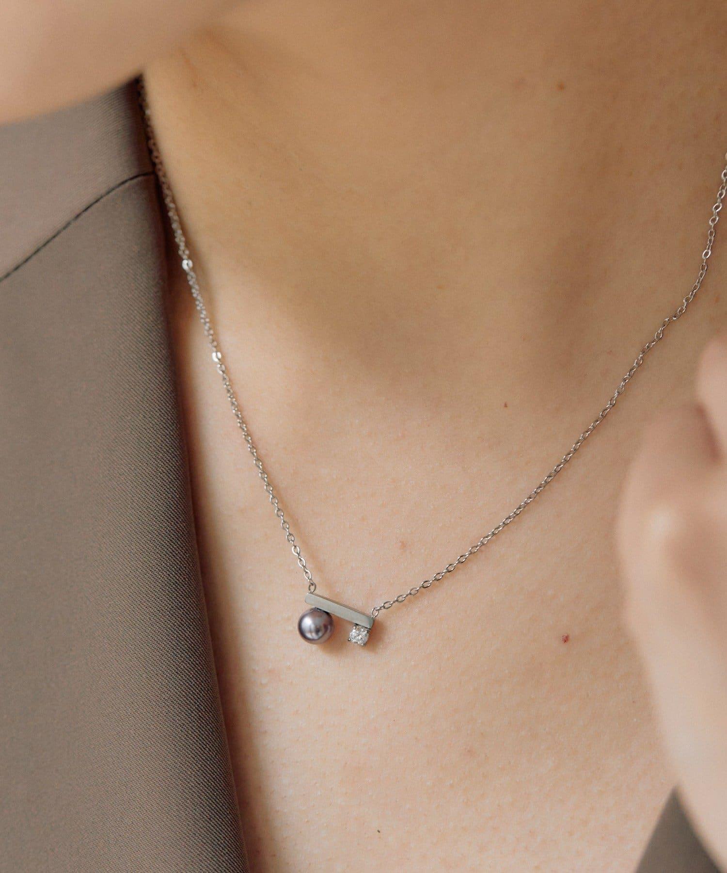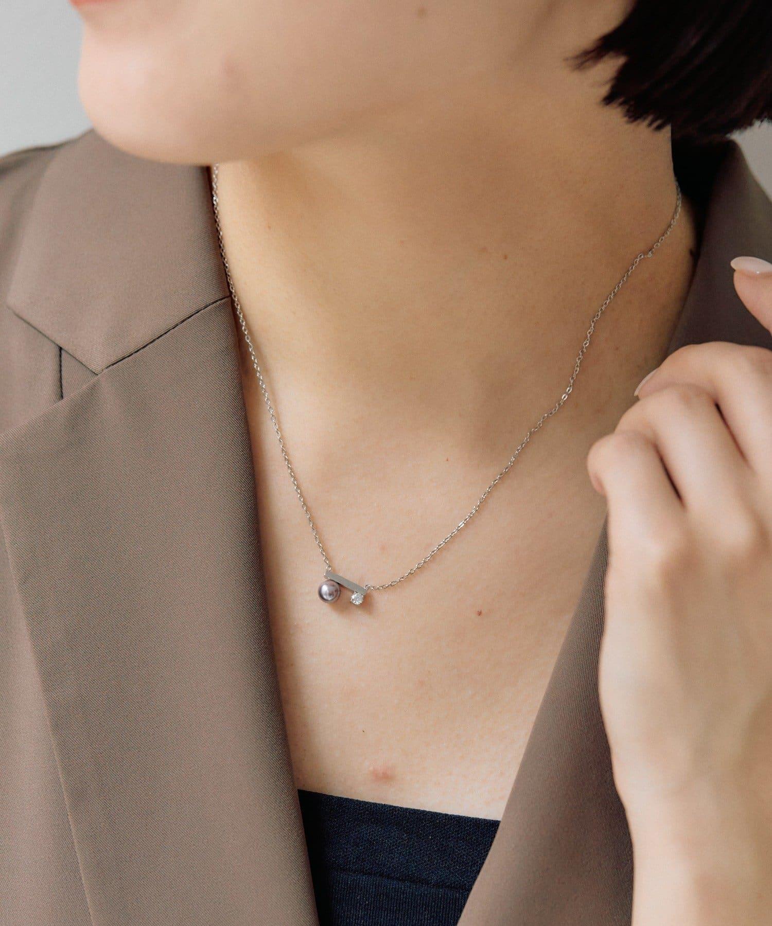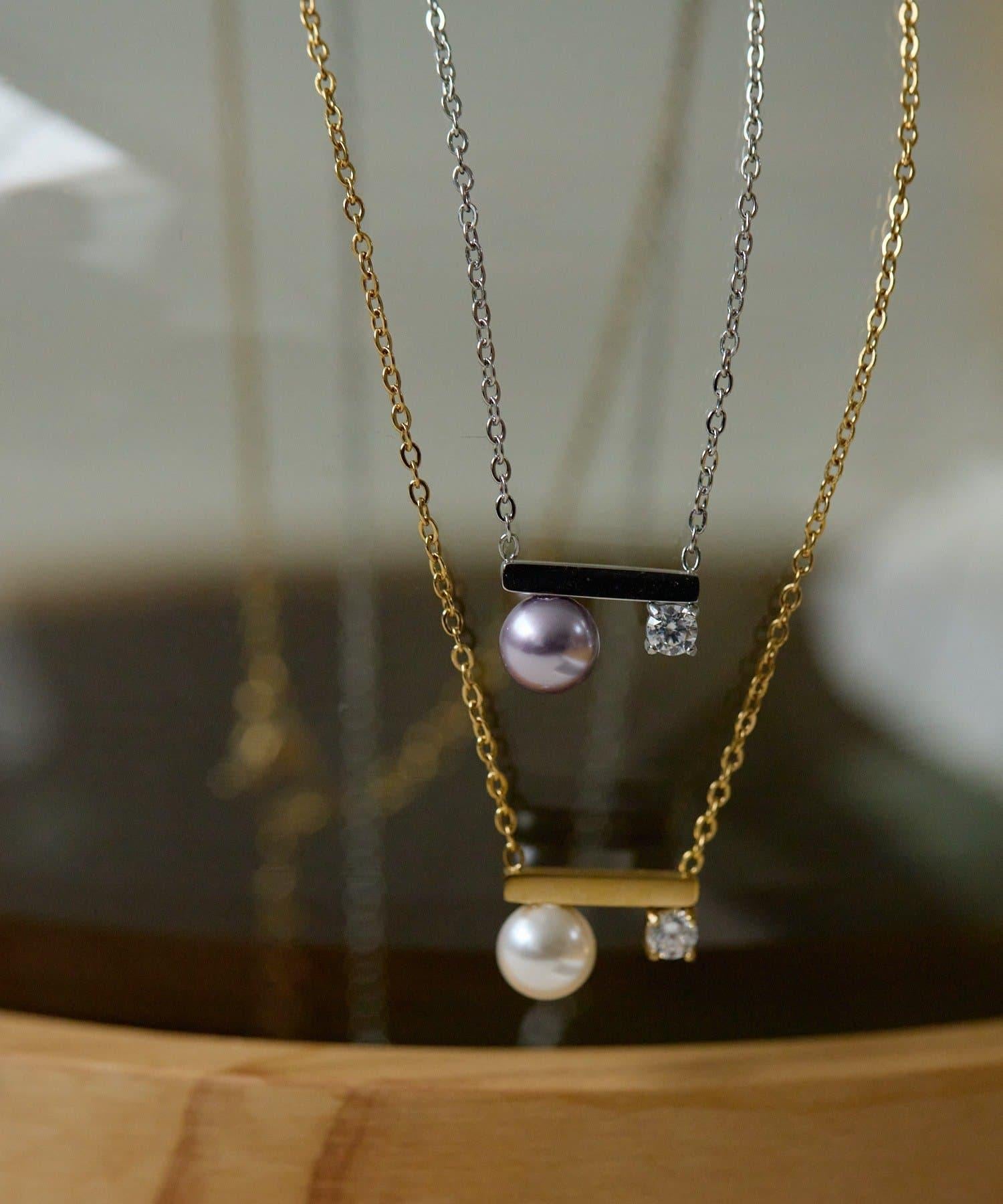 金屬過敏適用/不鏽鋼 珍珠×水晶項鍊