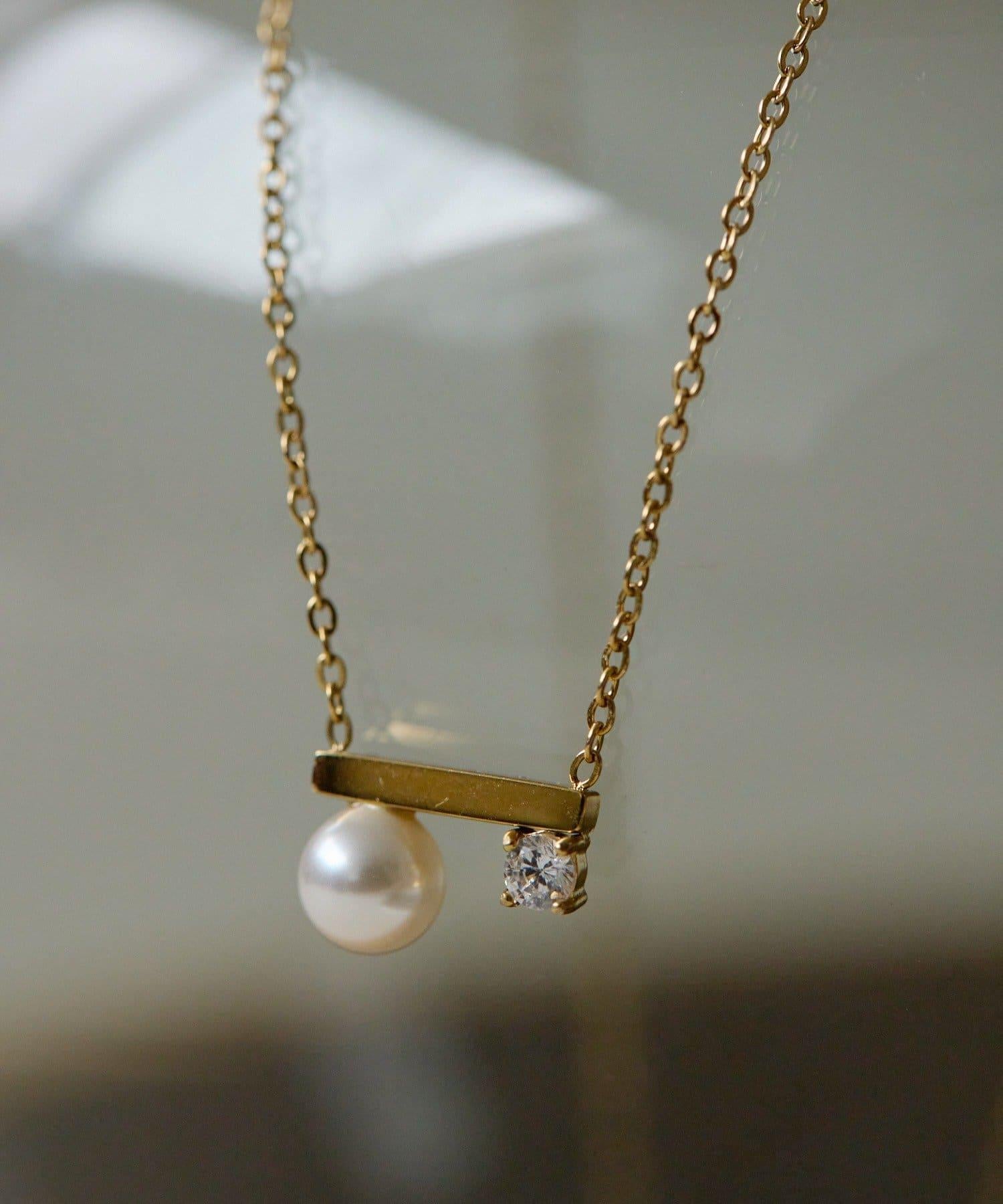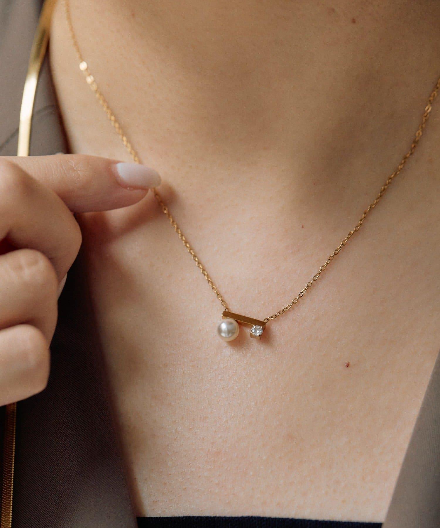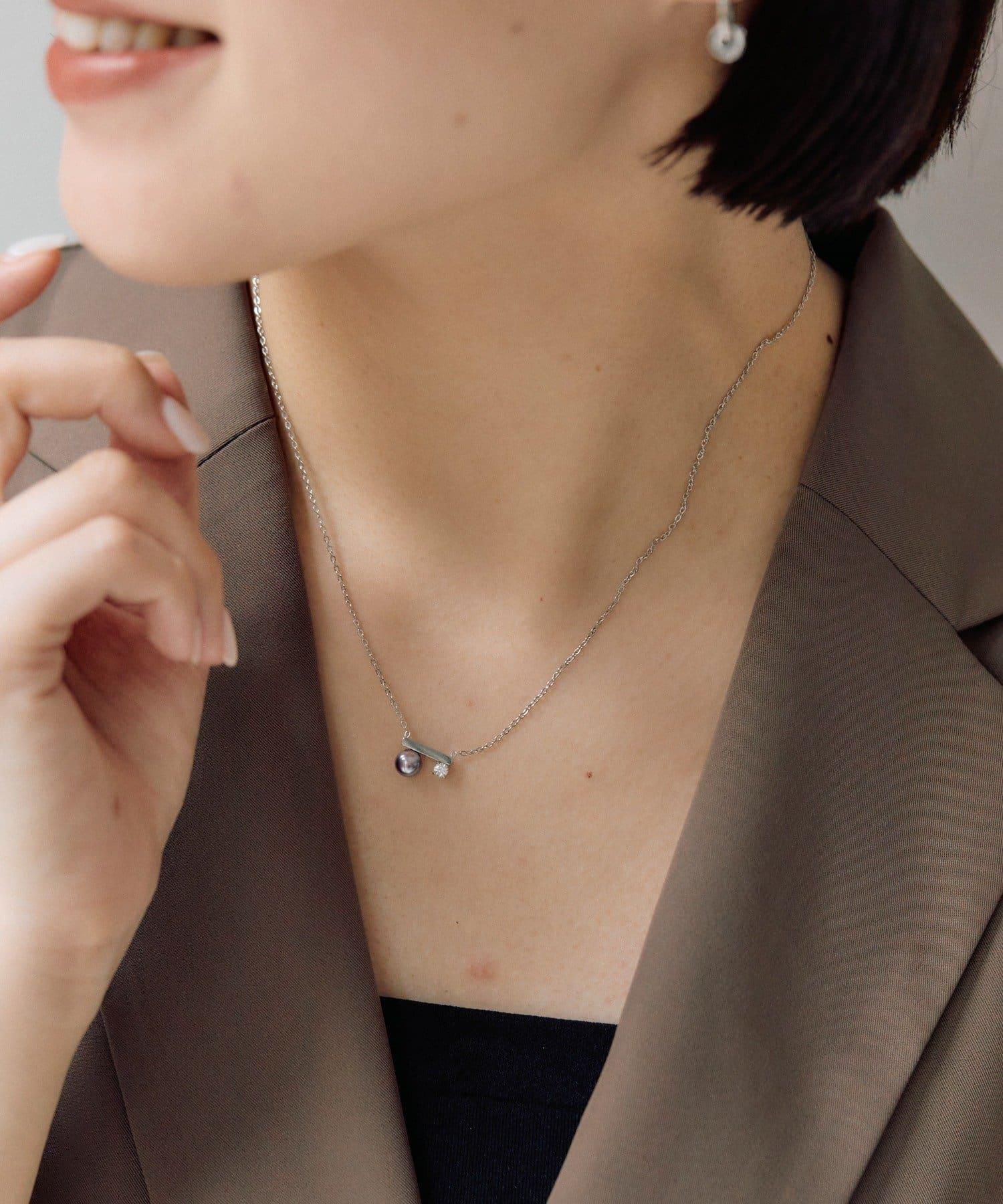 金屬過敏適用/不鏽鋼 珍珠×水晶項鍊