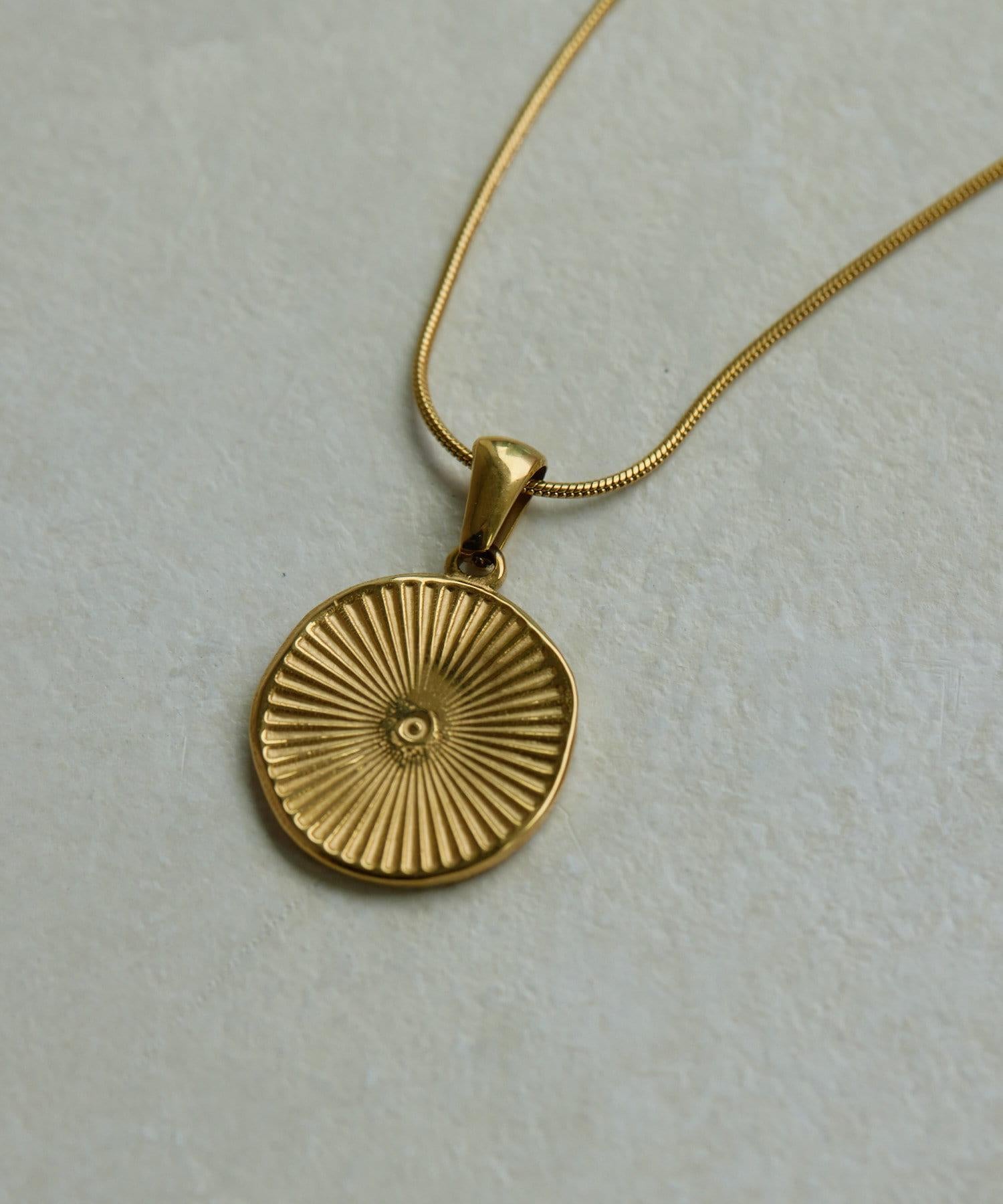 項鍊上的硬幣造型略有變形。