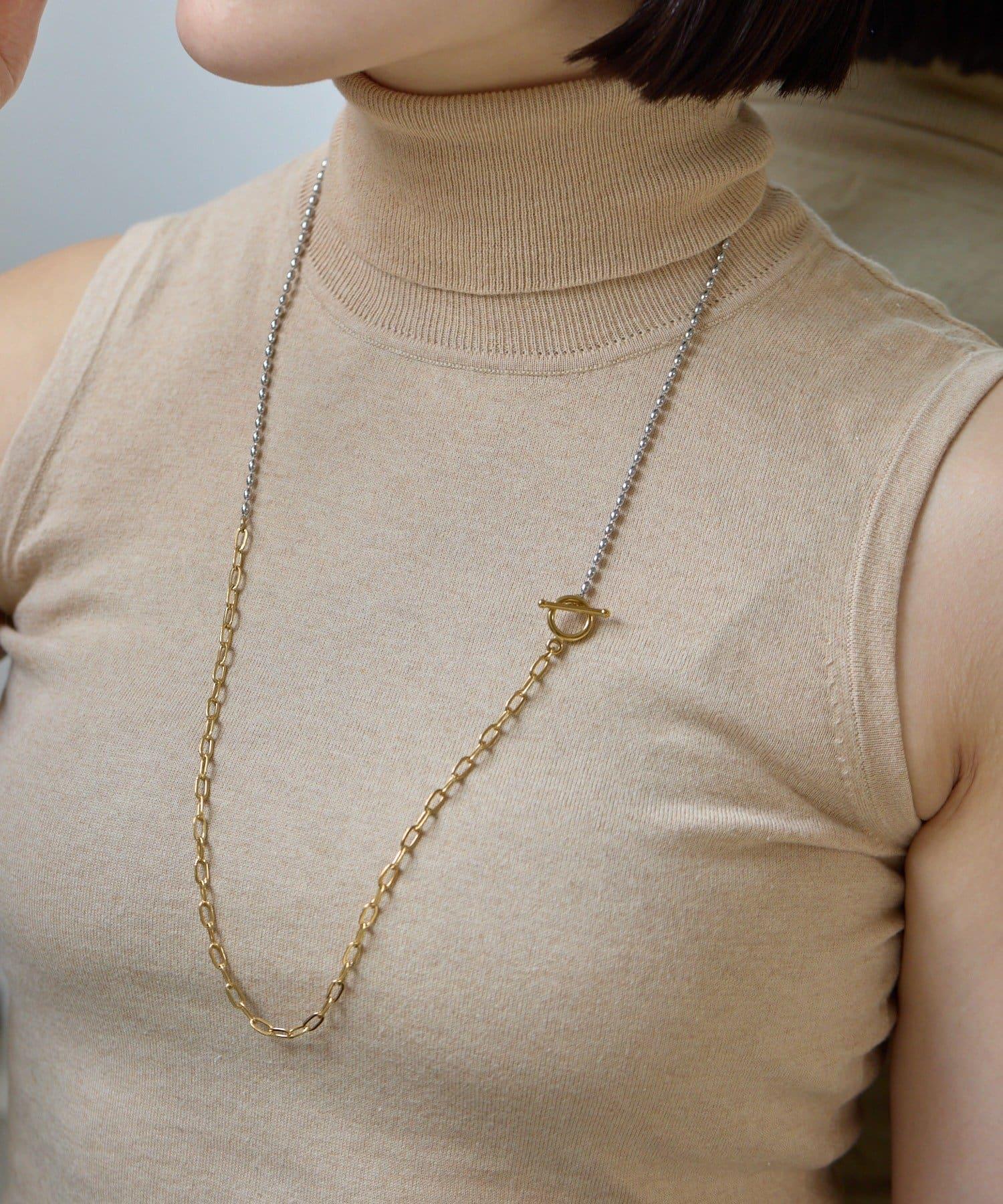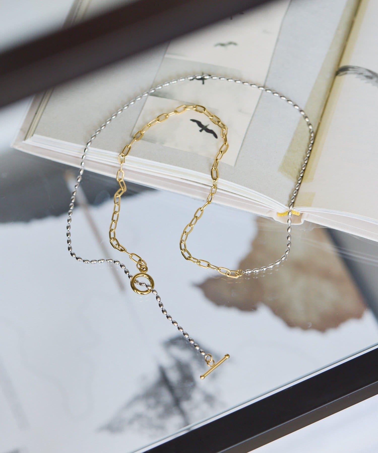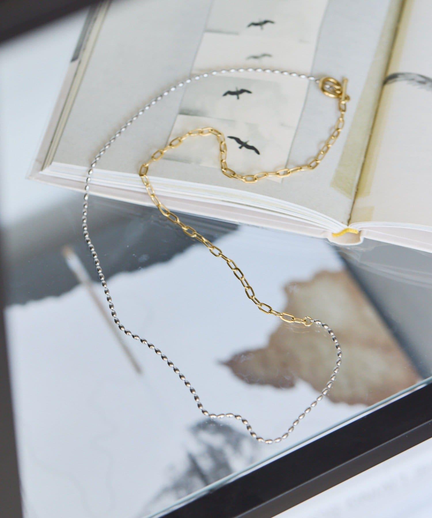 這條簡單的項鍊由兩種不同類型的鏈條組合而成,雙色搭配。