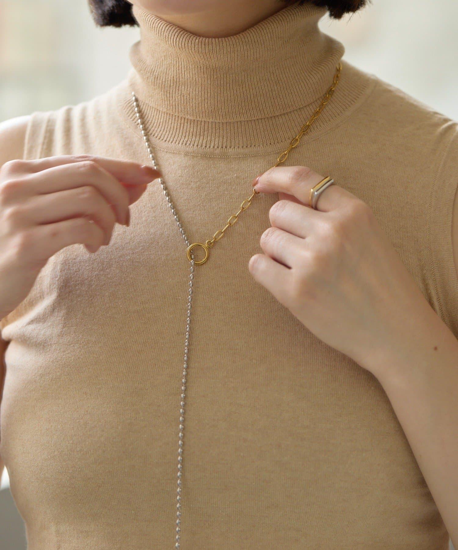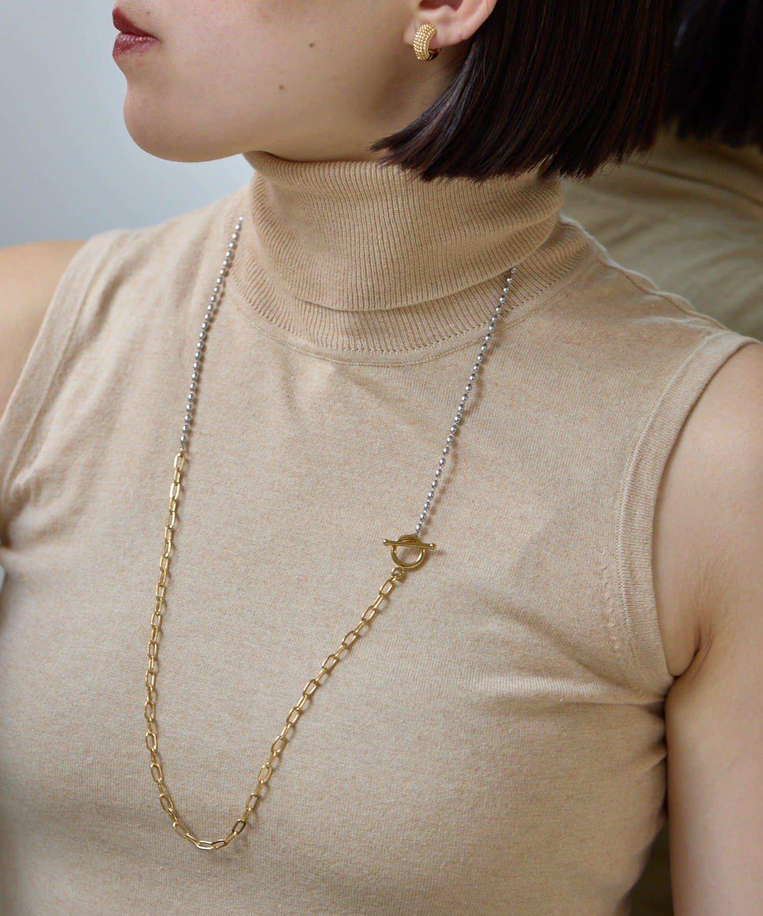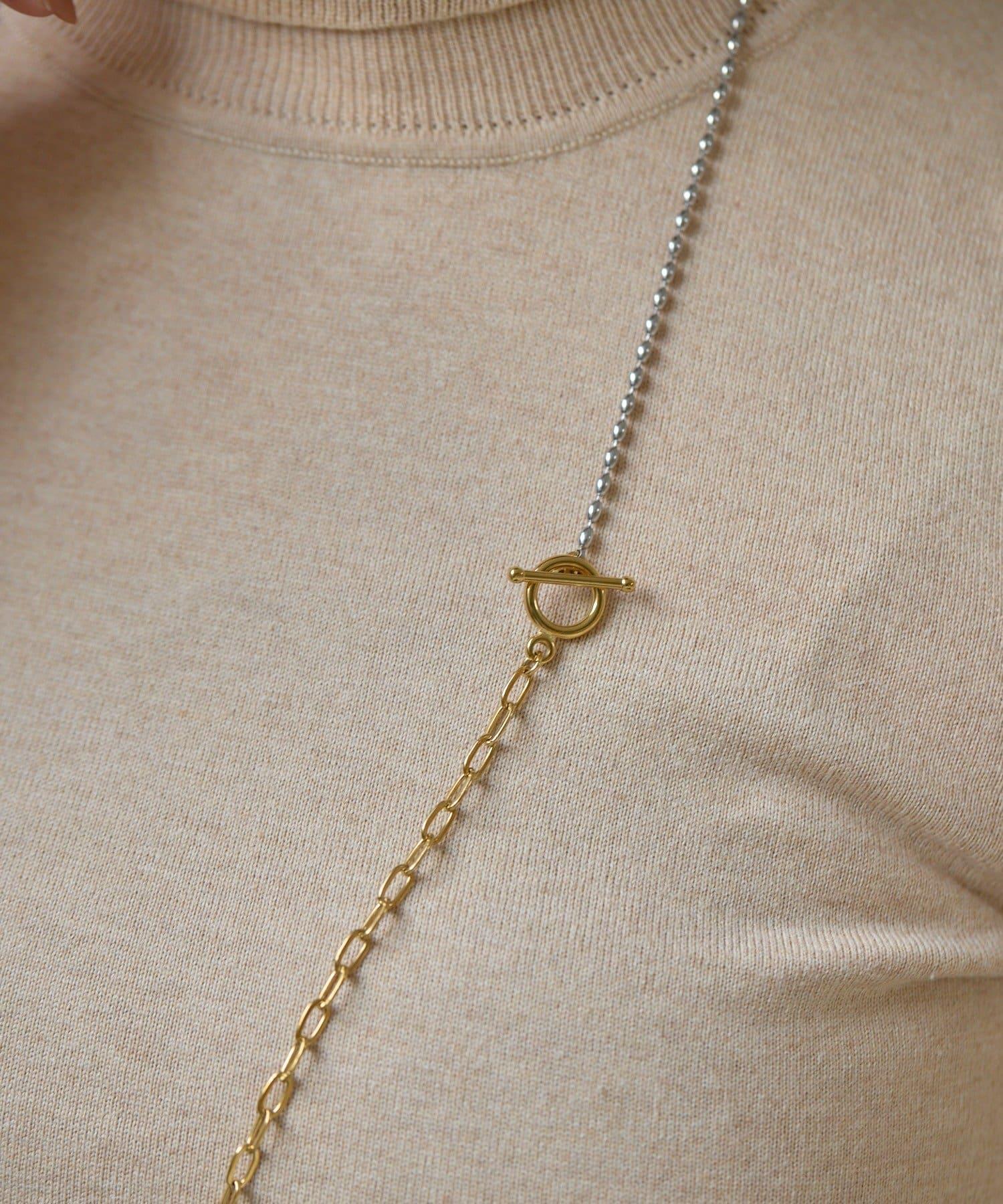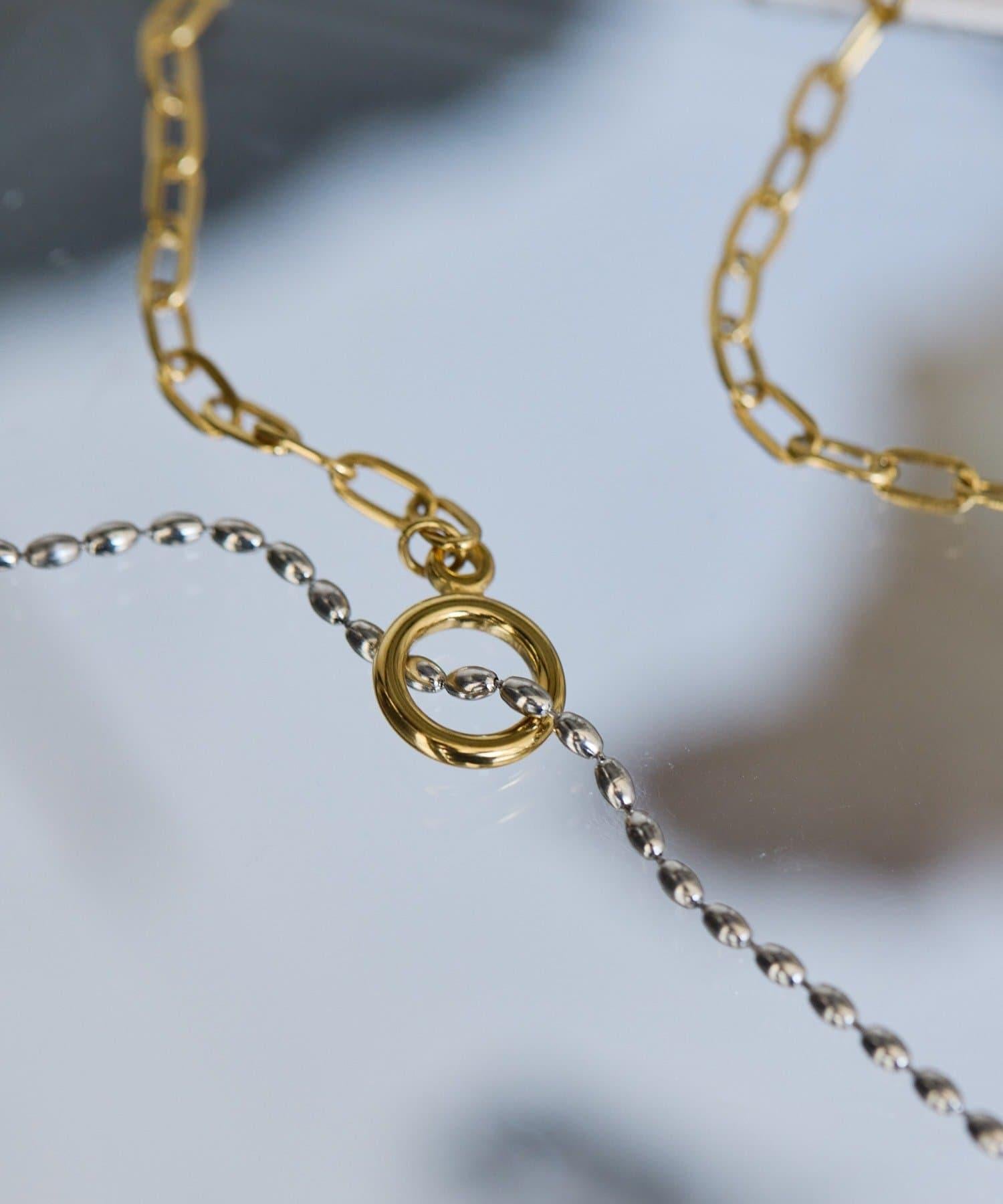 這條簡單的項鍊由兩種不同類型的鏈條組合而成,雙色搭配。
