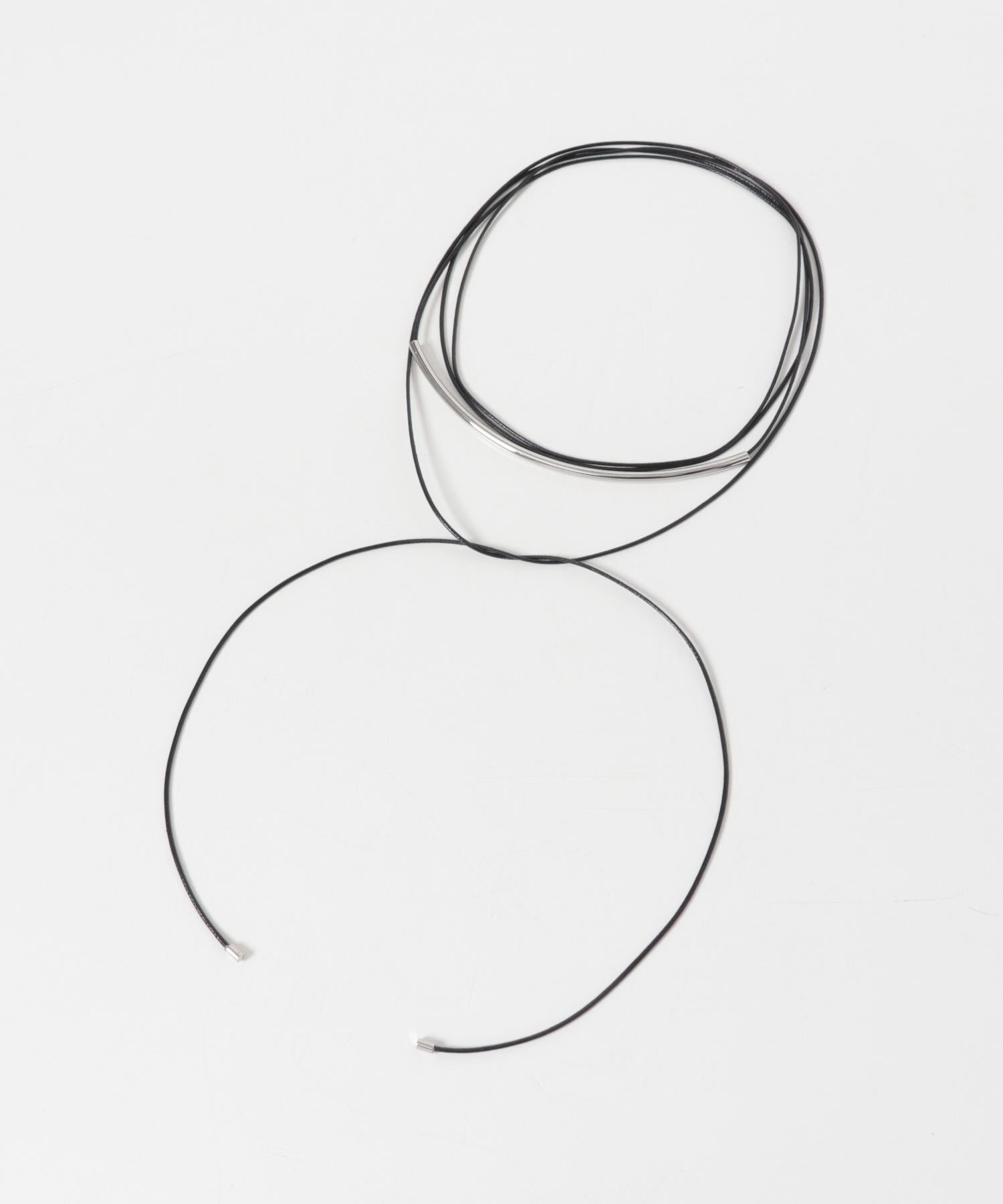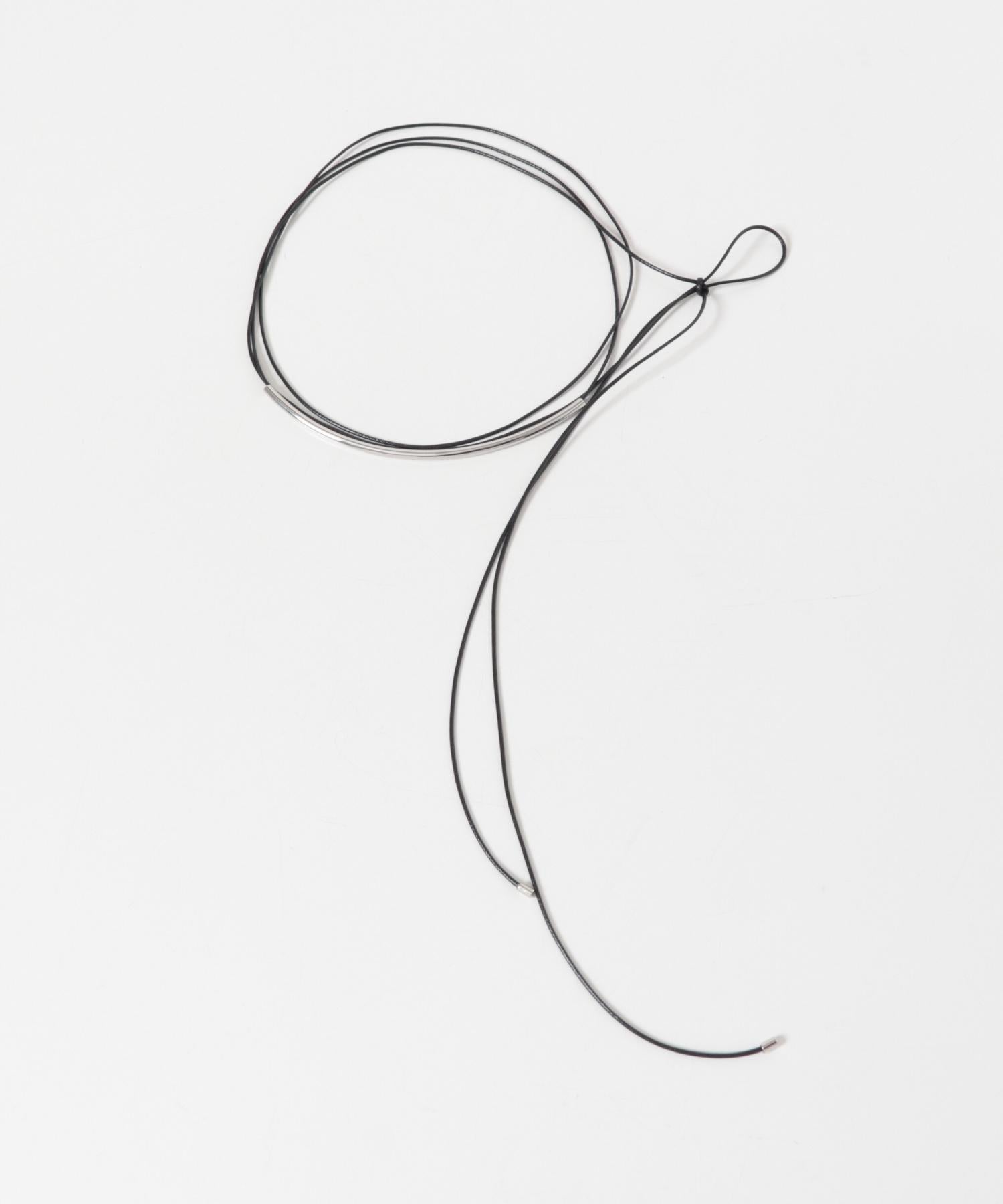 這款手鍊將弧度柔和的銀色金屬條與纖細的黑色長繩相結合。