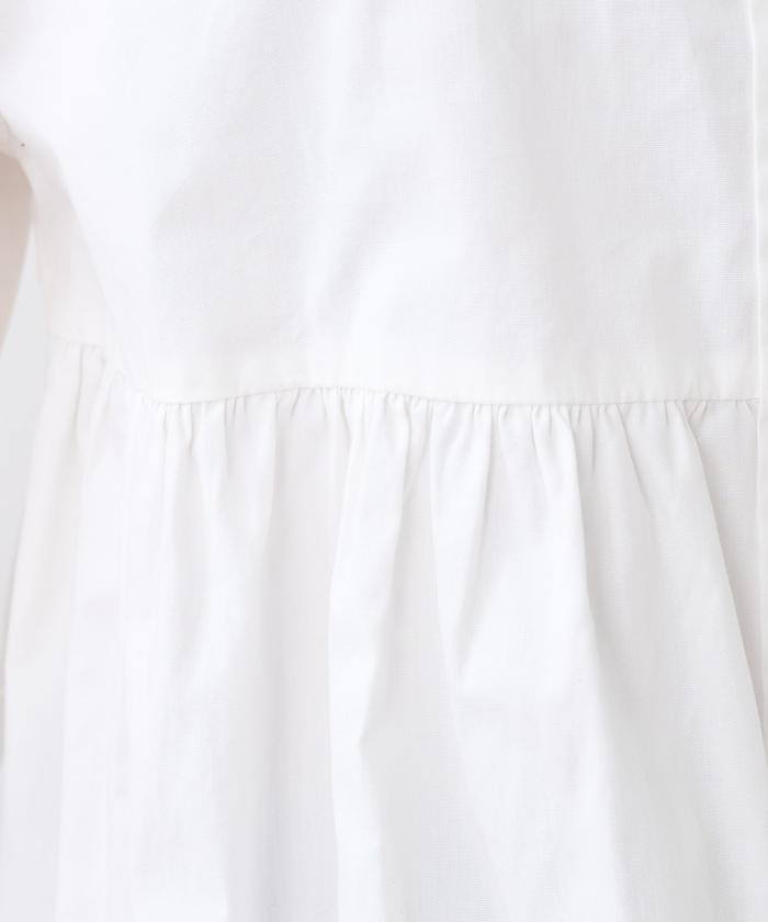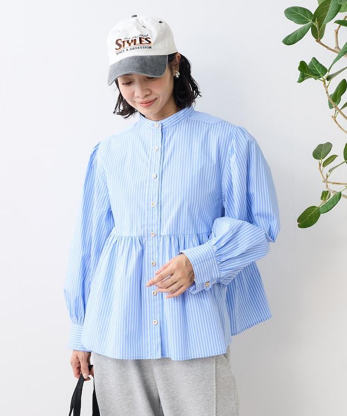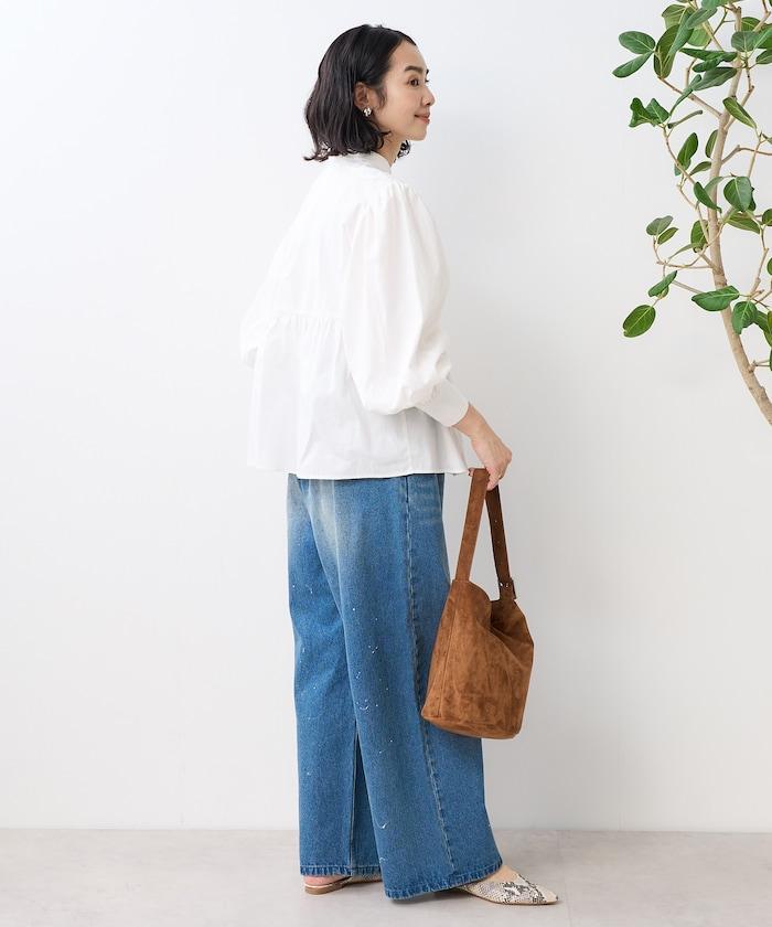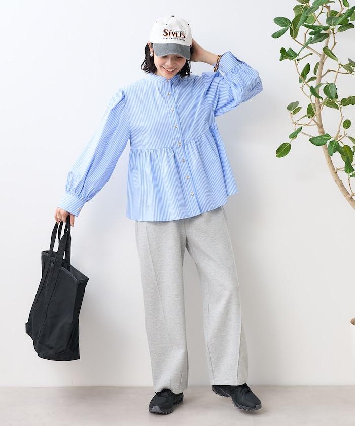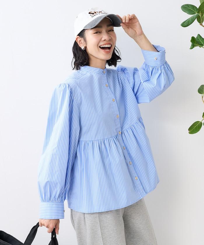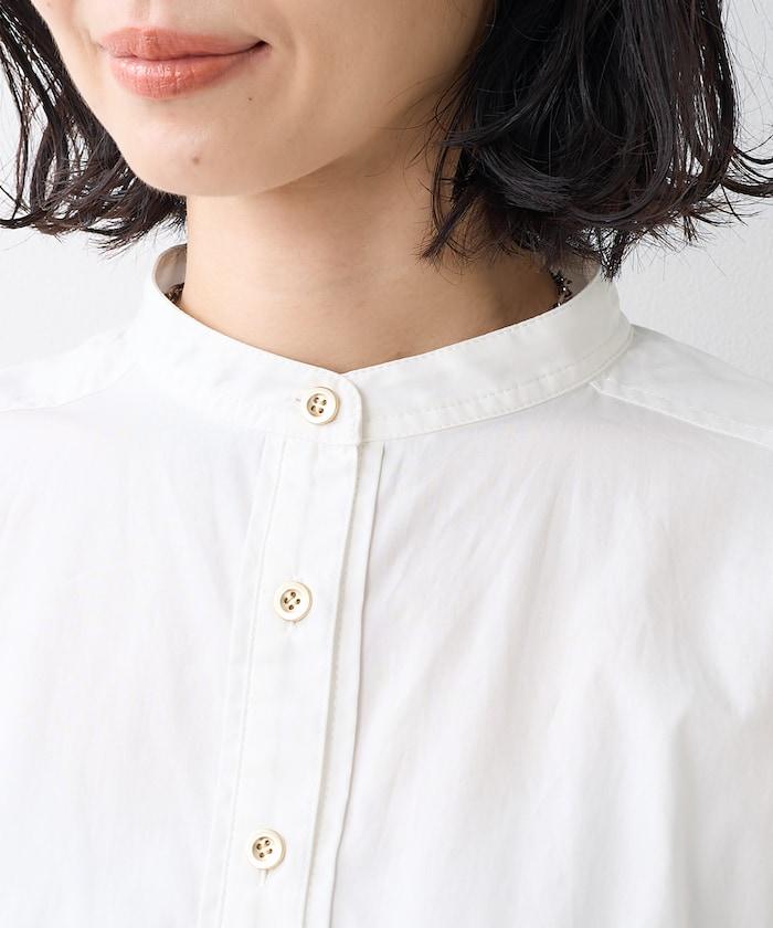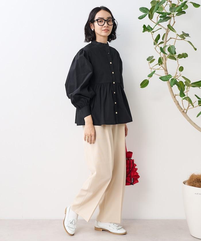這是一款均衡的上衣,採用聚攏的蓬袖設計和簡潔的無領設計。
