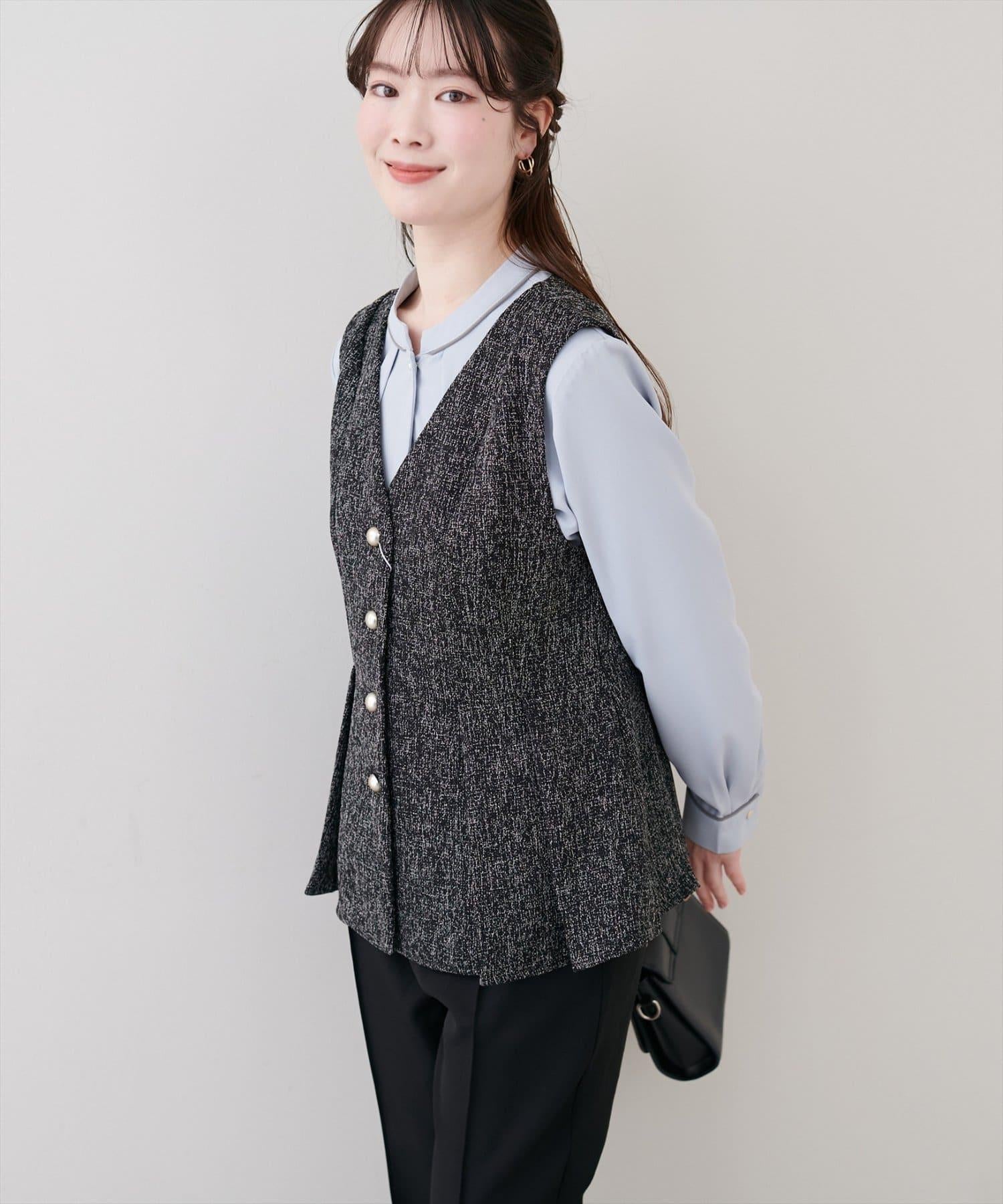 如果與同樣材質的下裝搭配,則會給人更精緻的印象。