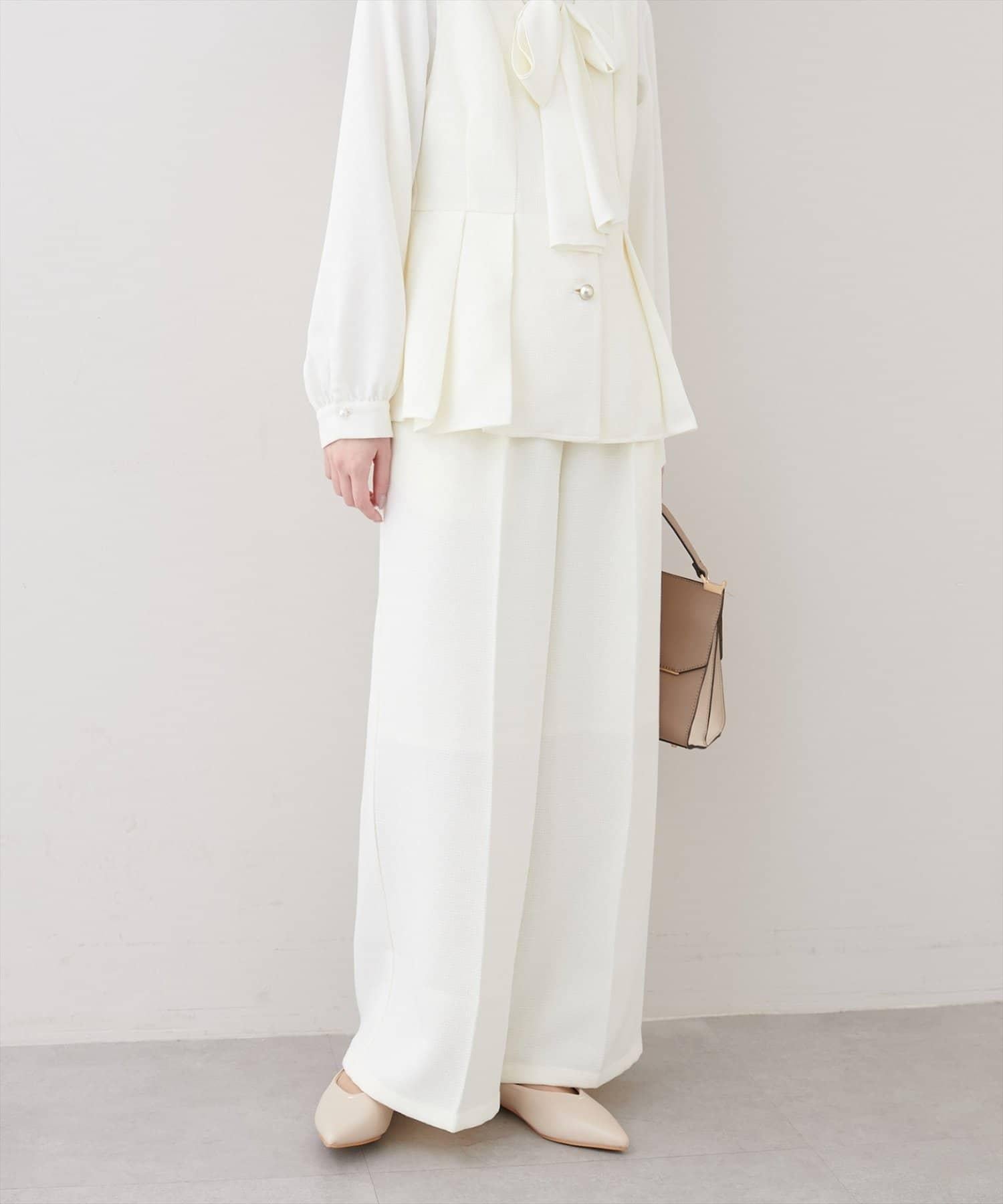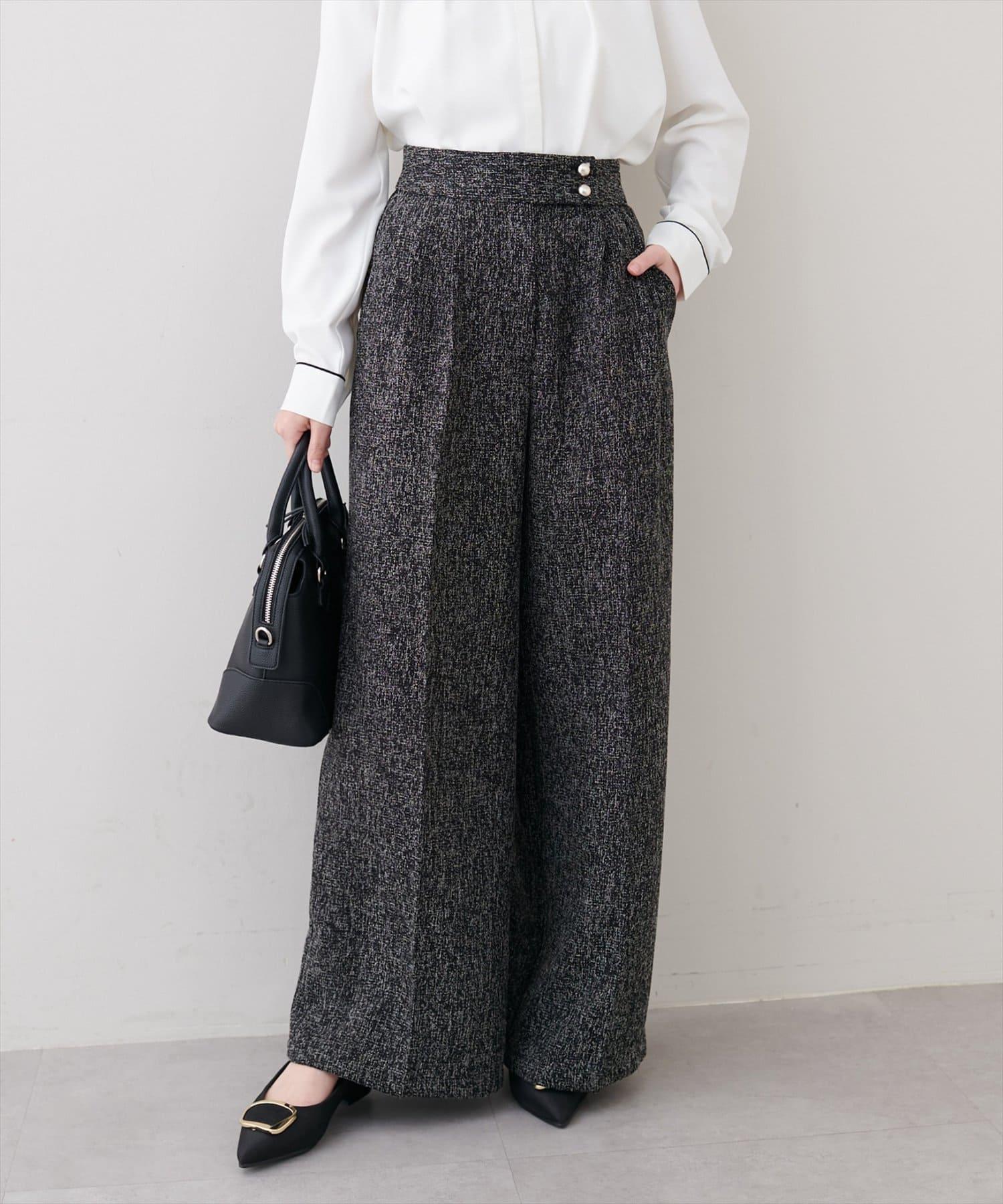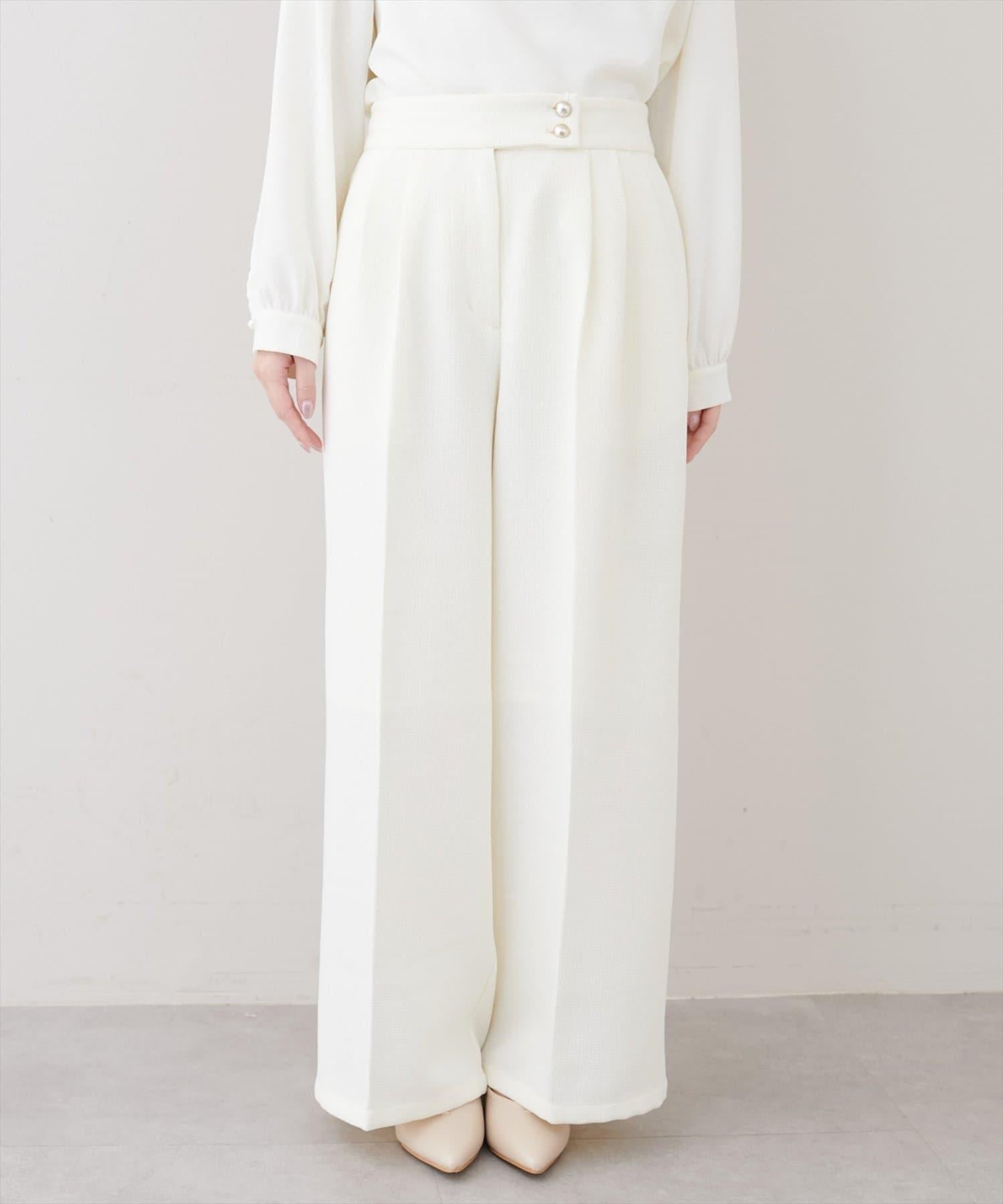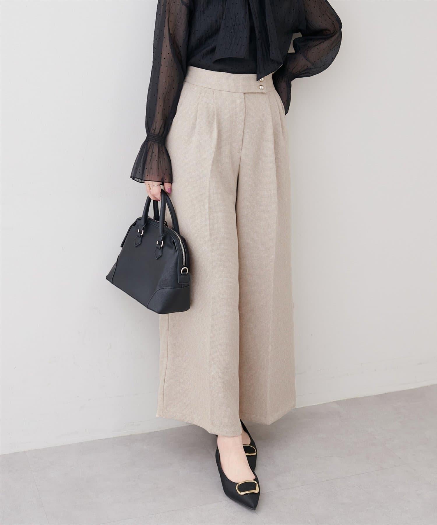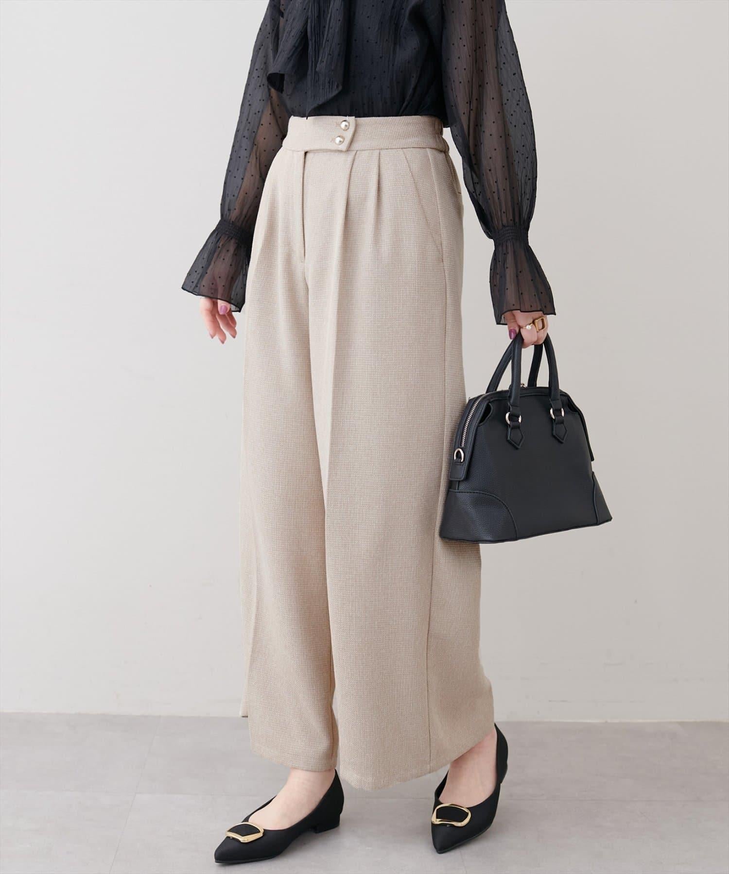 金扣褶襉闊腿褲