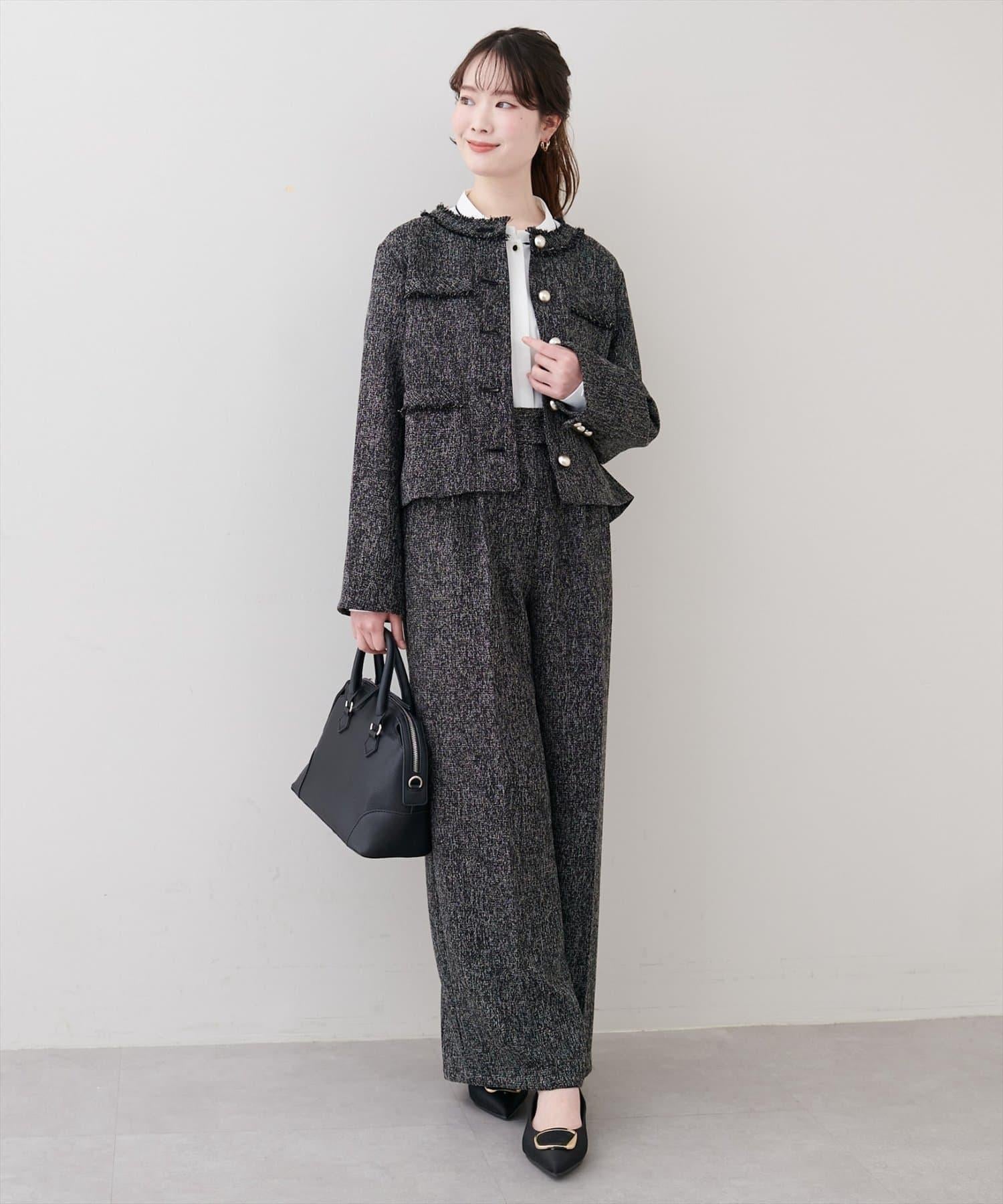 搭配相同材質的上衣,營造出精緻統一的套裝造型。