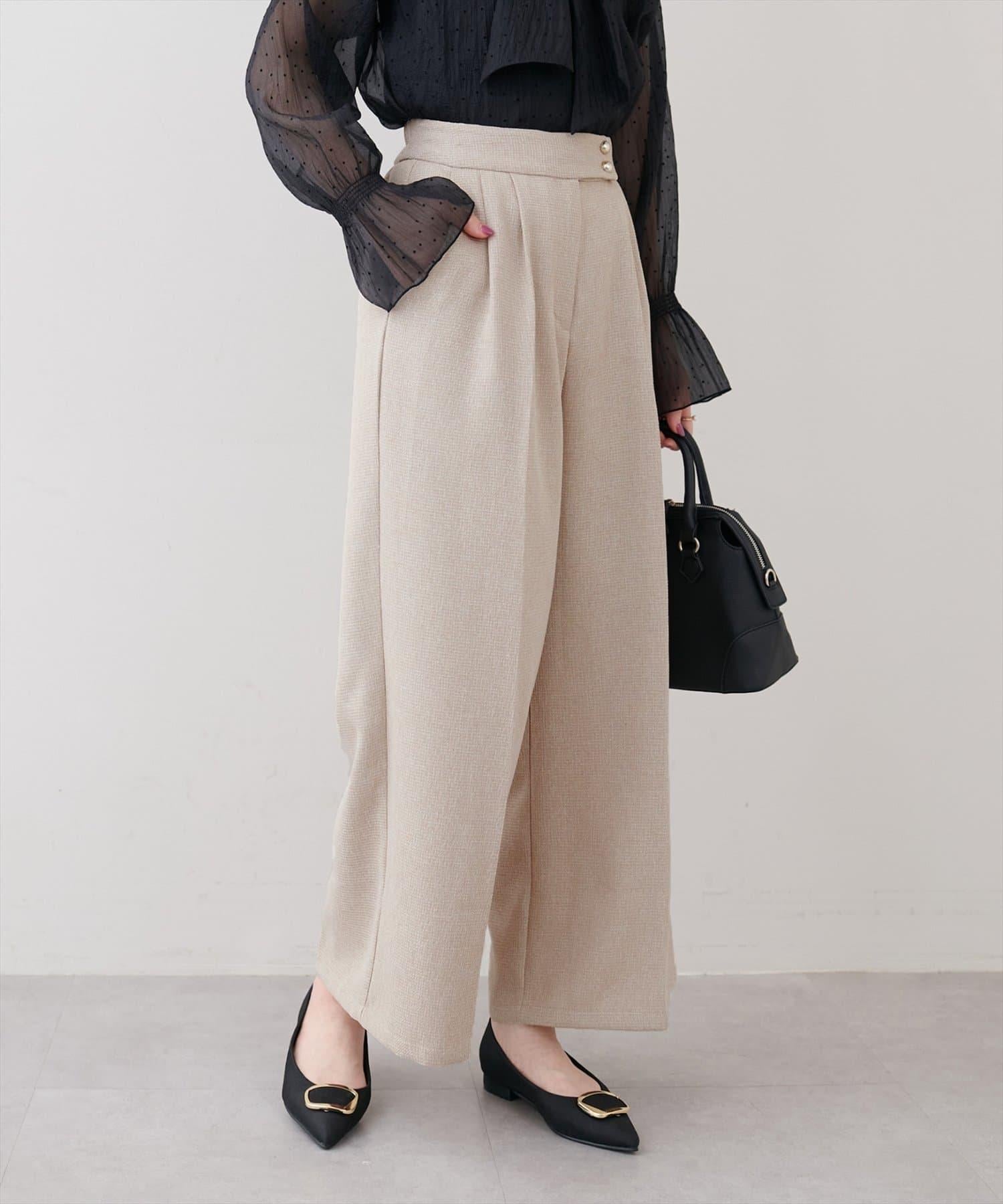 金色紐扣褶襉寬長褲