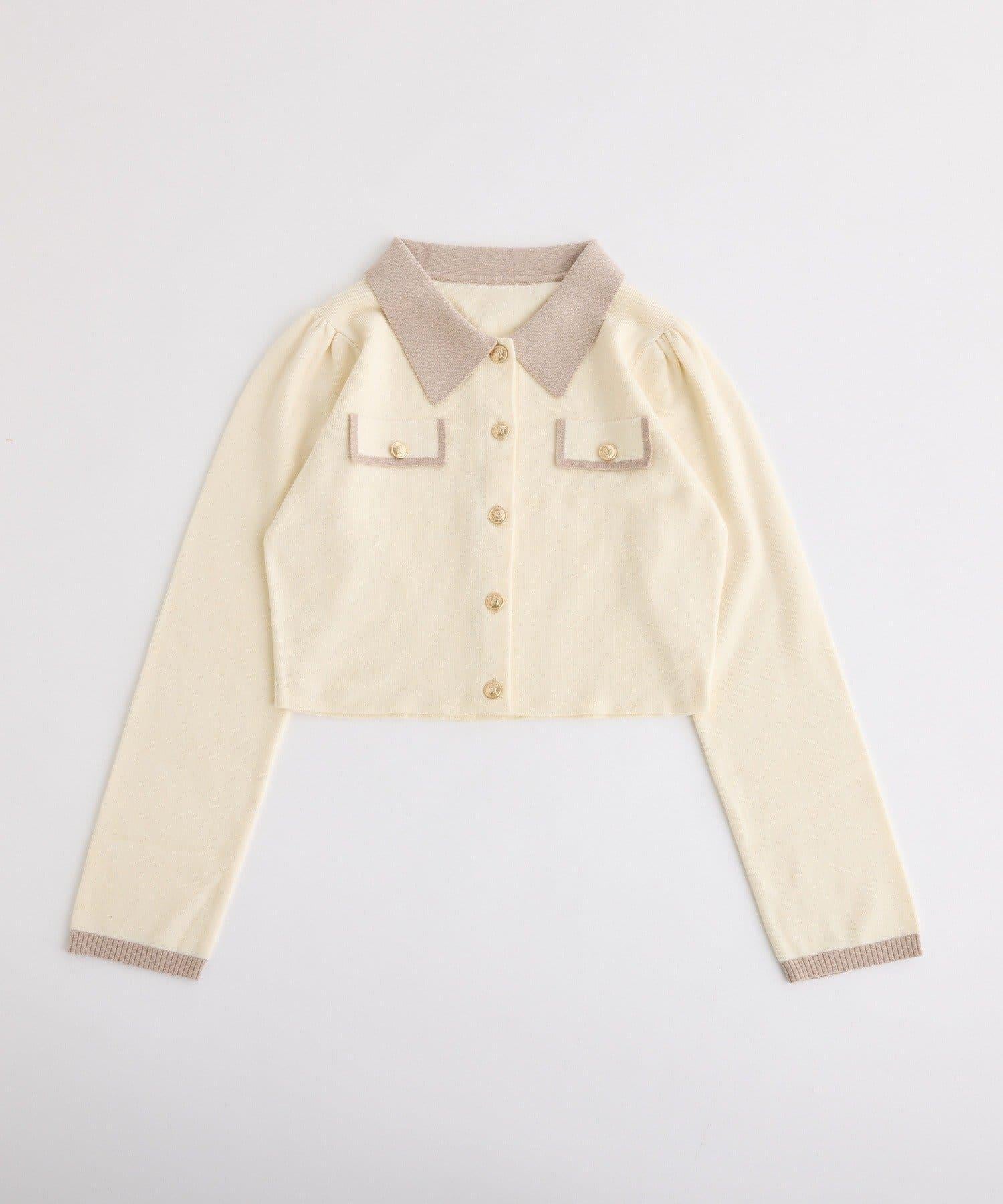 金色紐扣拼色領針織衫