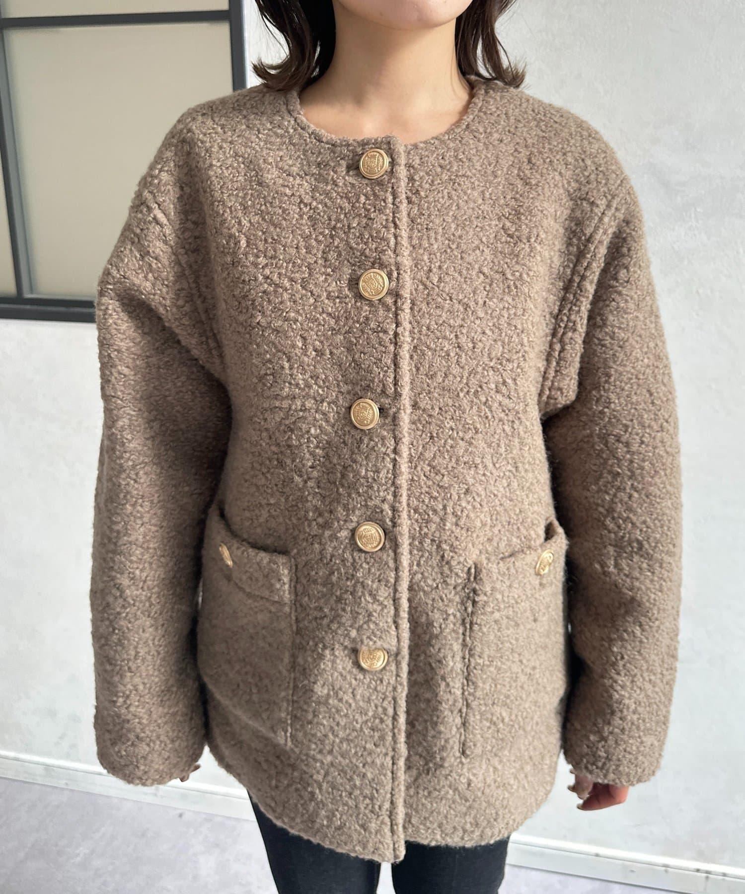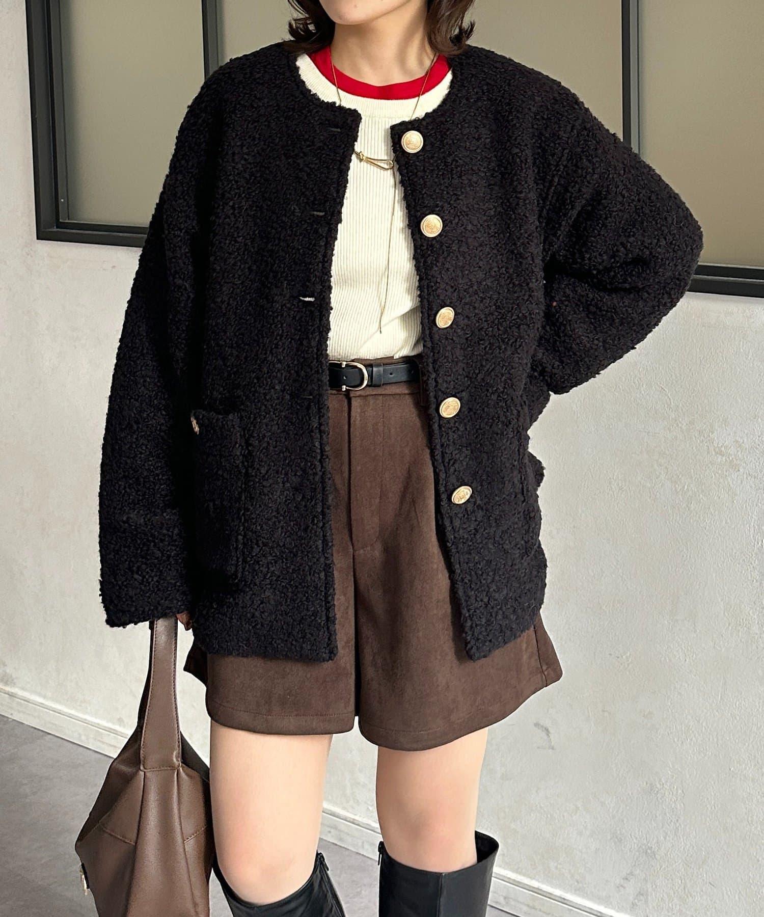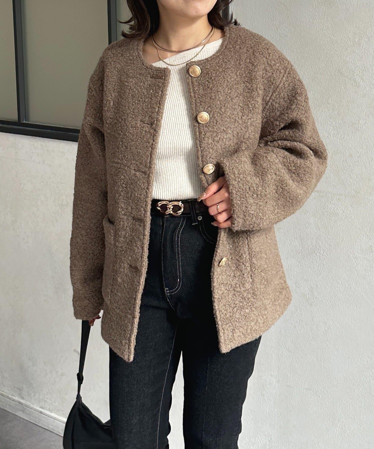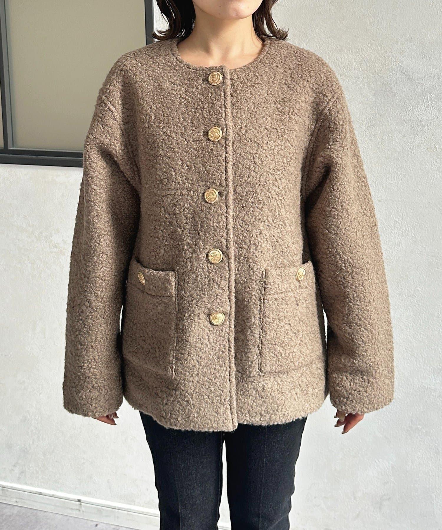 金色紐扣無領羊羔絨夾克