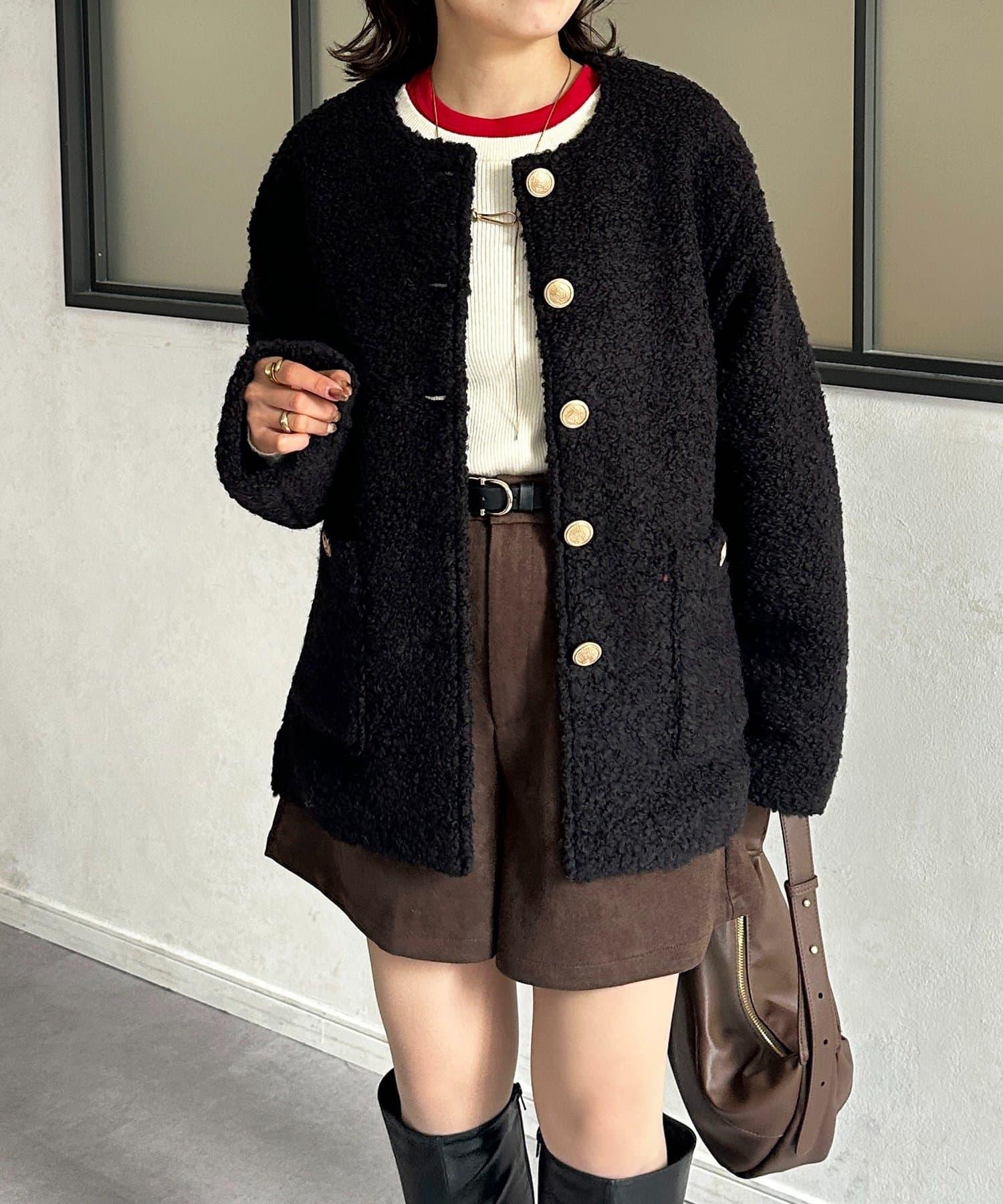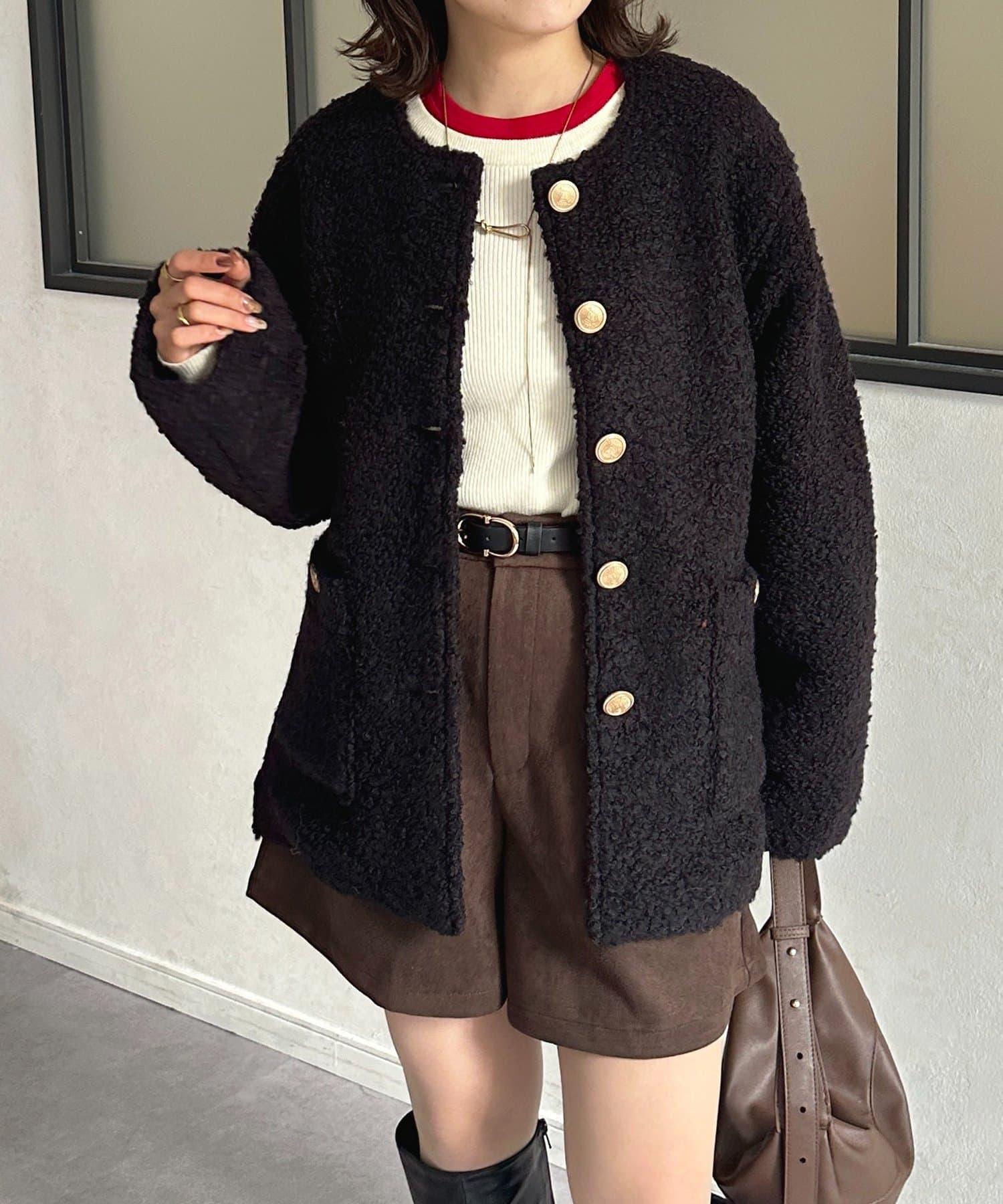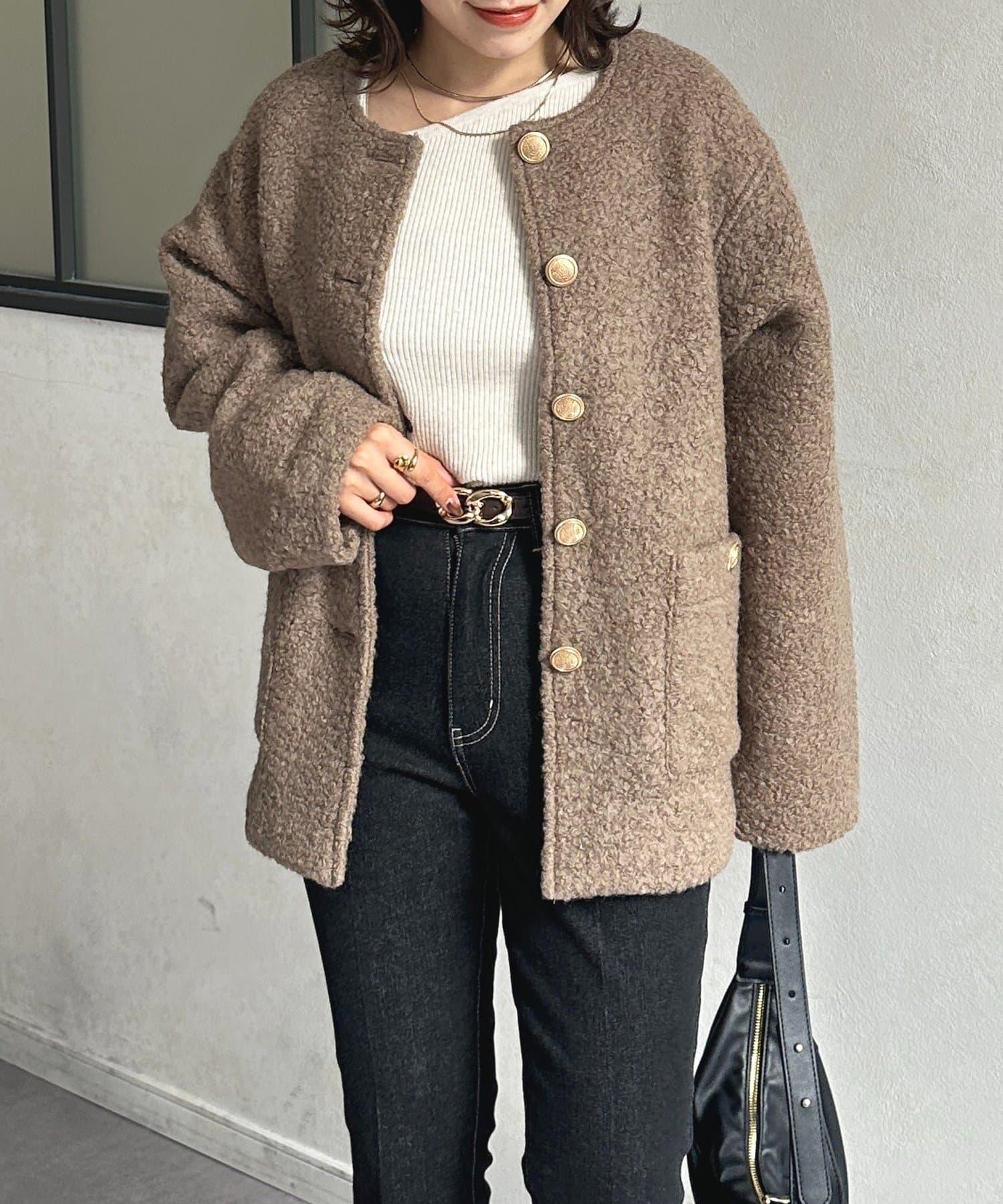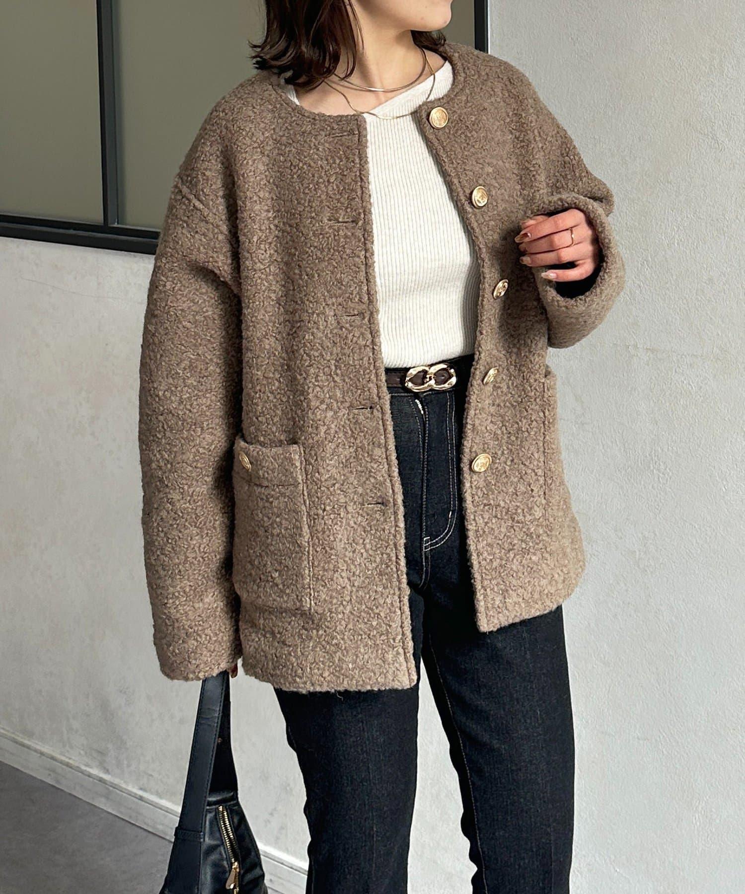 金色紐扣無領羊羔絨夾克