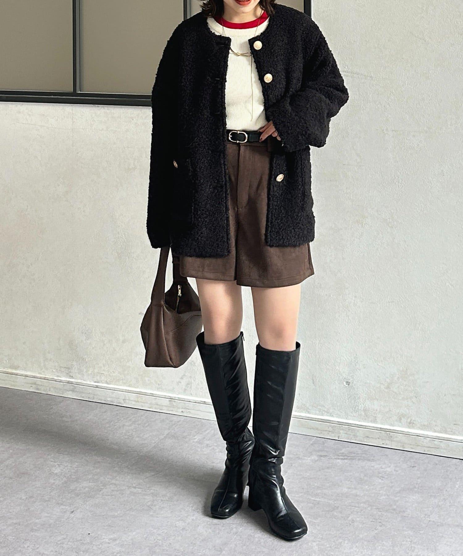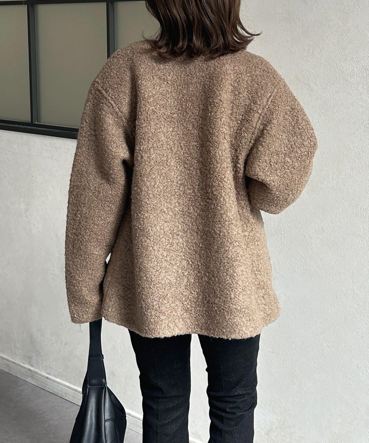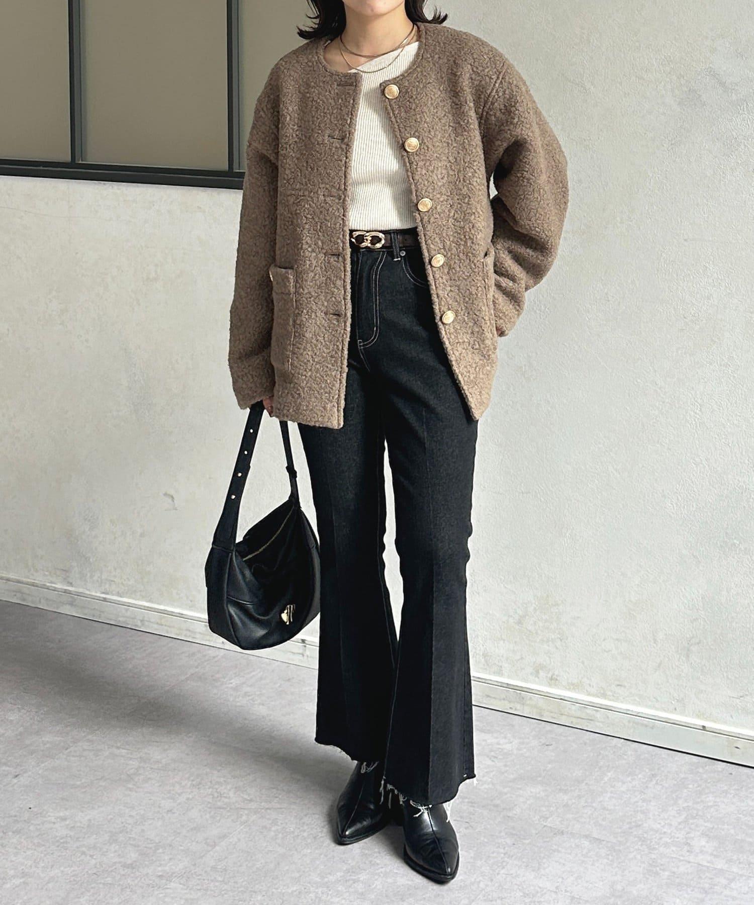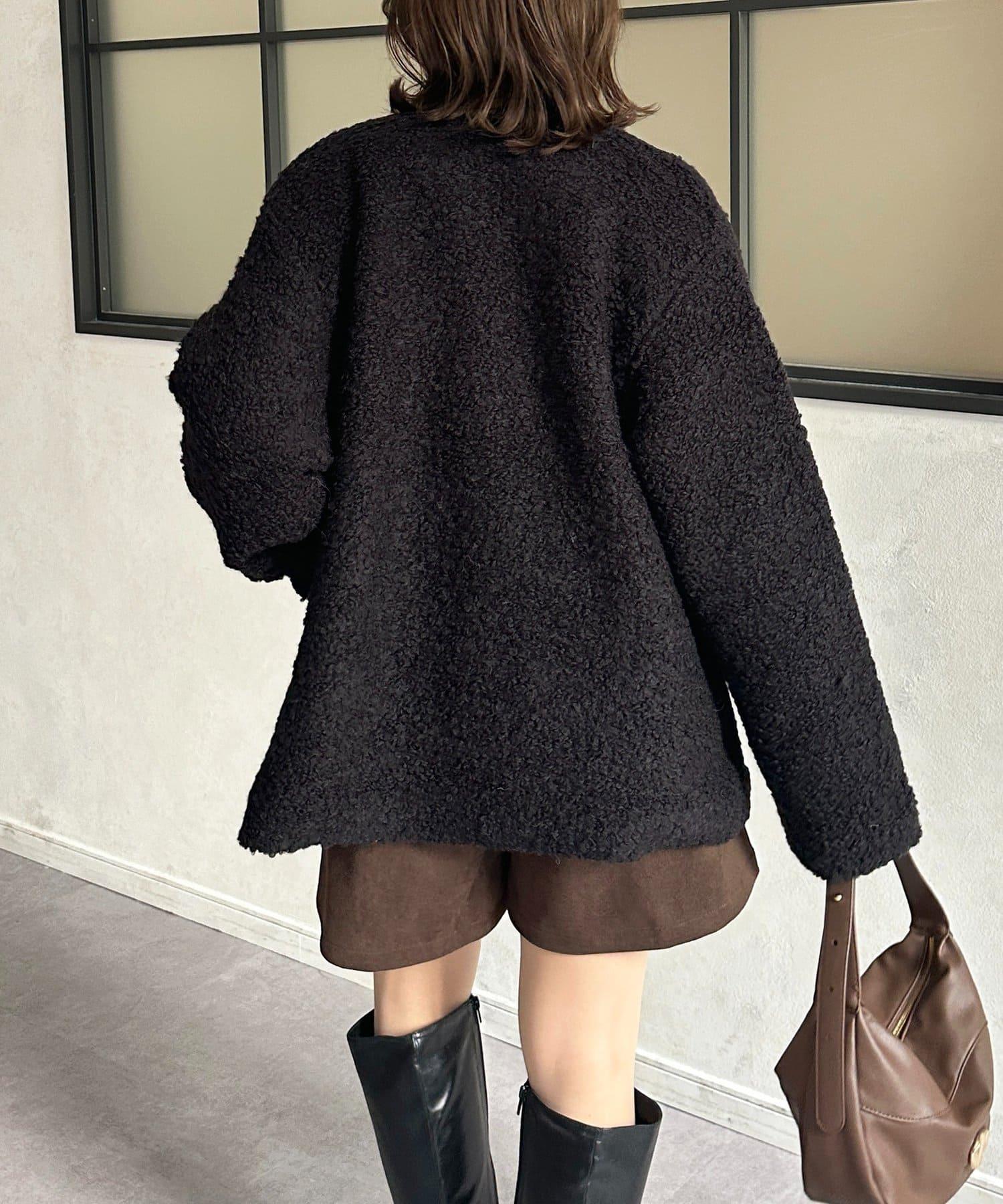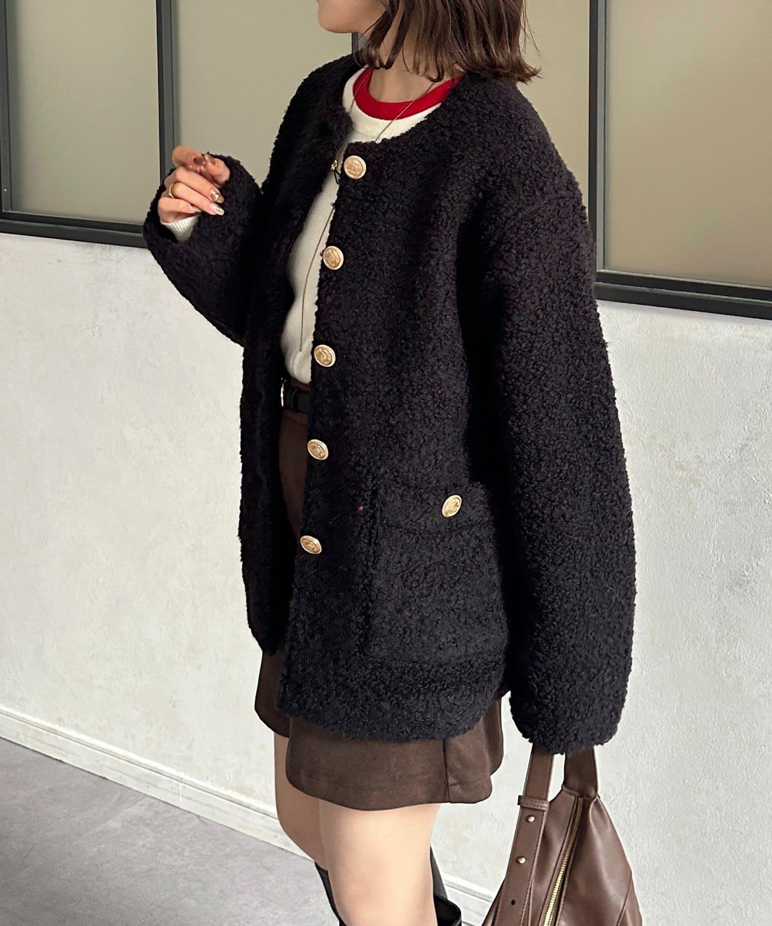 金色紐扣無領羊羔絨夾克
