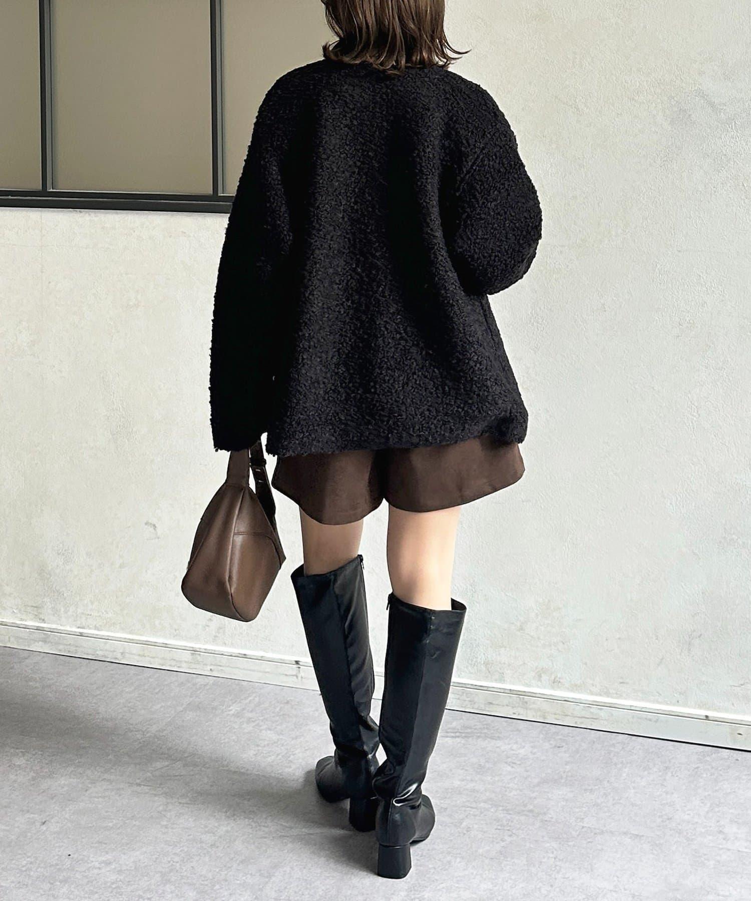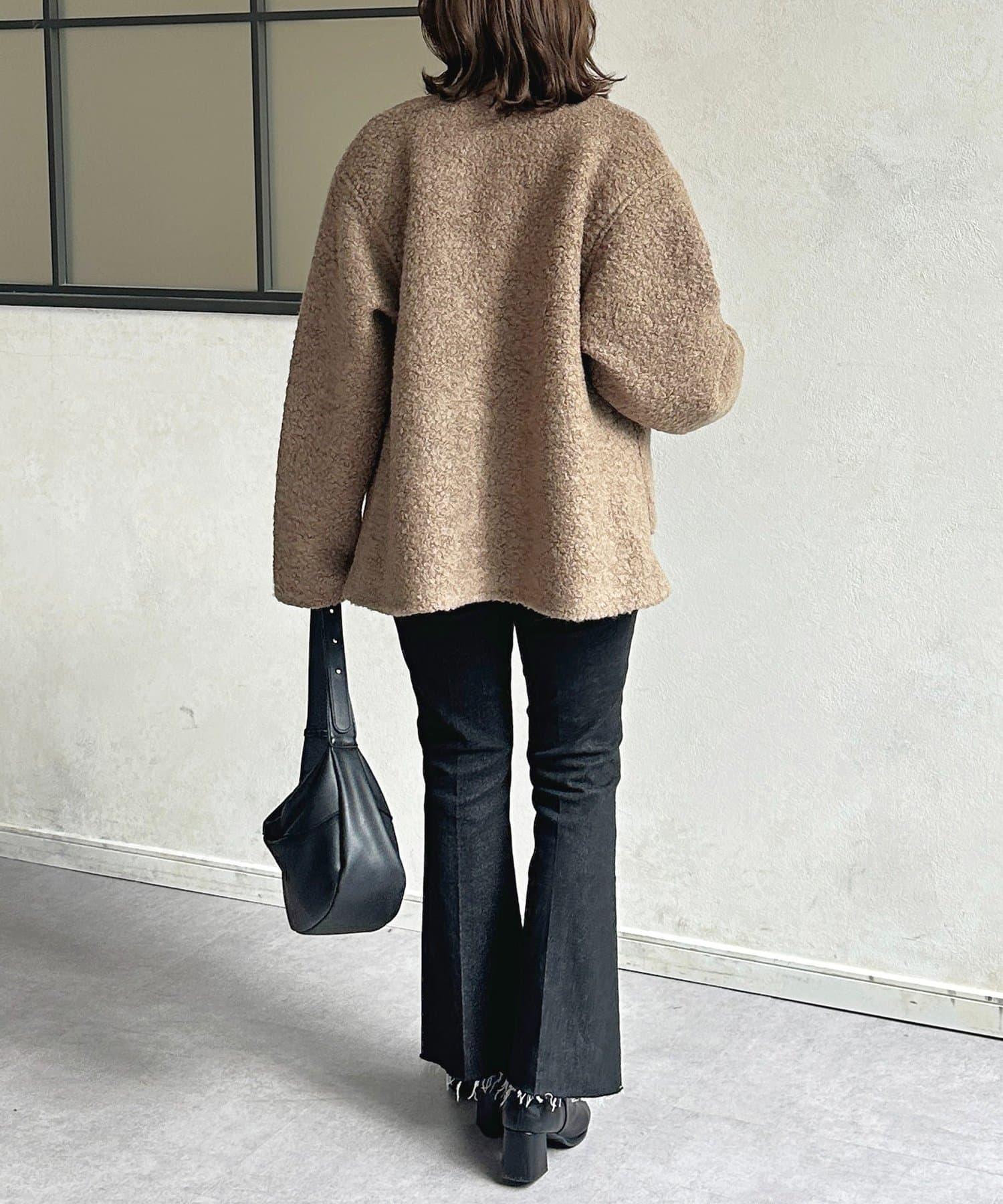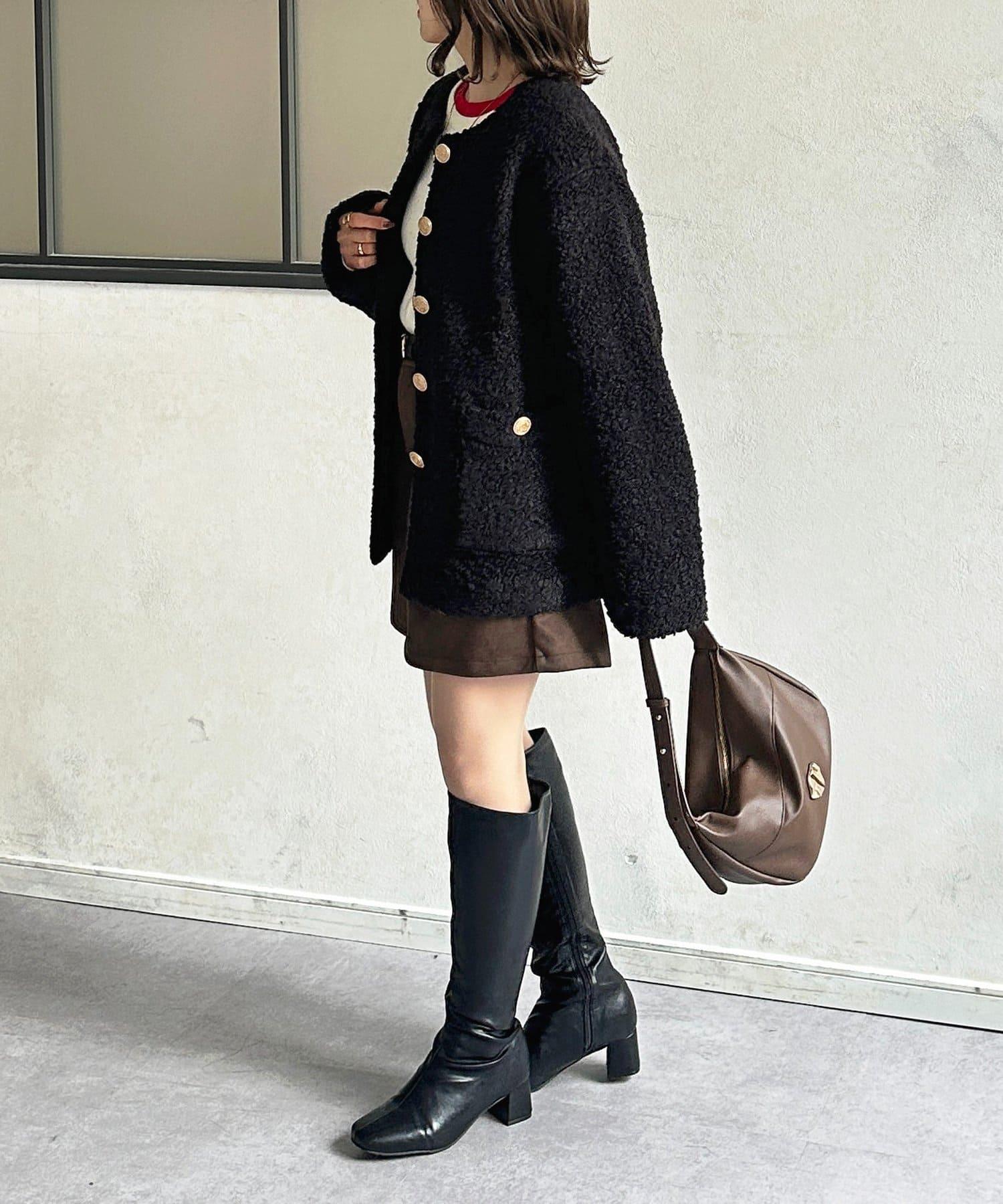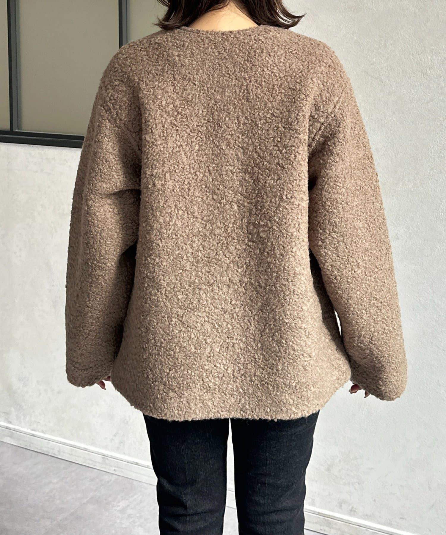 金色紐扣無領羊羔絨夾克