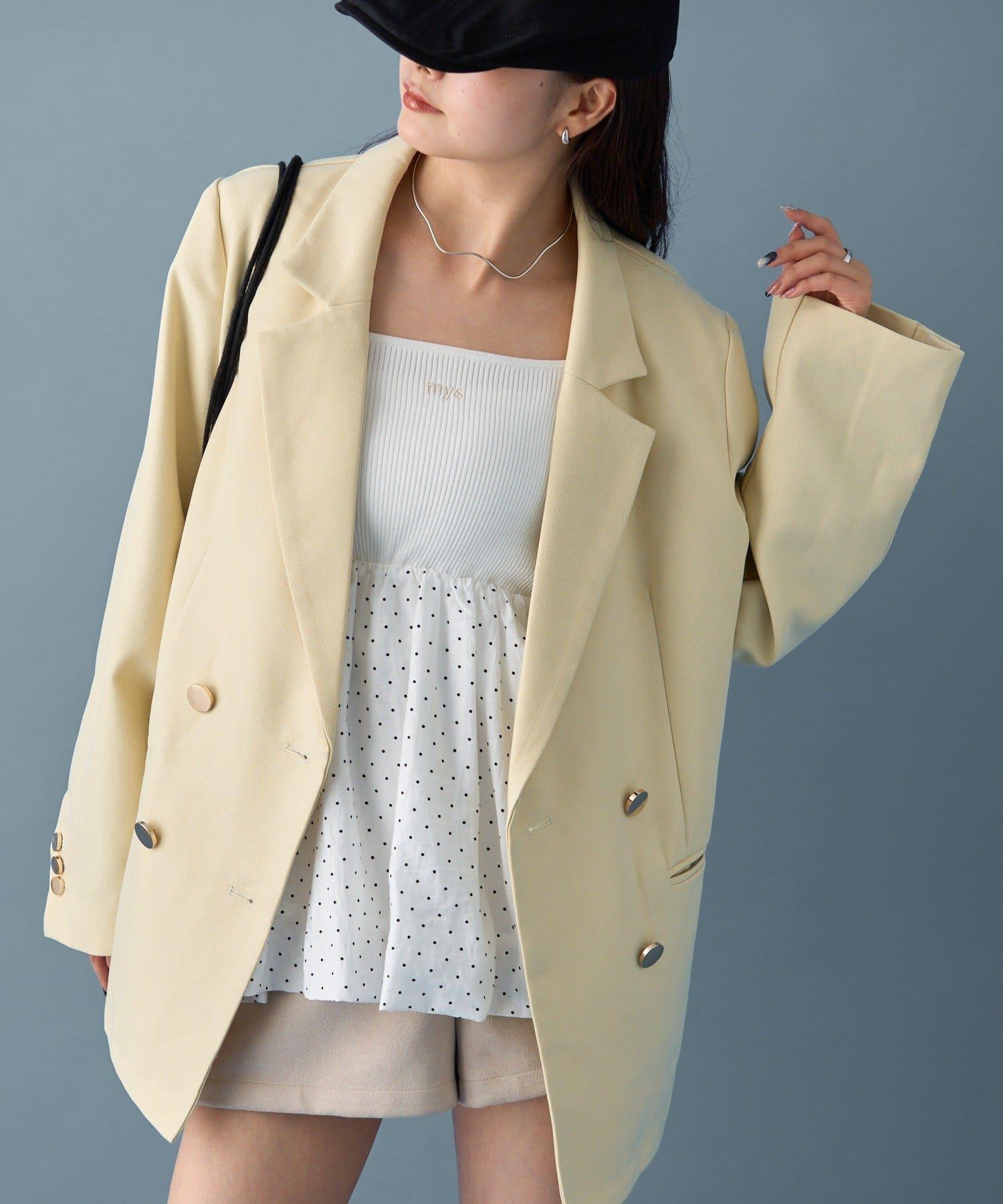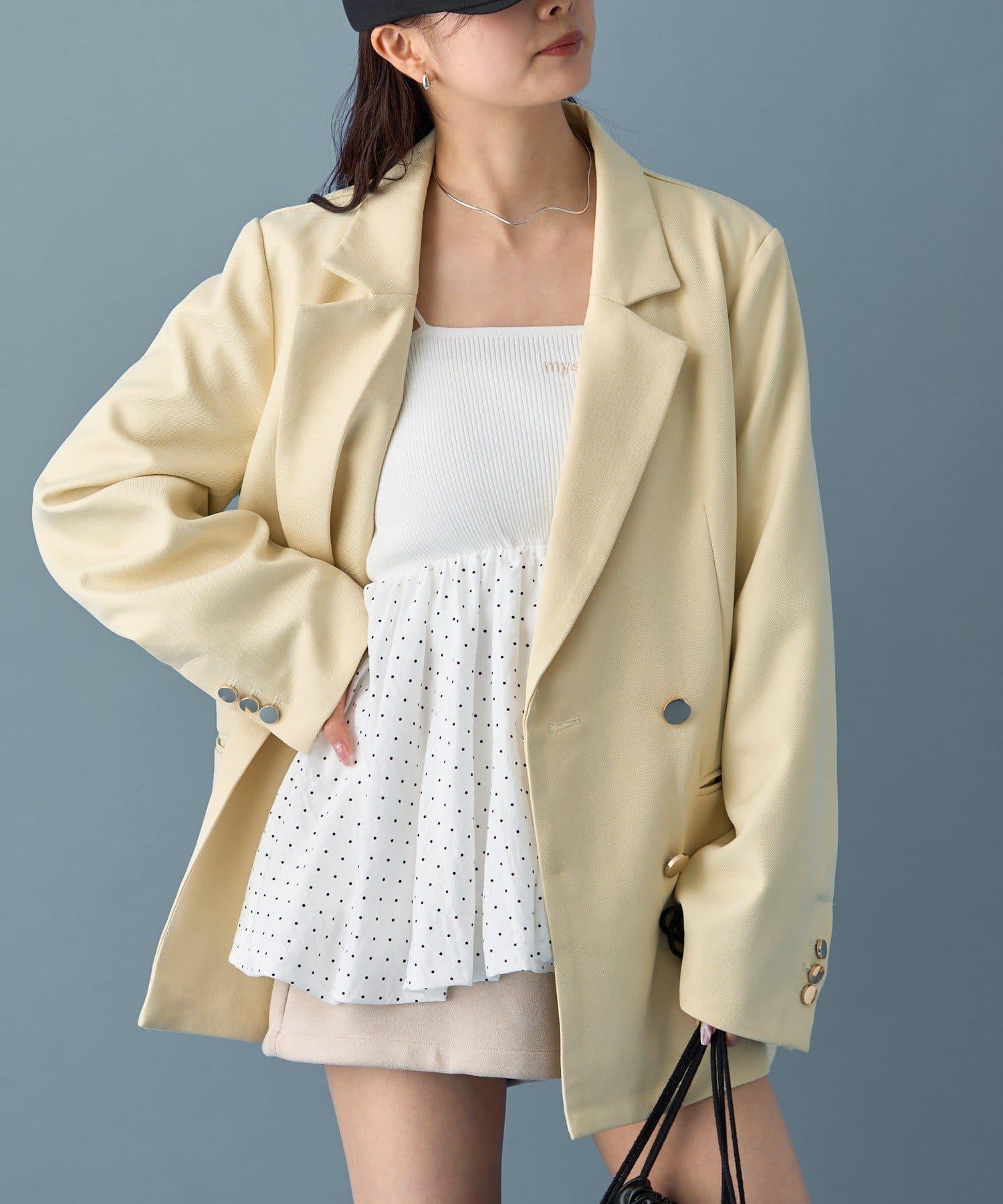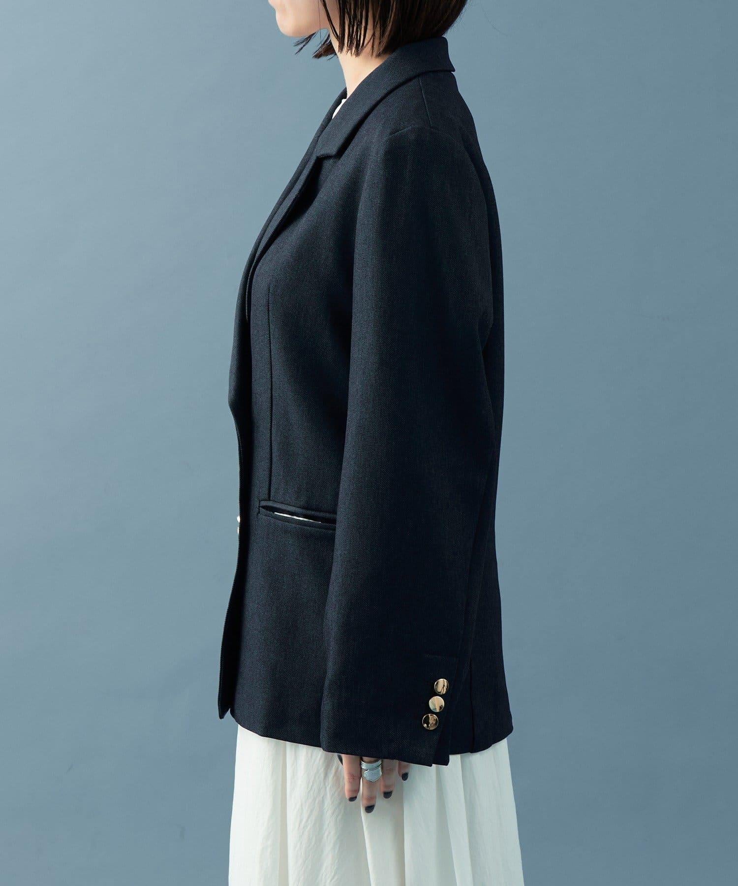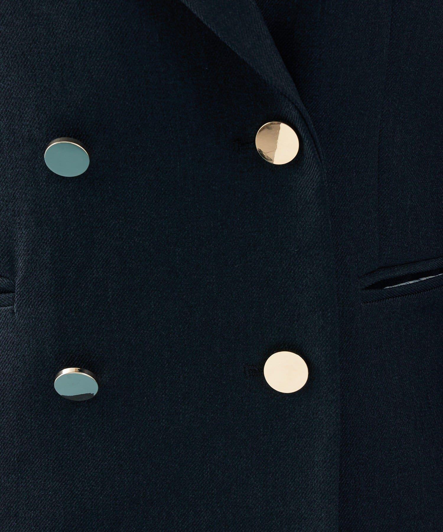 金色紐扣點綴著簡潔的外套,非常可愛!