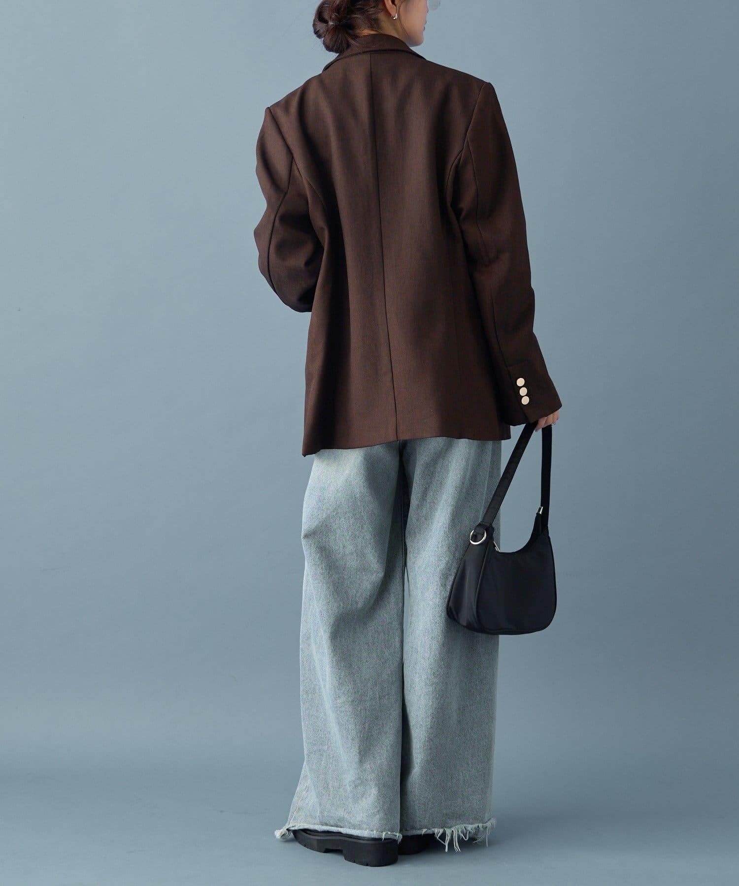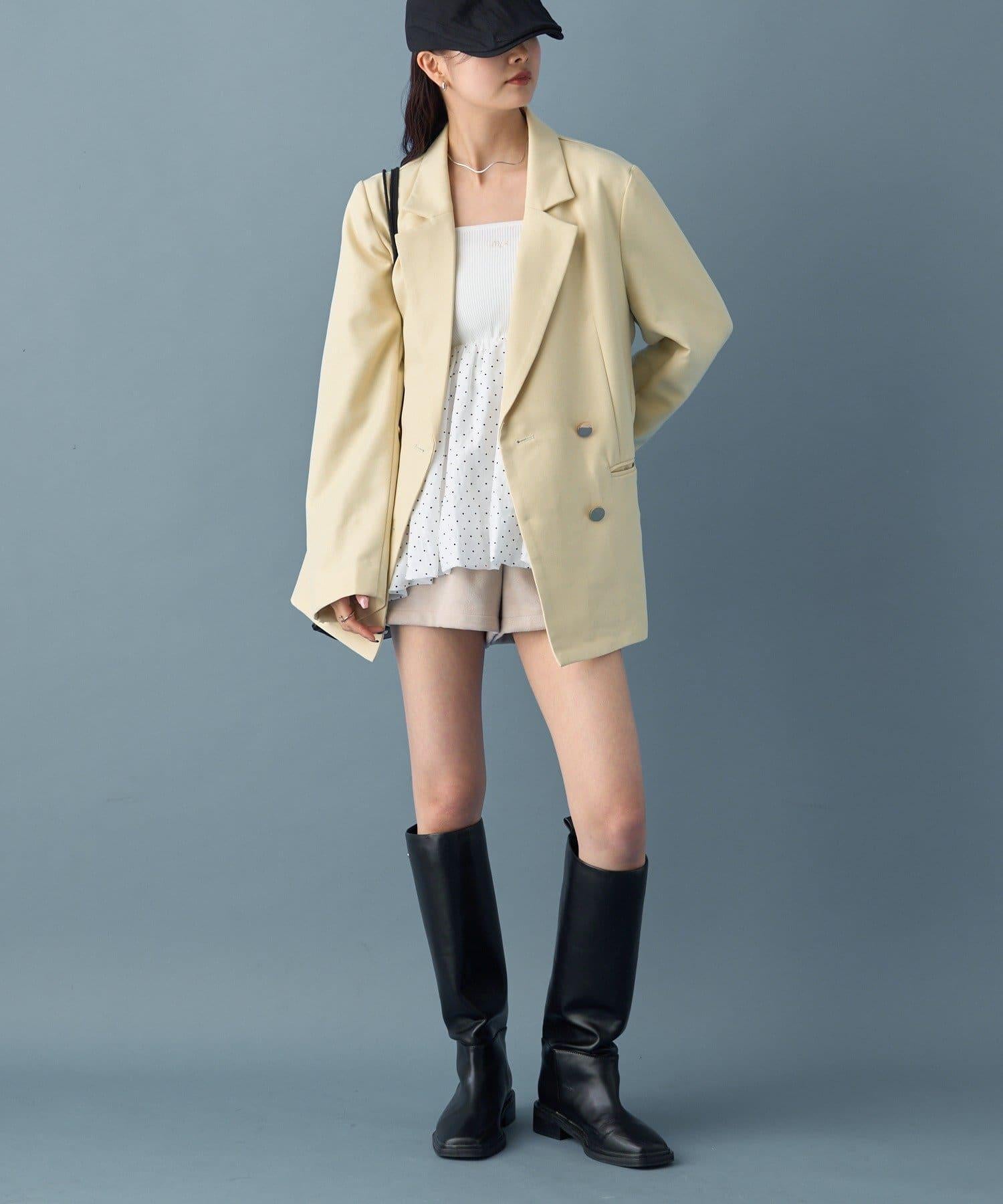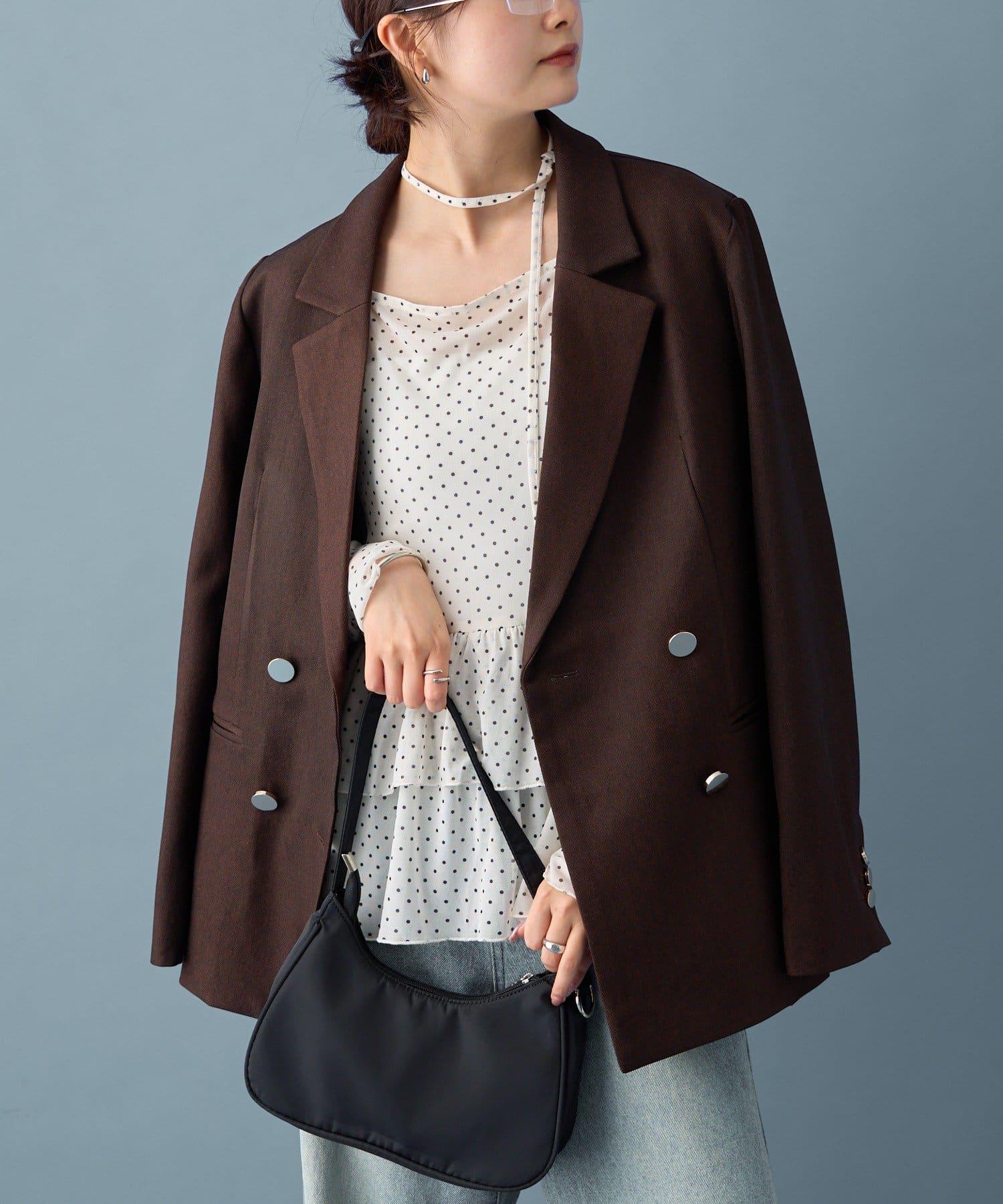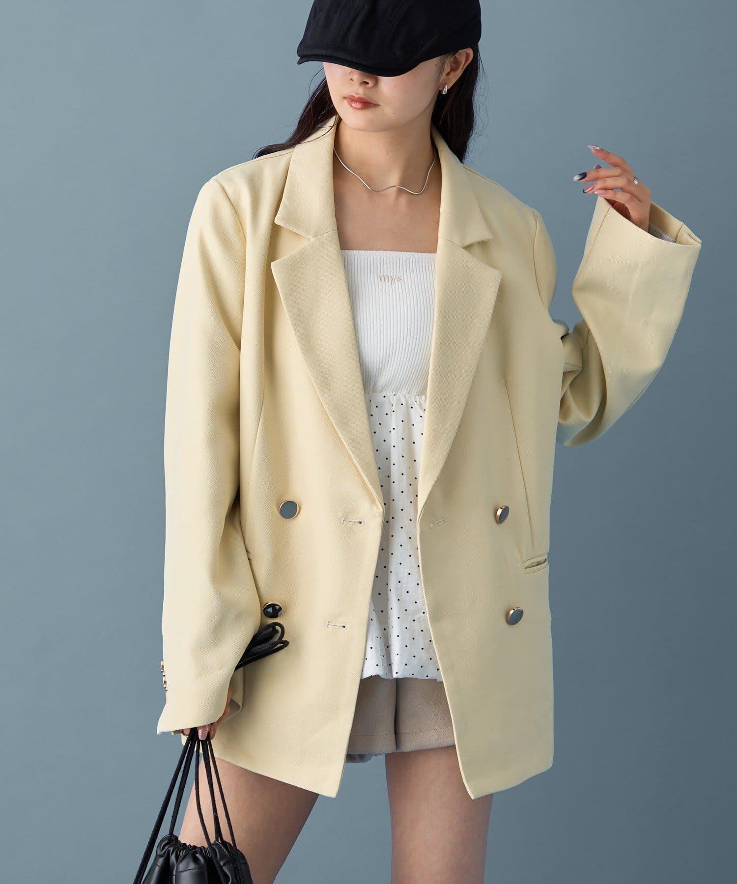 金色紐扣點綴著簡潔的外套,非常可愛!