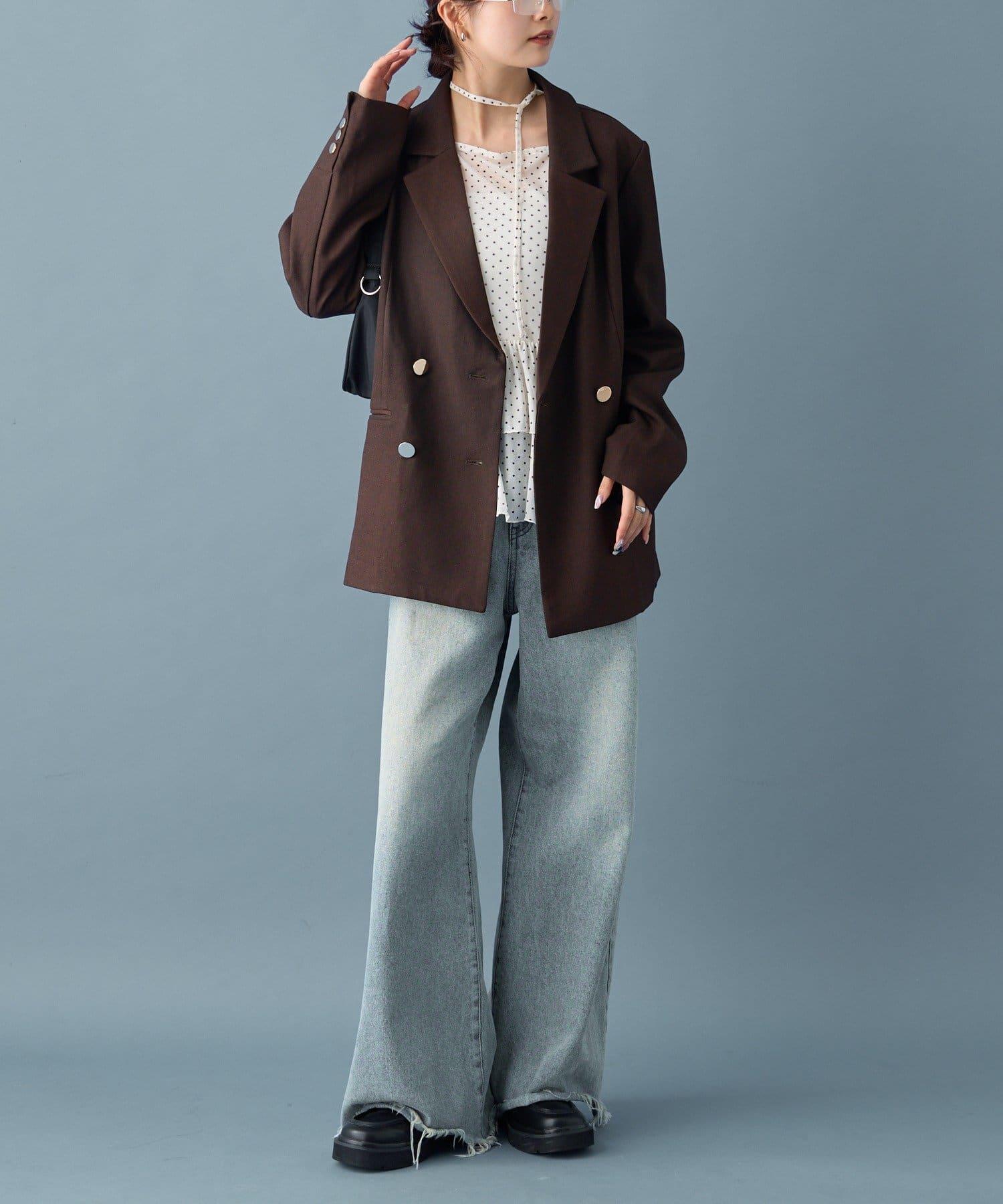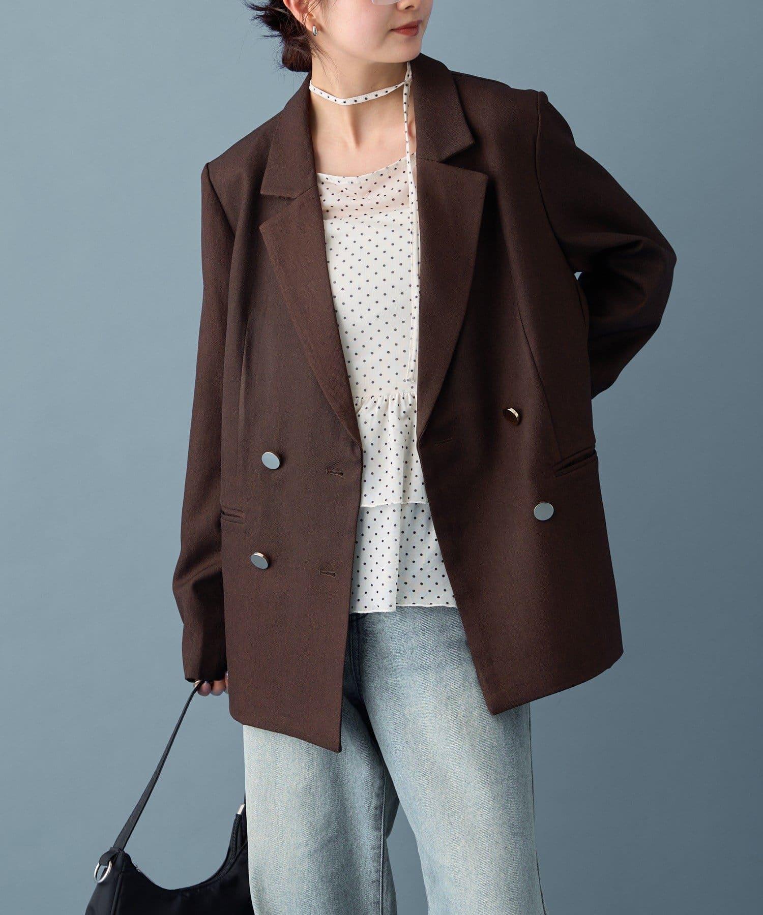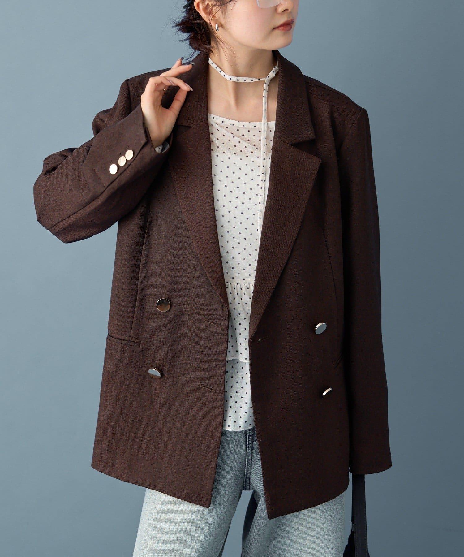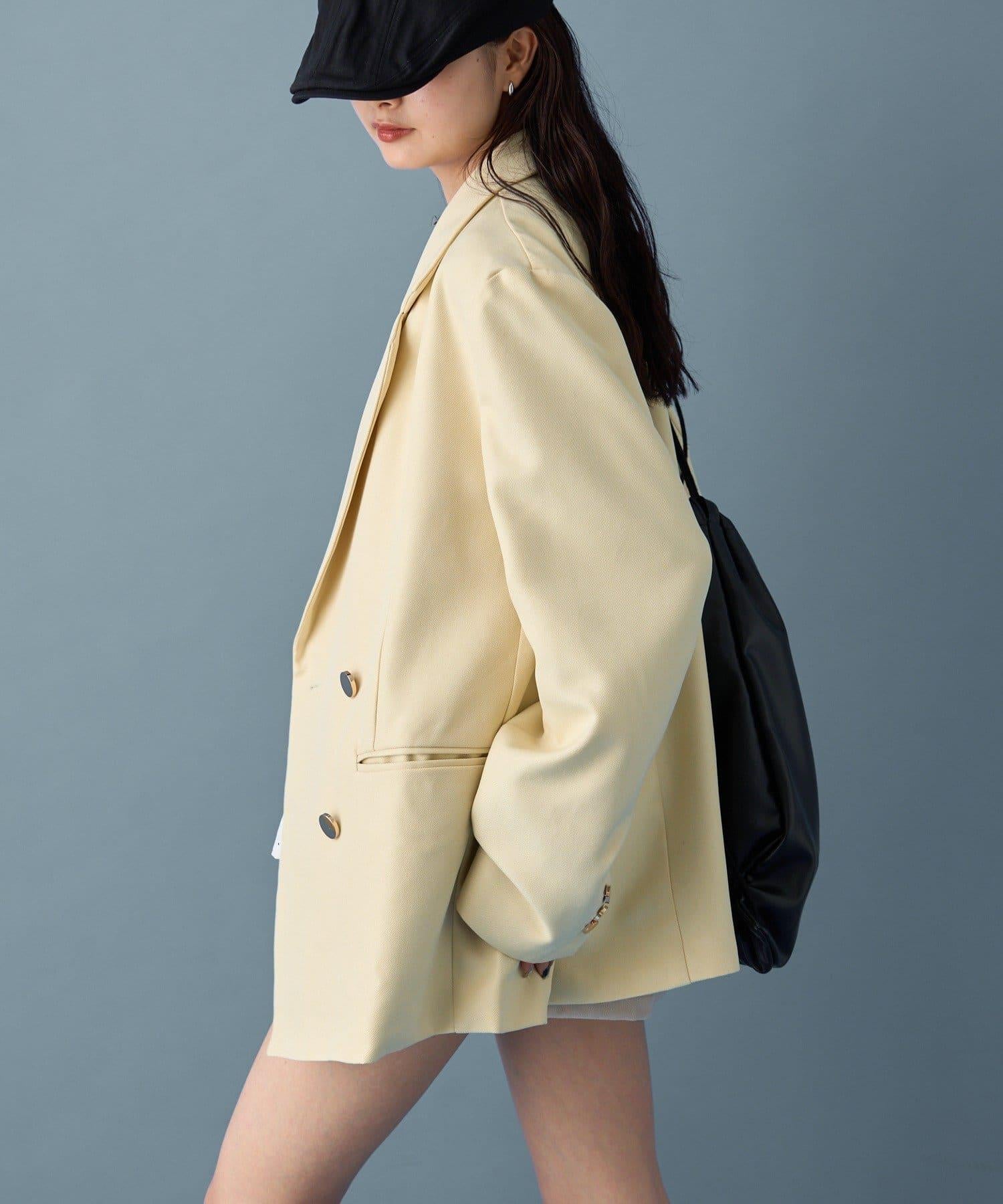 金色紐扣點綴著簡潔的外套,非常可愛!