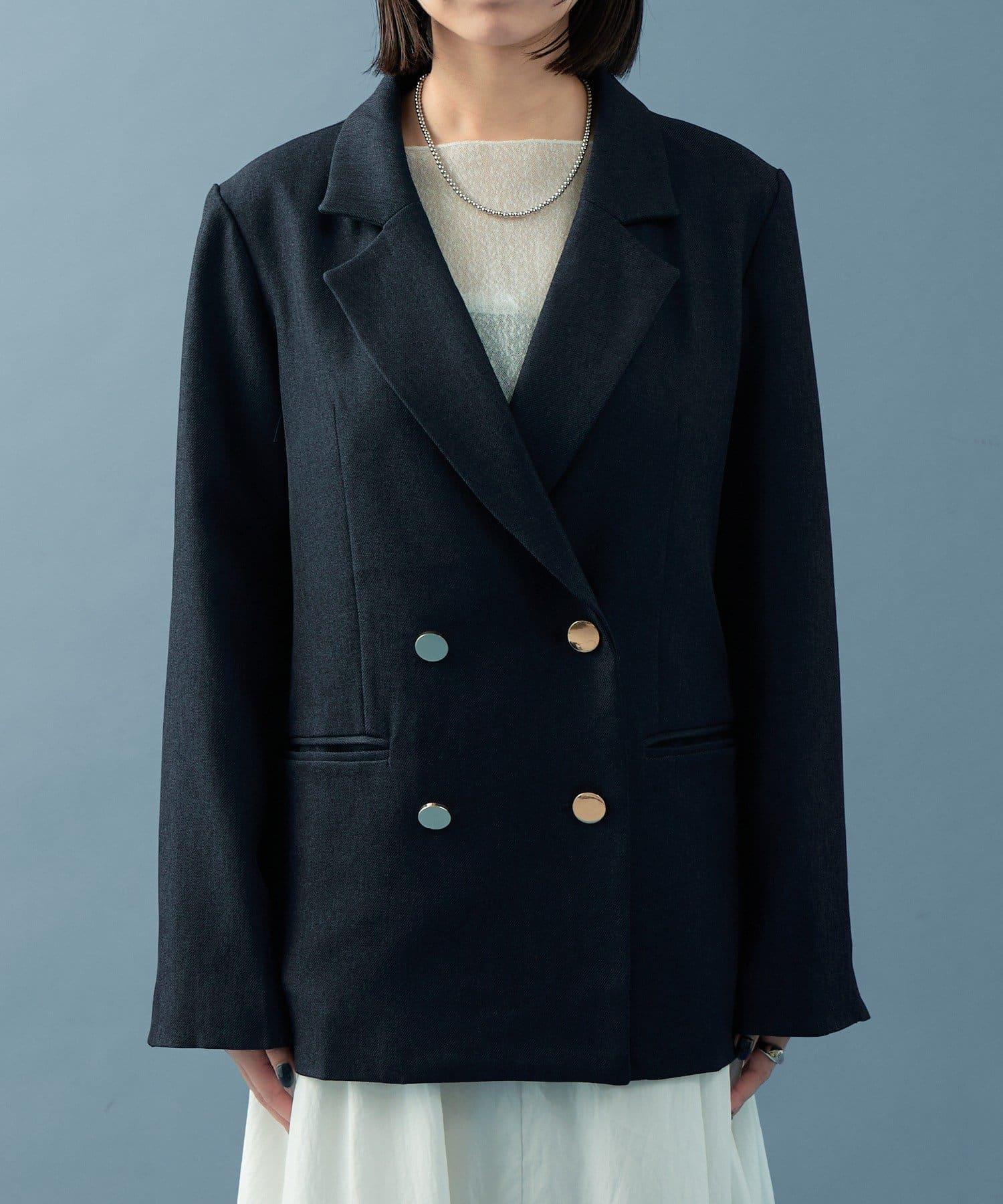 漂亮的金色紐扣夾克引人注目。有領的設計讓它看起來更優雅,更有女人味。