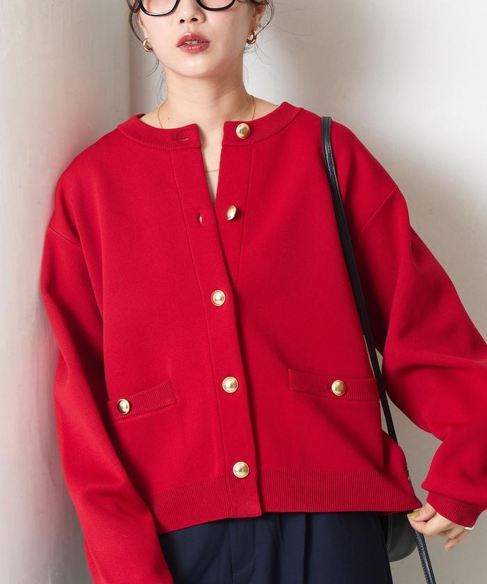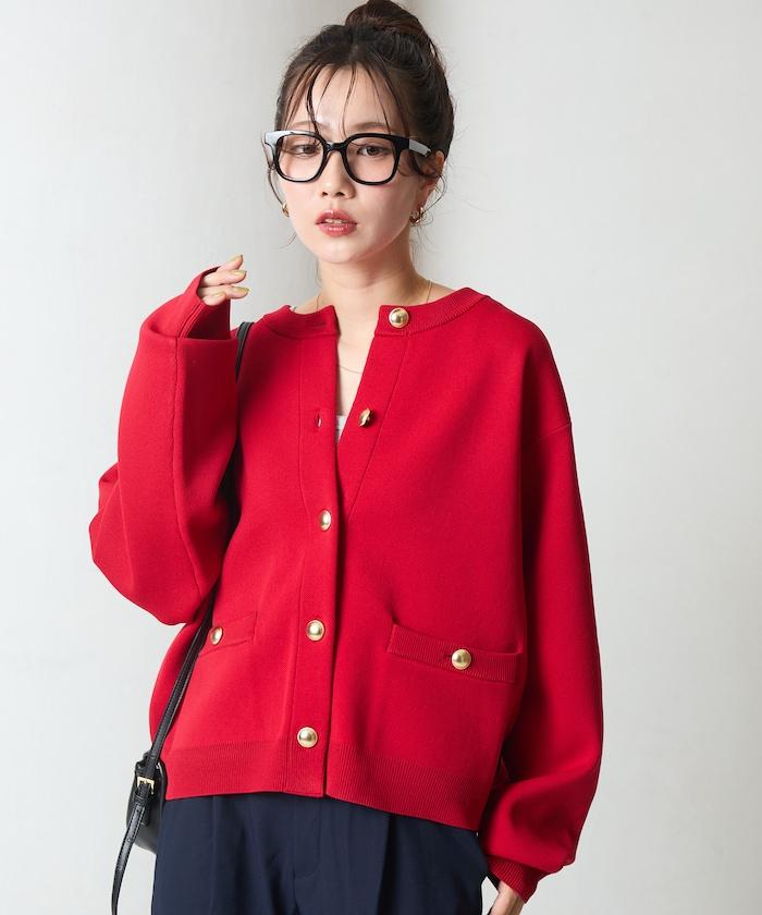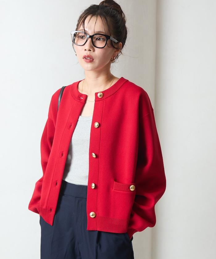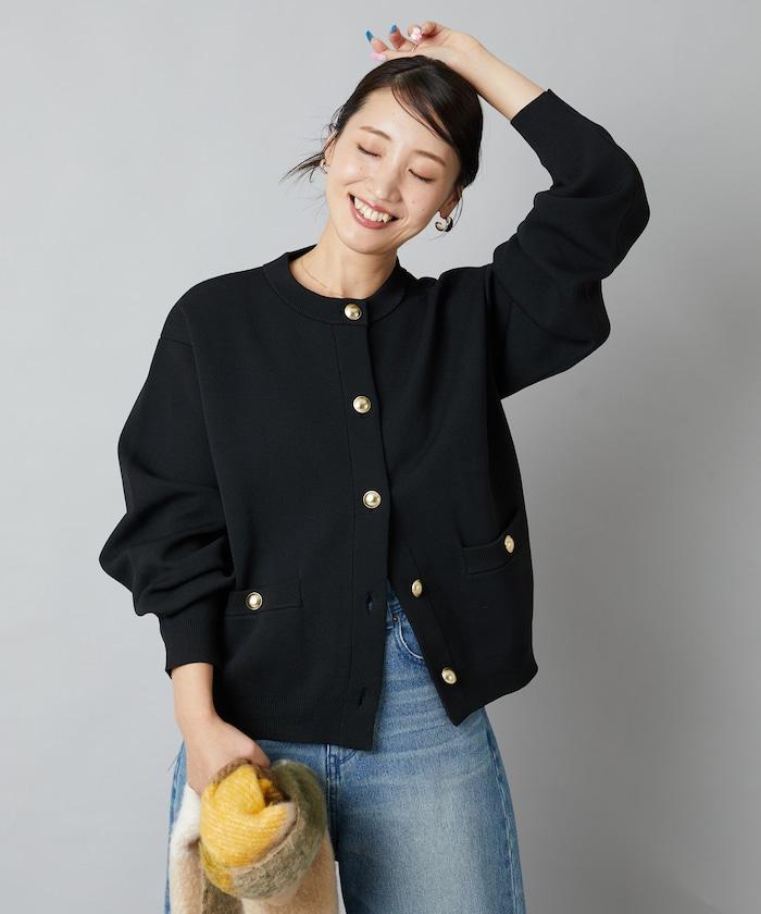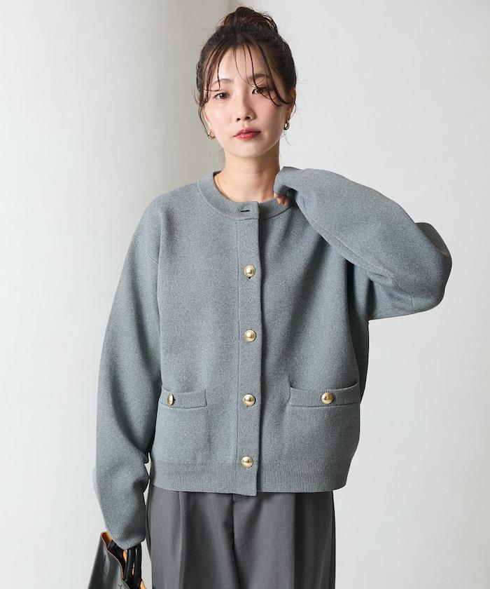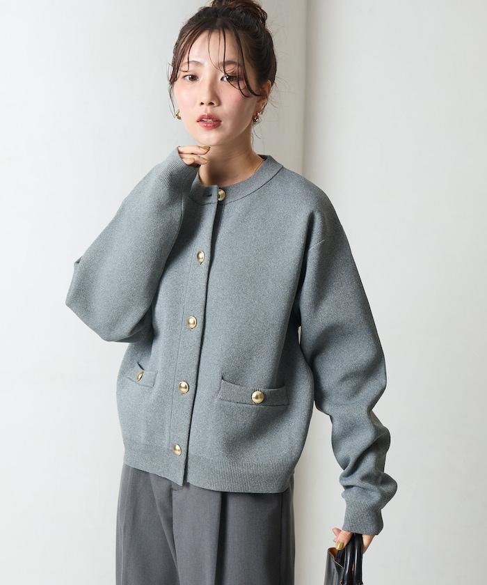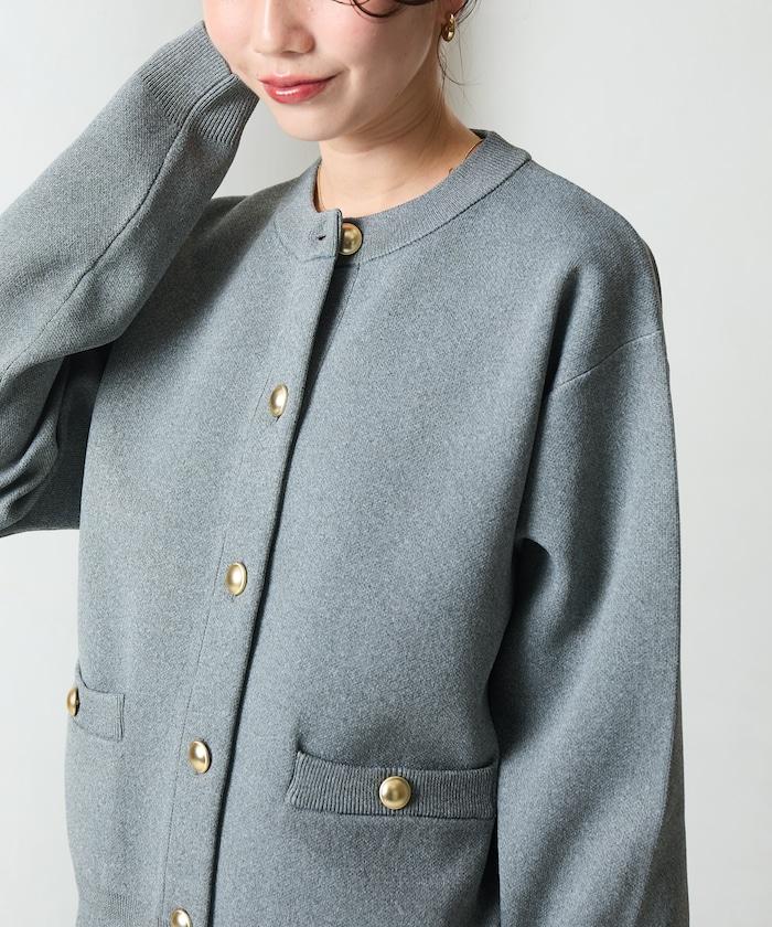 金色紐釦針織開衫