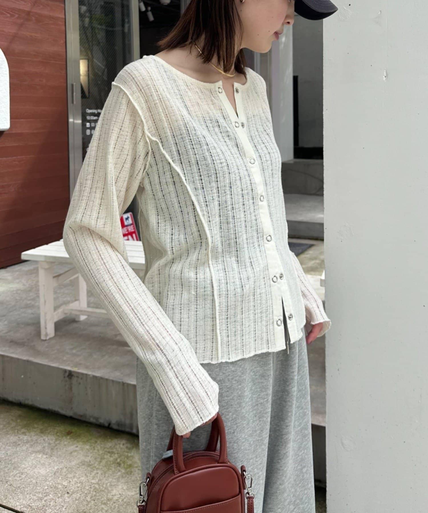 細密的無針編織強調了精緻的垂直線條,帶來微妙的風格提升效果。