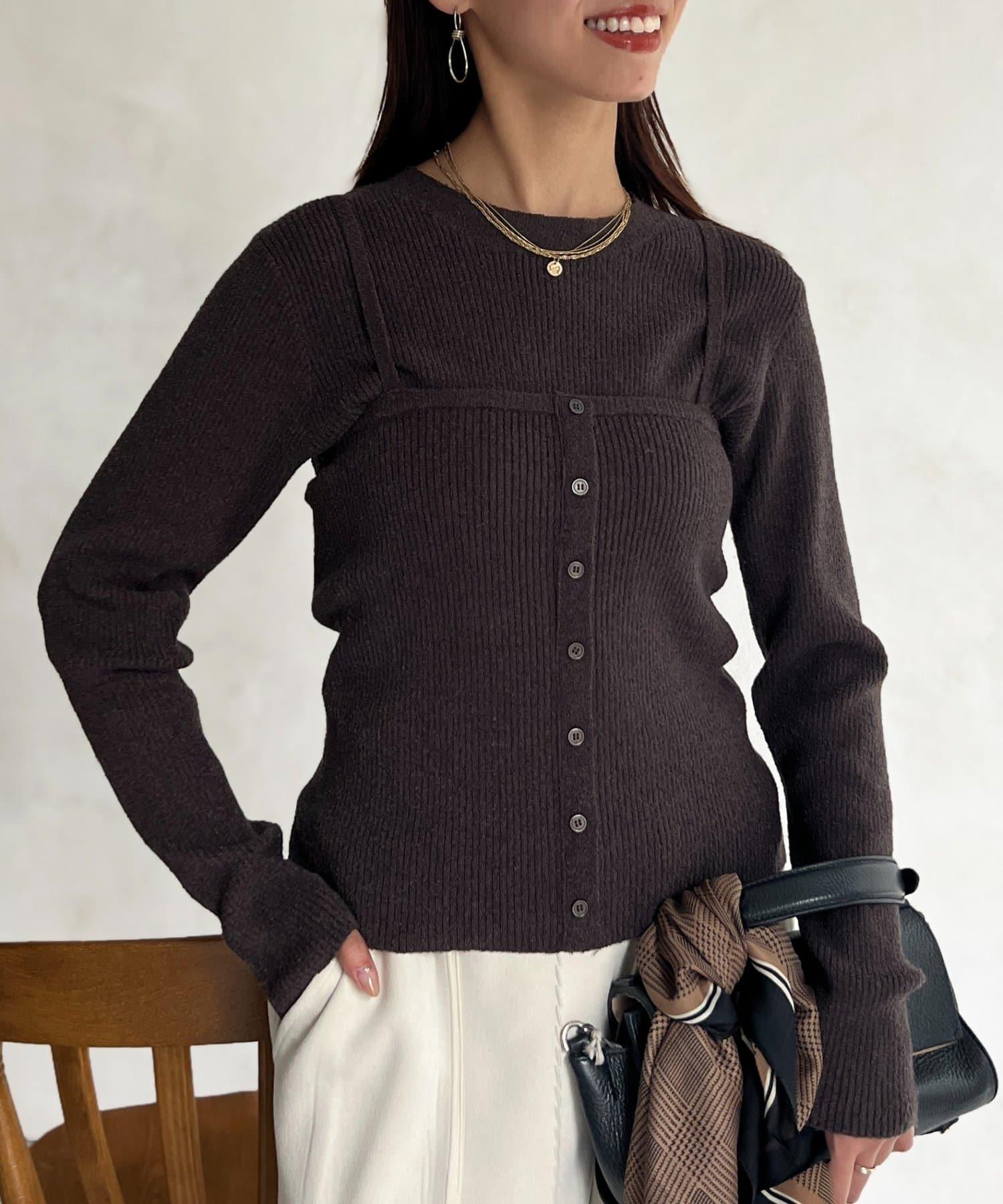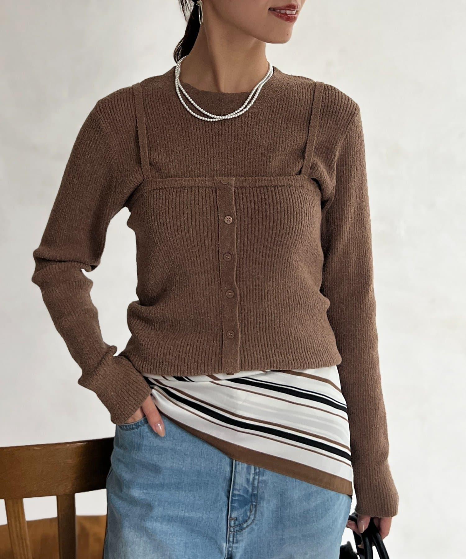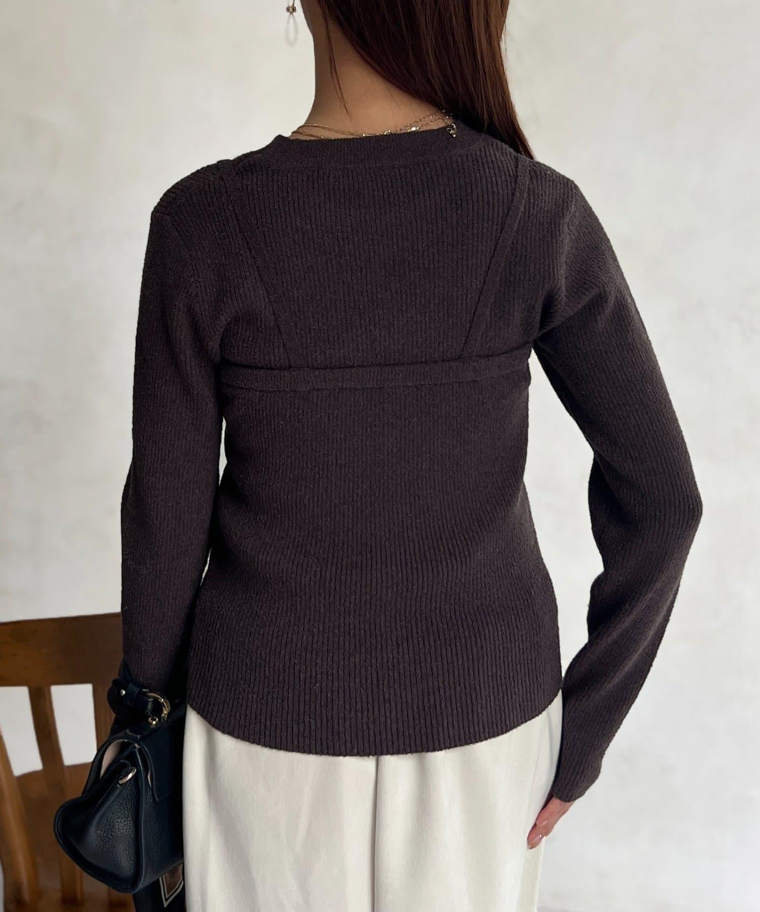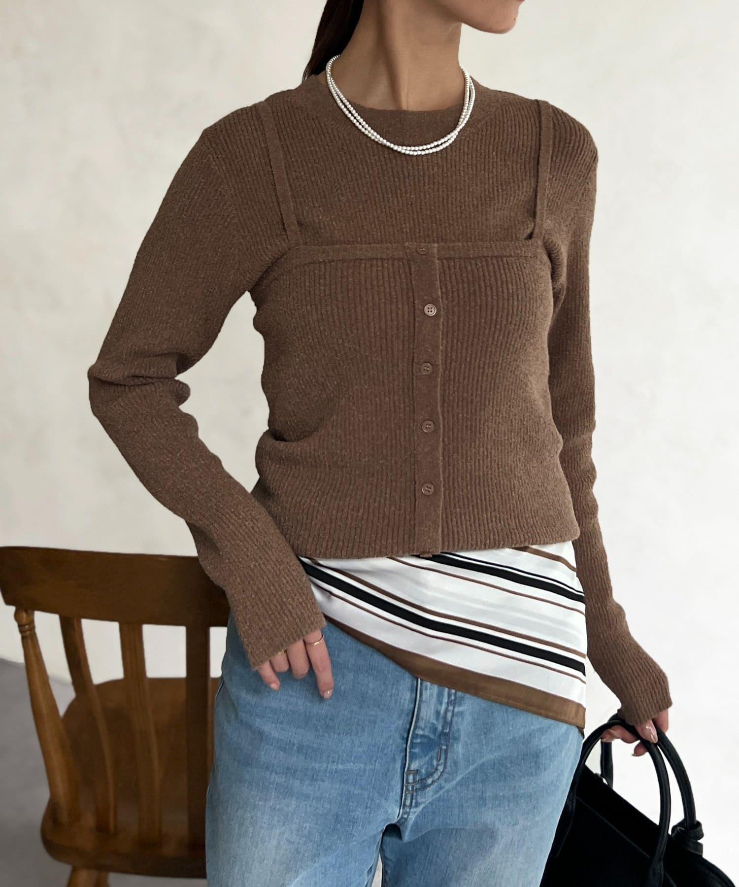 有趣的疊穿單品,搭配同材質的半身裙套裝。