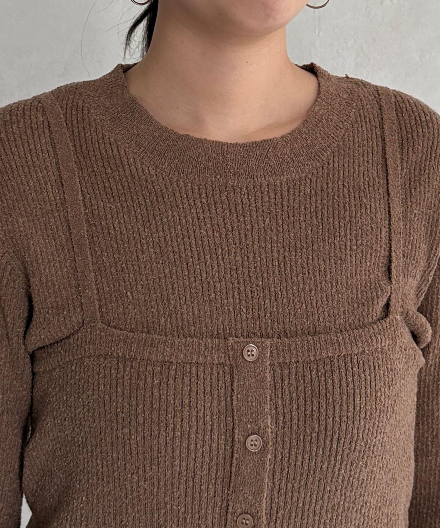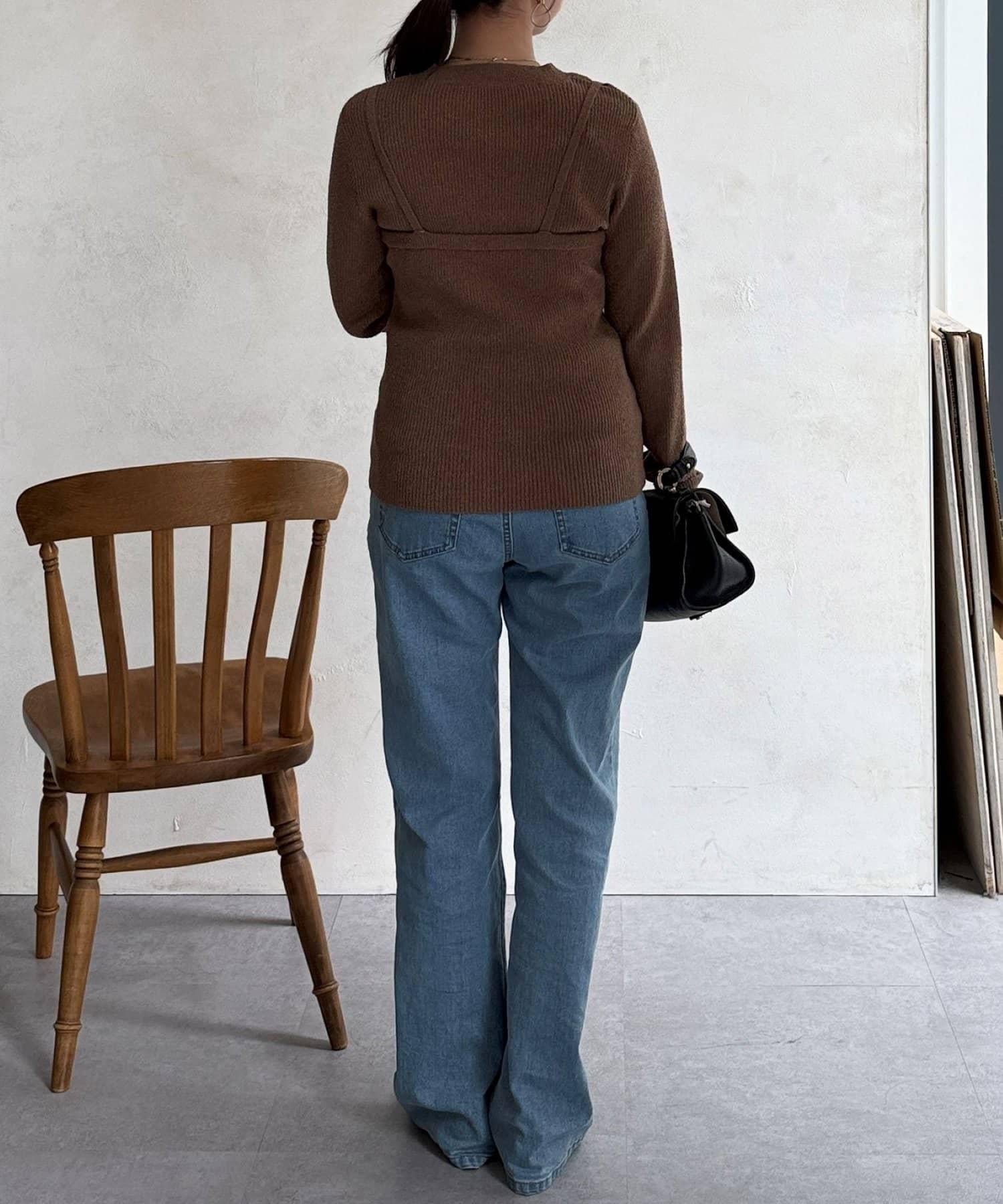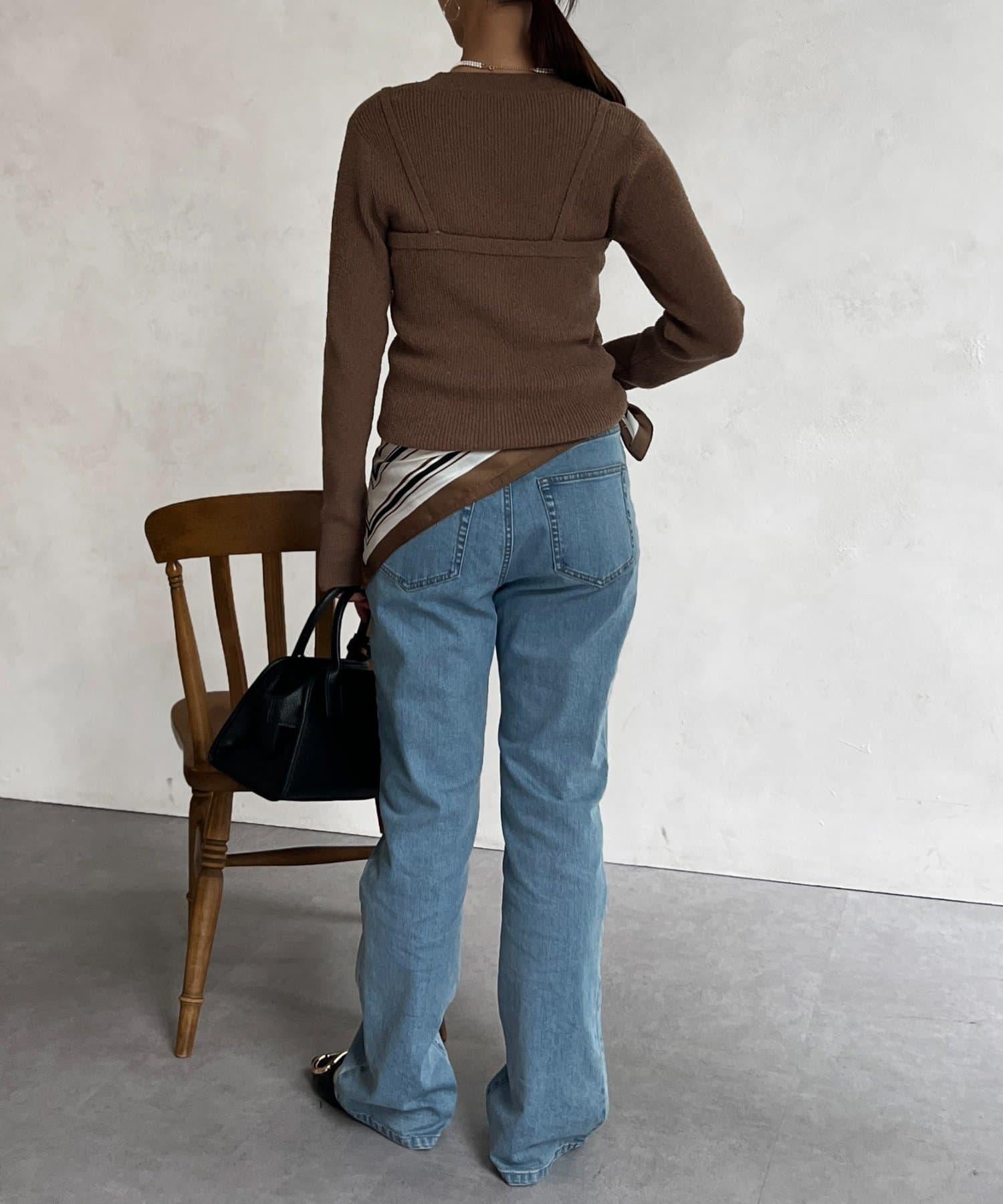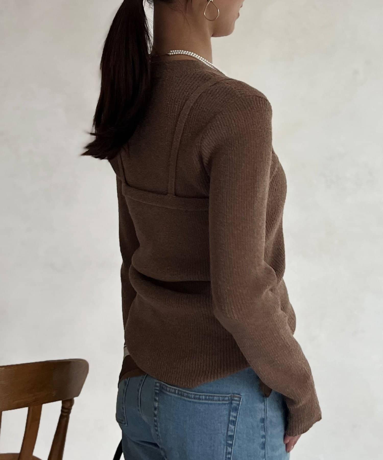 有趣的疊穿單品,搭配同材質的半身裙套裝。