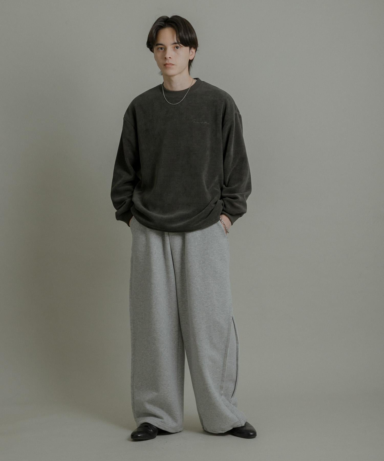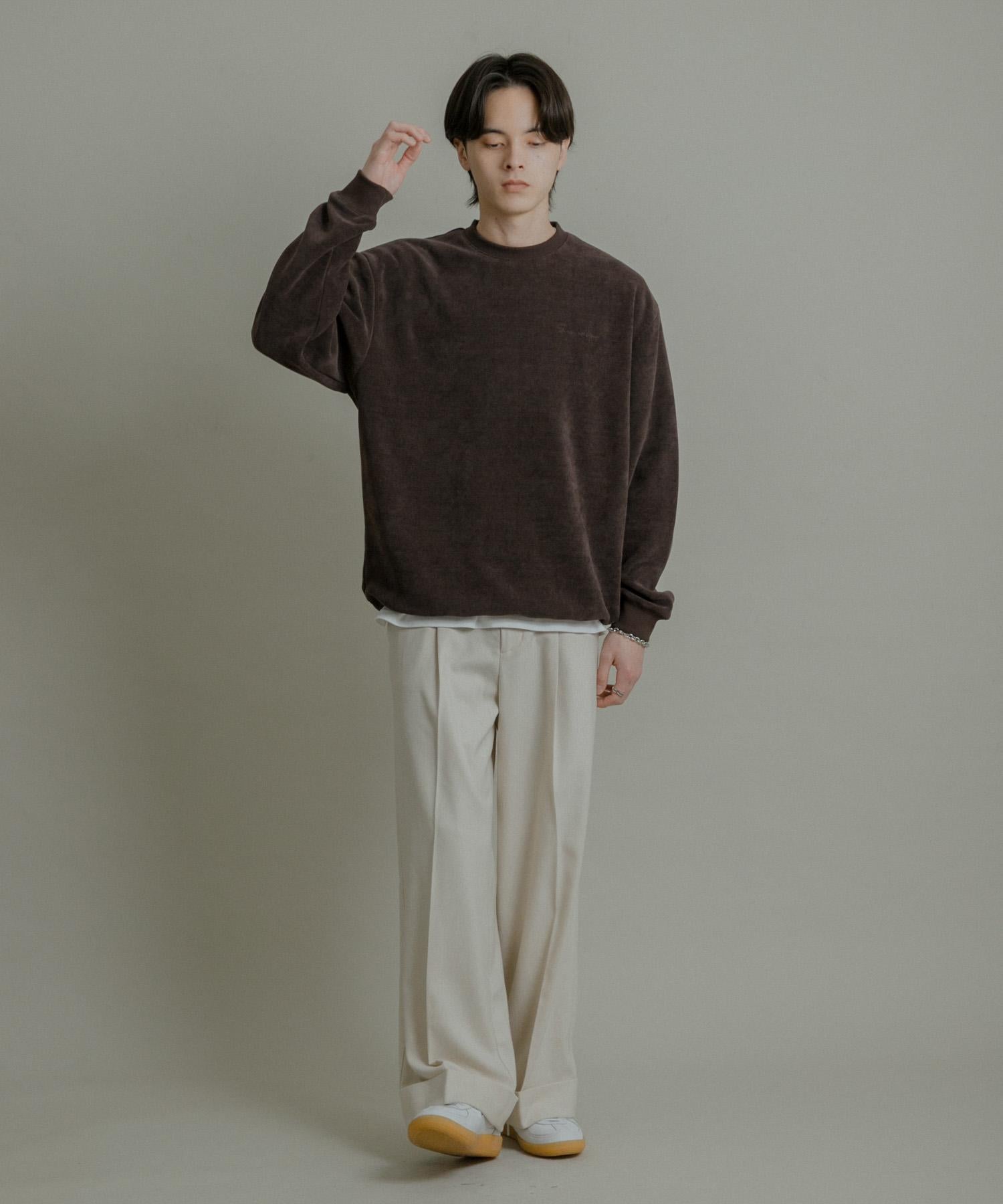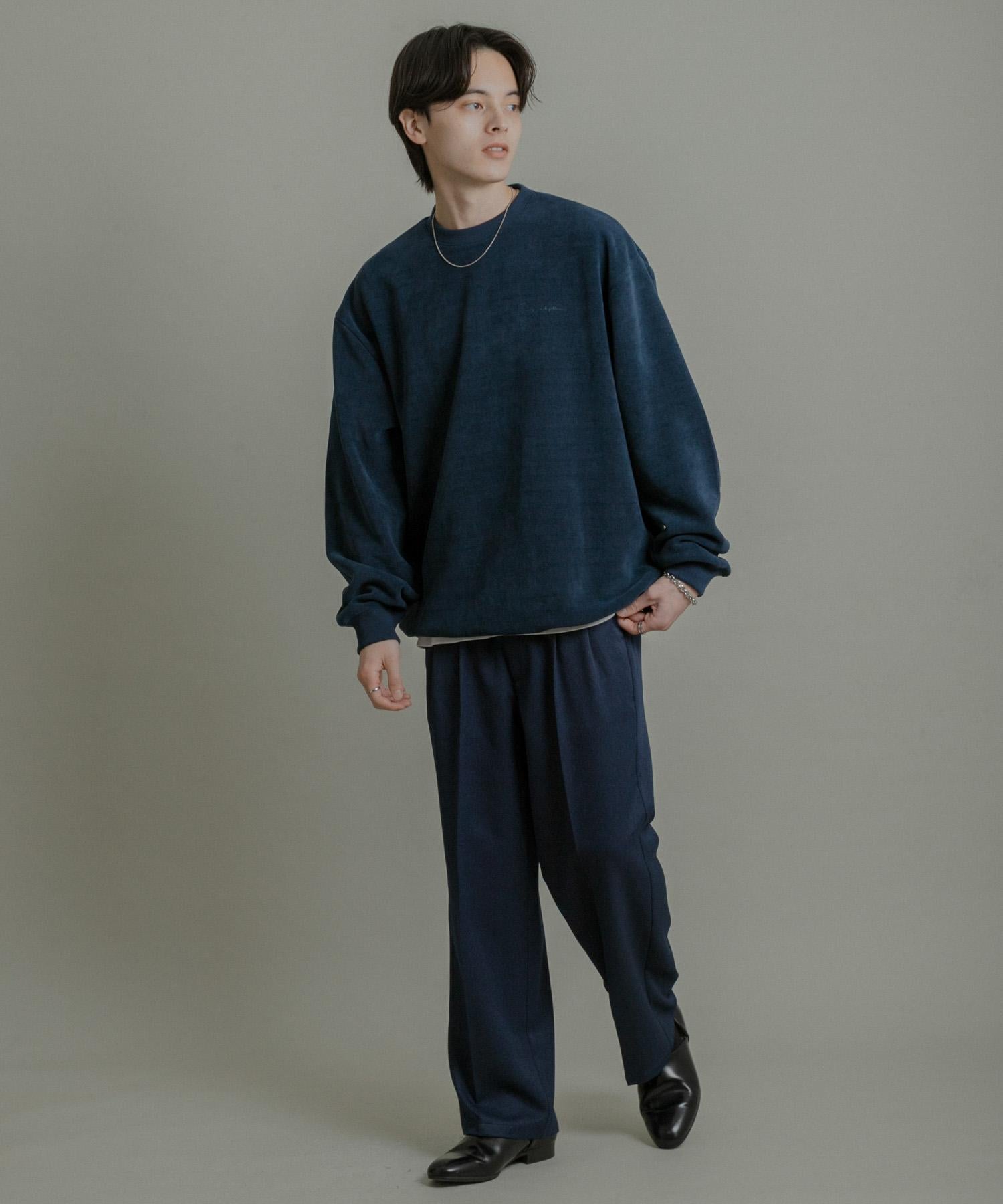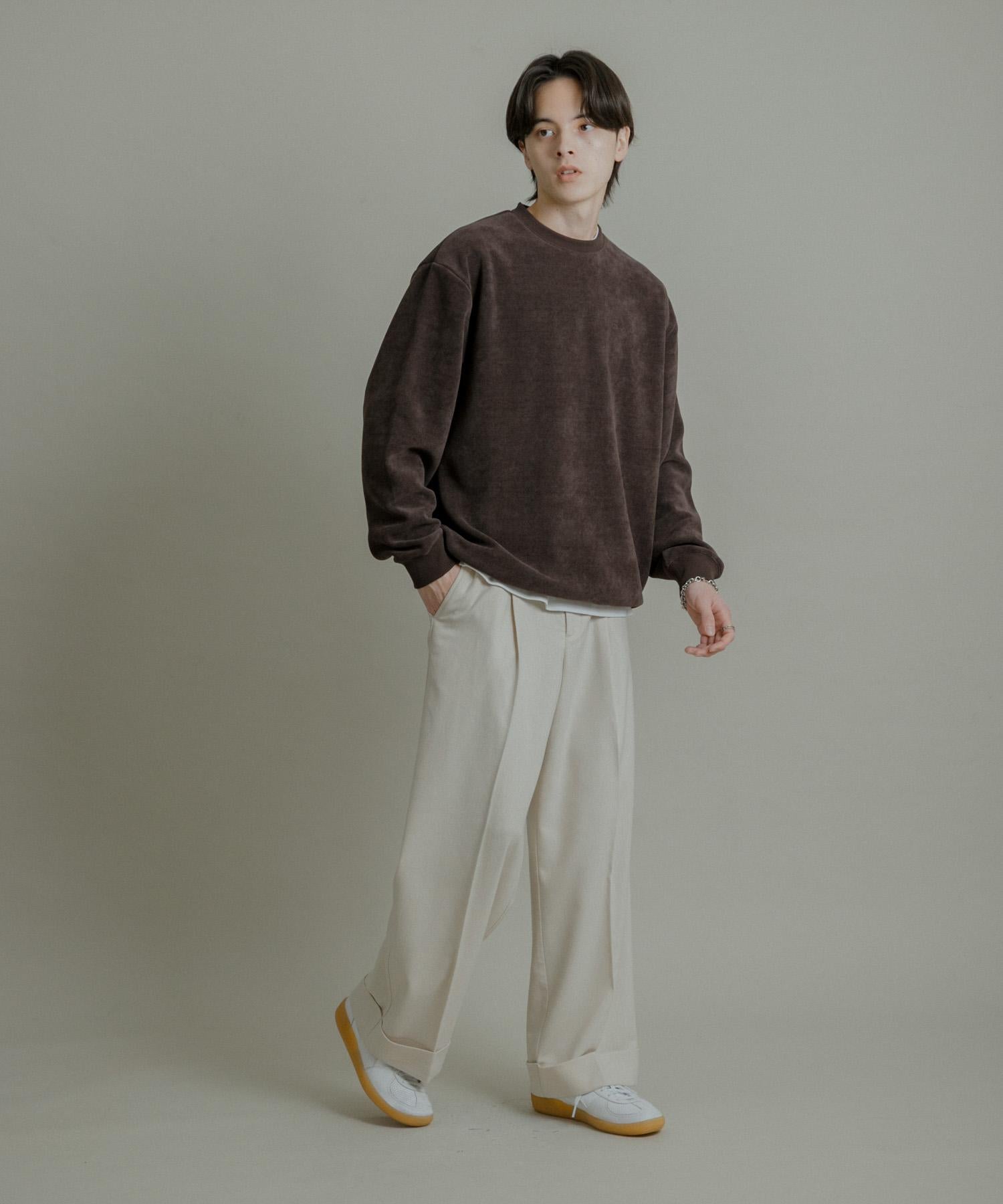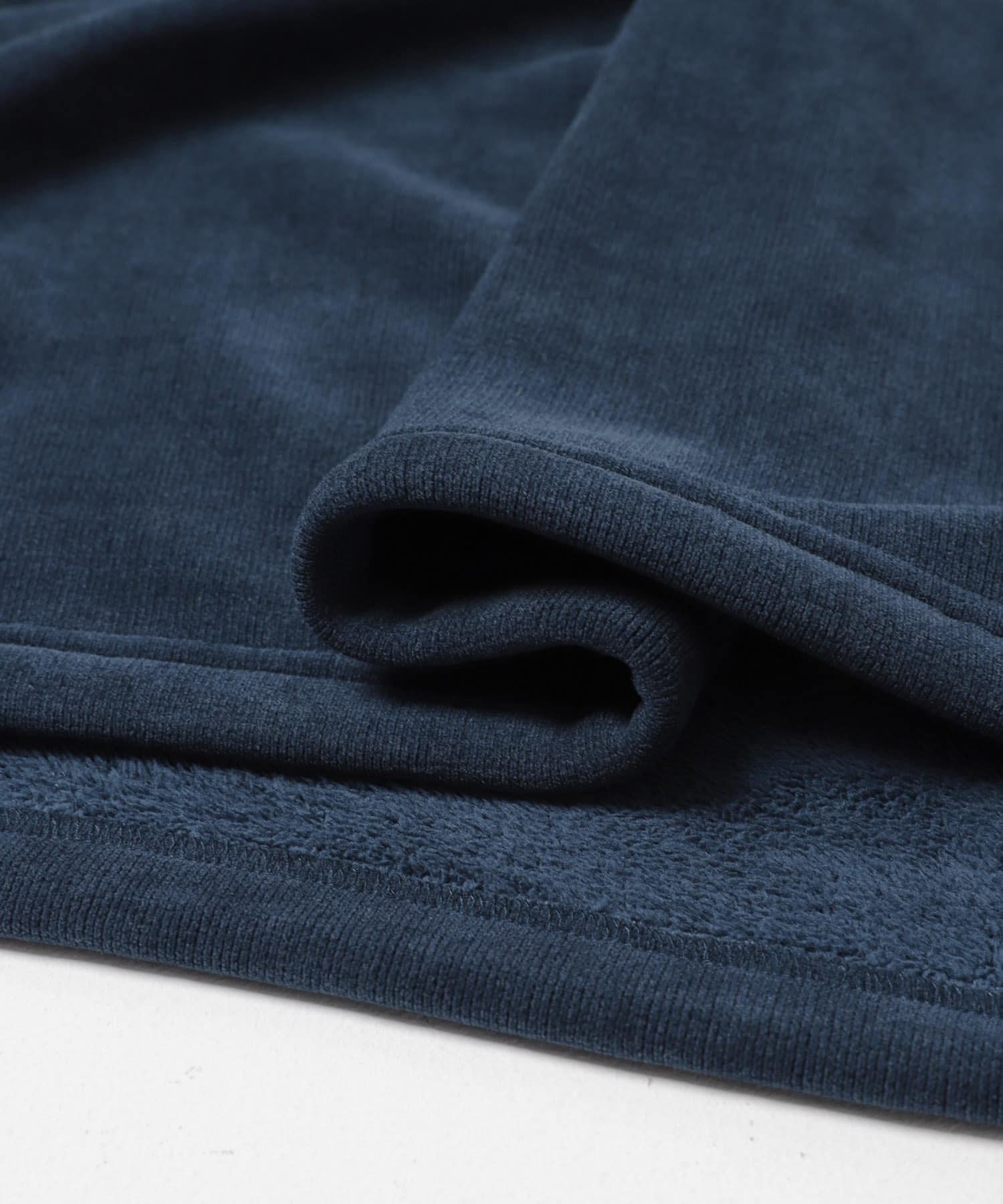 背部拉絨的面料溫暖柔軟,舒適感十足。雖然是羊毛面料,但外觀類似針織。
