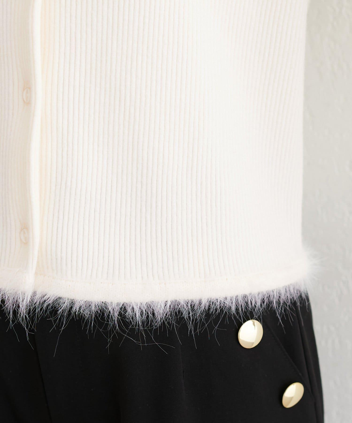 衣身和袖口的羽毛為簡潔的設計增添了魅力。