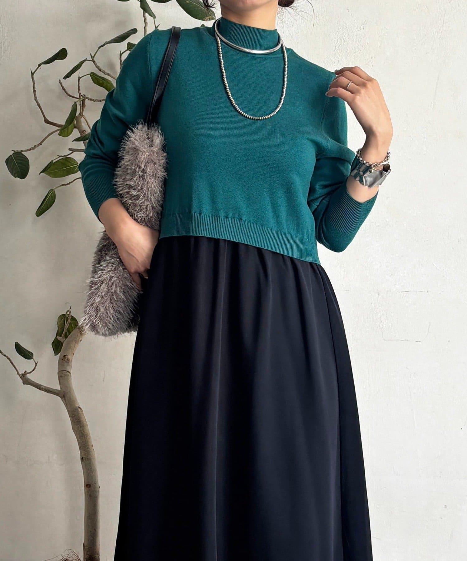 針織對接設計讓它看起來像一件獨立的連衣裙。